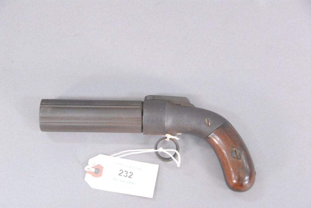 Marston pepperbox percussion pistol, pitted.