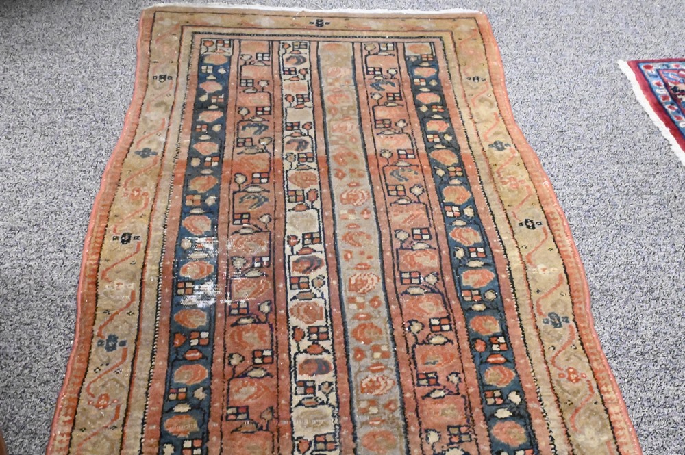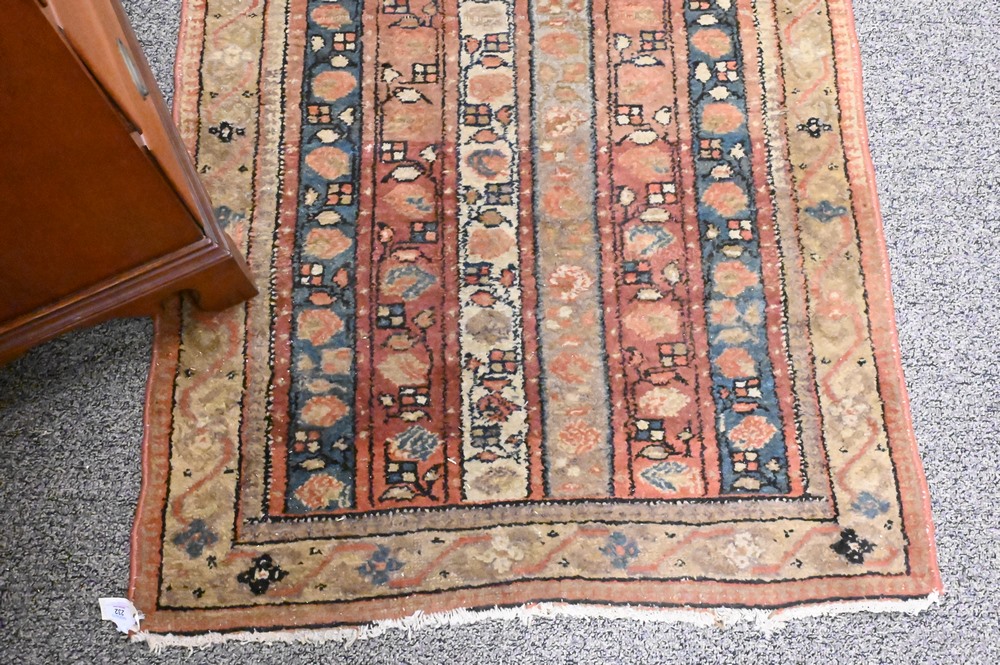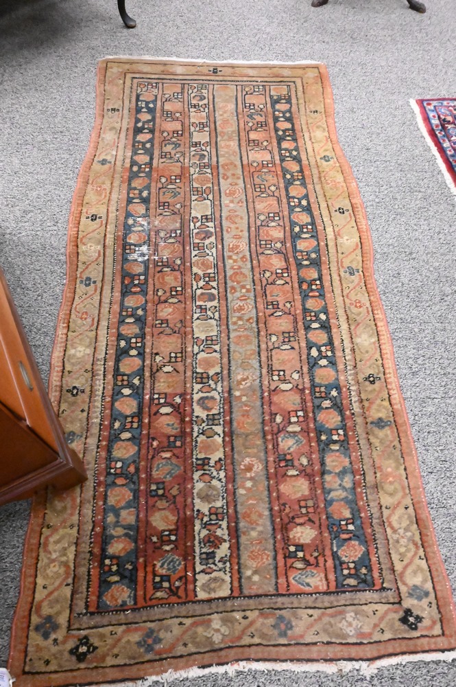 Lot 232: Oriental Runner, 3′ 7″ x 7′ 8″, some wear. Provenance: Estate of Florence Yannios, Waterfront Home, Guilford, CT.
