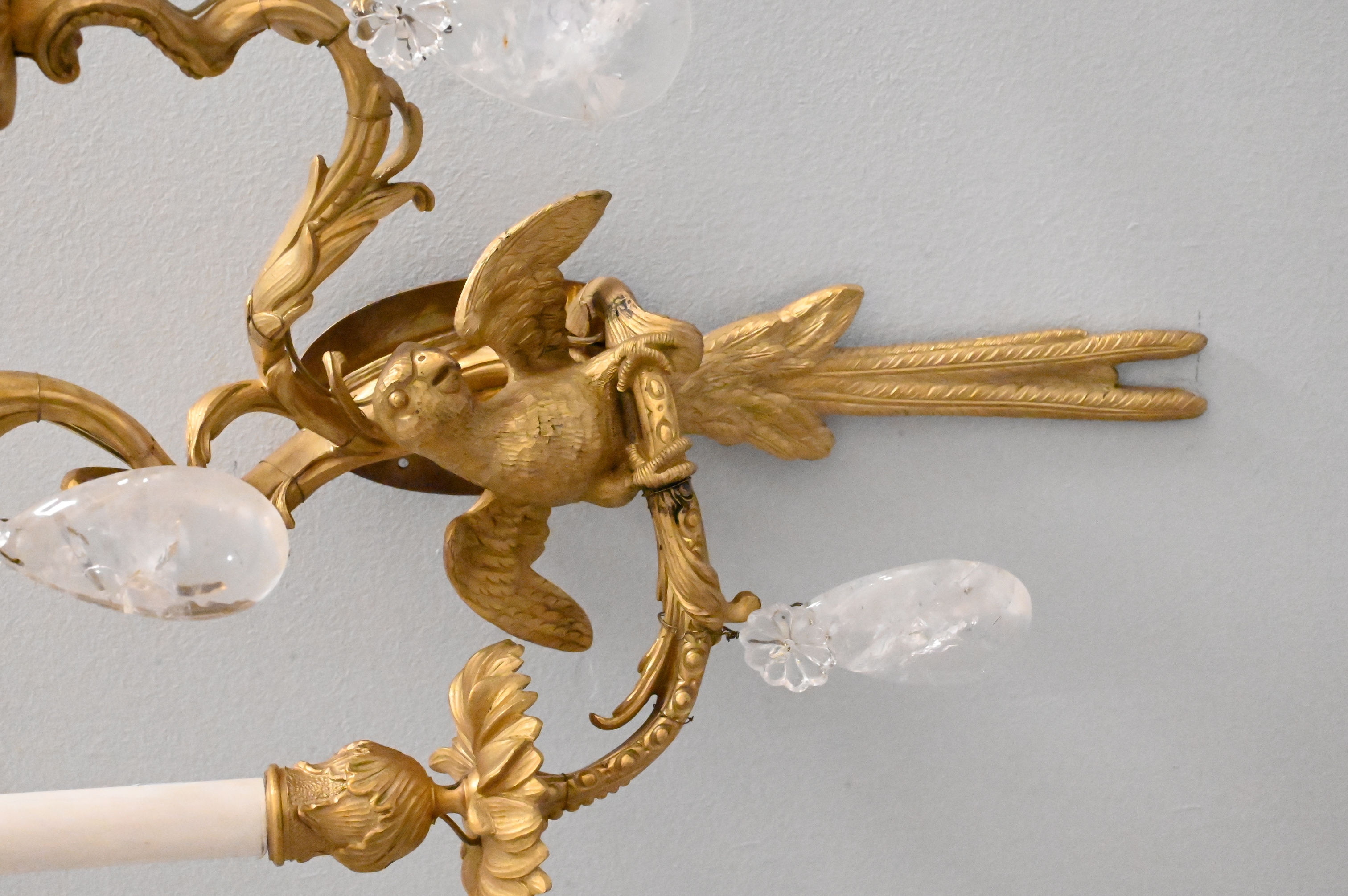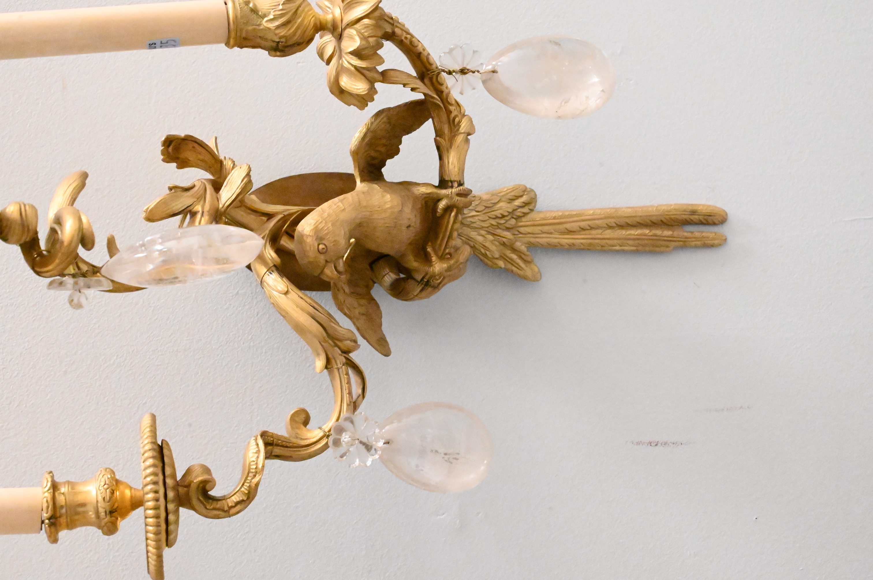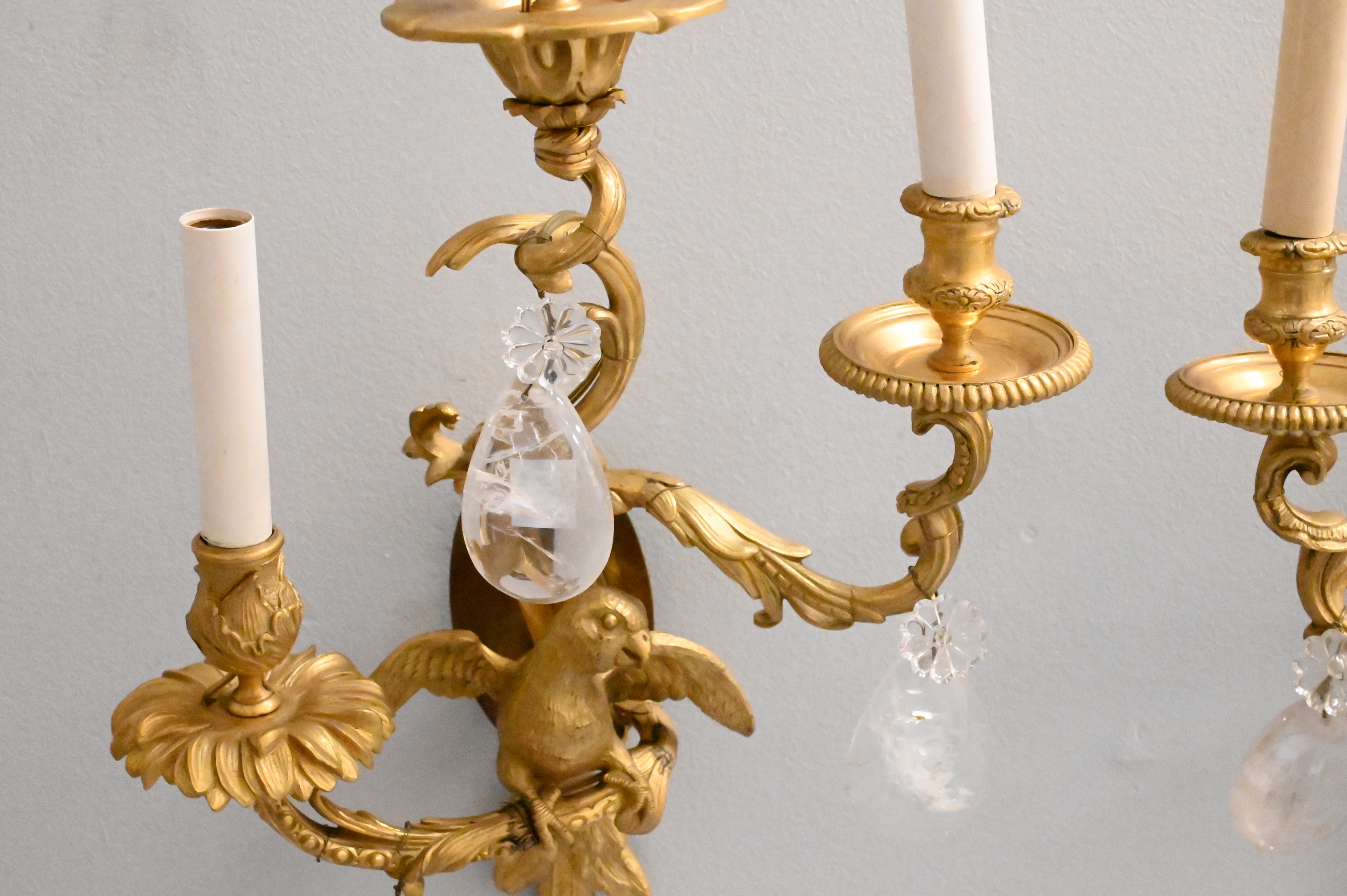 Lot 232: Pair of Rock Crystal and Gilt-Bronze Parrot Two-Light Wall Sconces