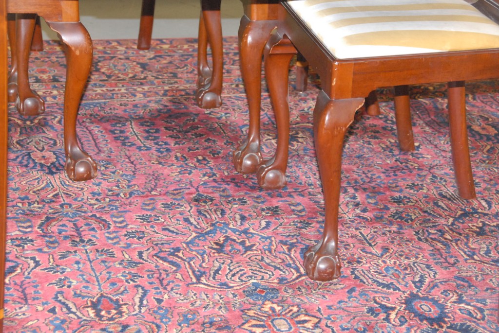 Set of six Margolis mahogany Chippendale style dining chairs with pierced intertwined backs set on cabriole legs ending in ball and claw feet, branded: Margolis 1937. back height 38in. seat height 18in. width 22in.
