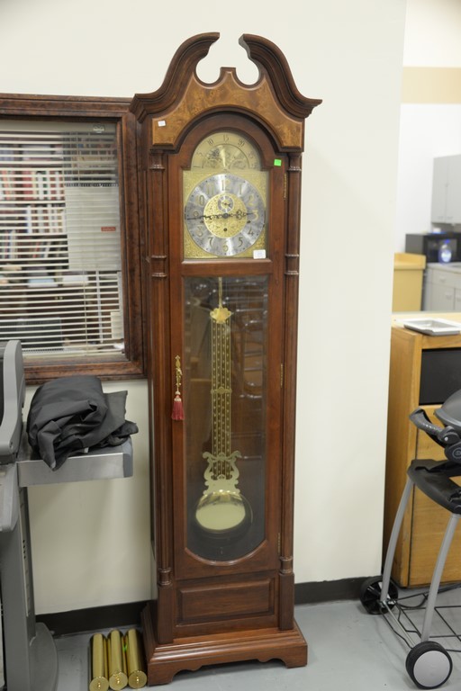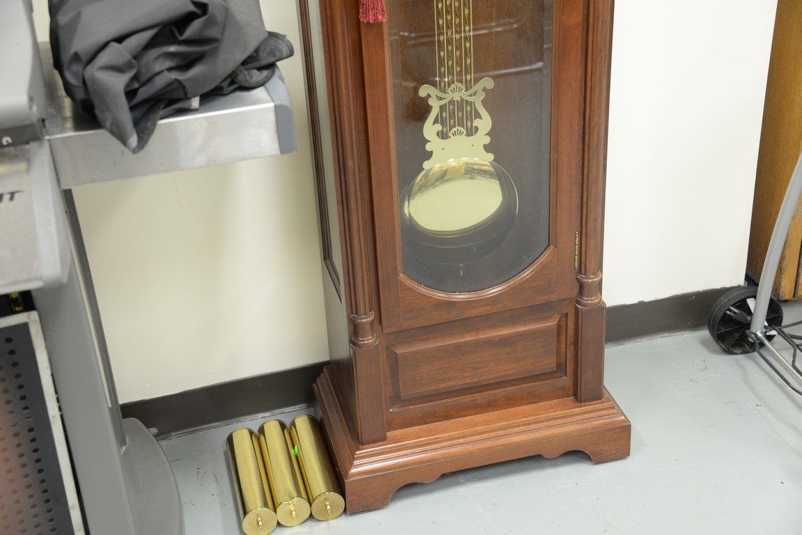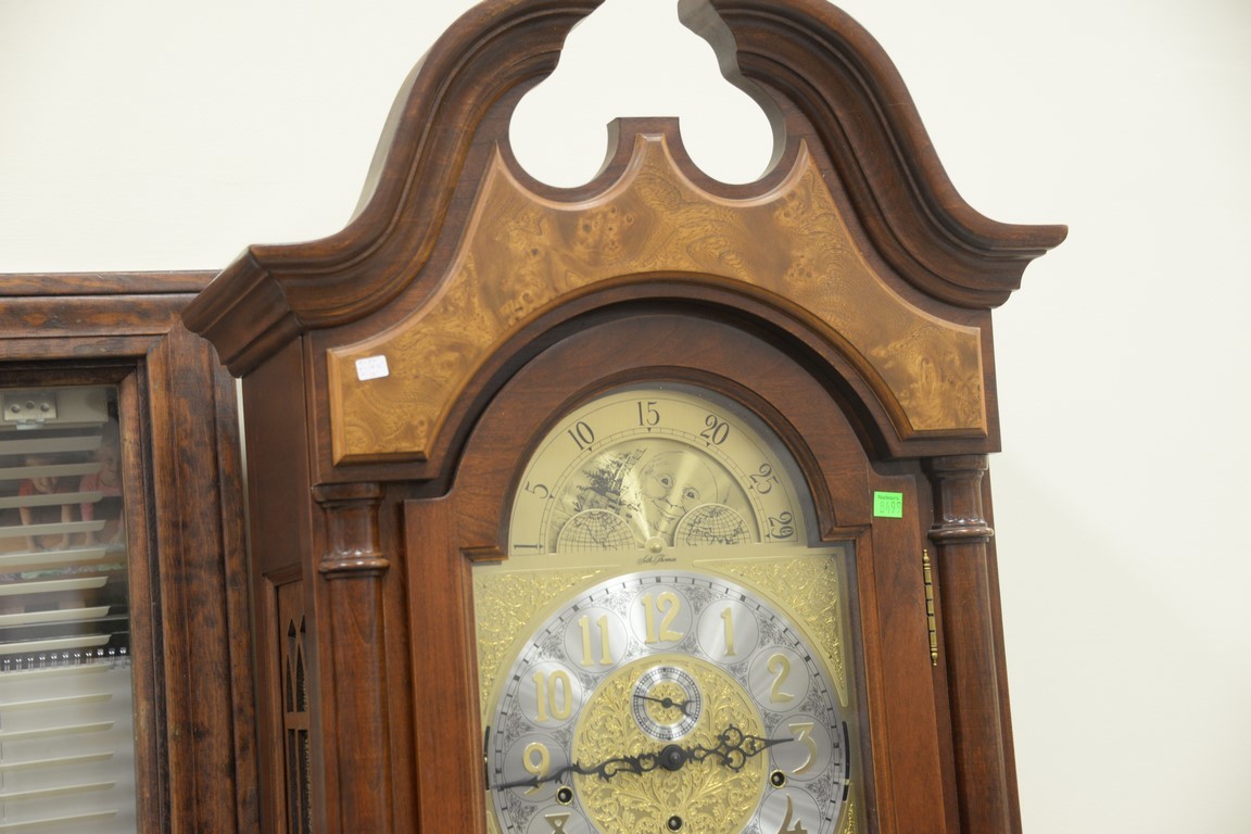 Seth Thomas tall clock with triple brass weights and pendulum. ht. 79in.