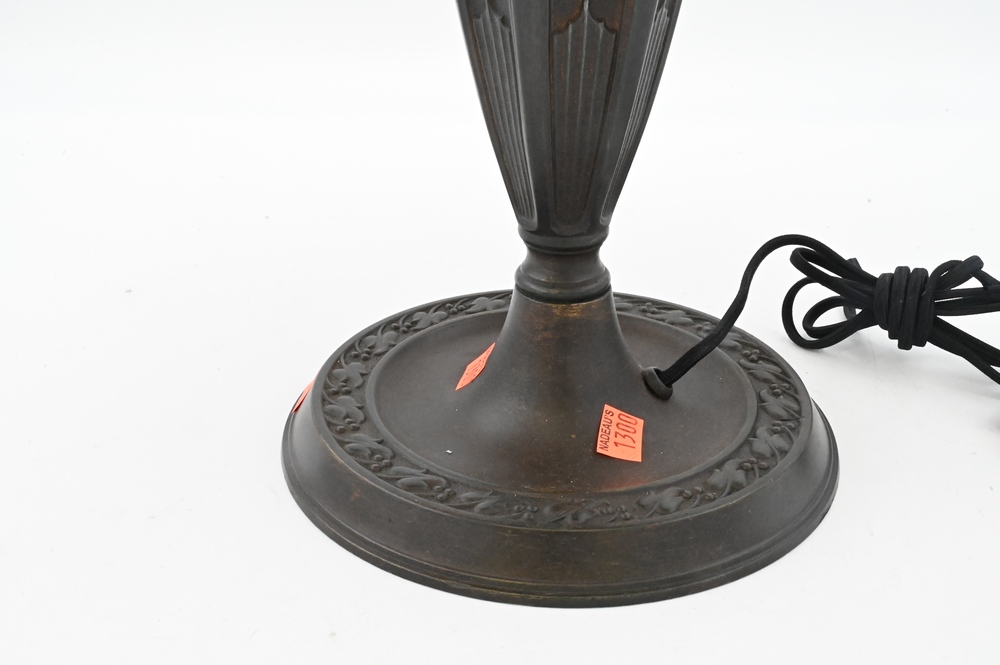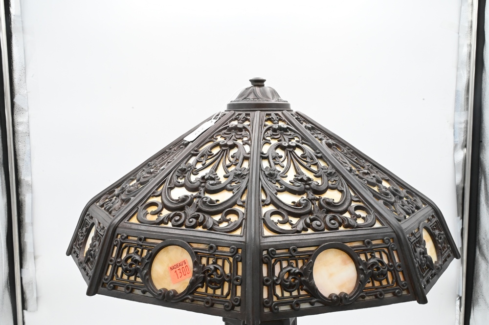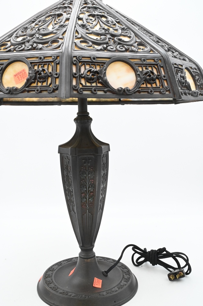 Slag Glass Table Lamp, having eight sided shade on metal base, height 23 1/2 inches.