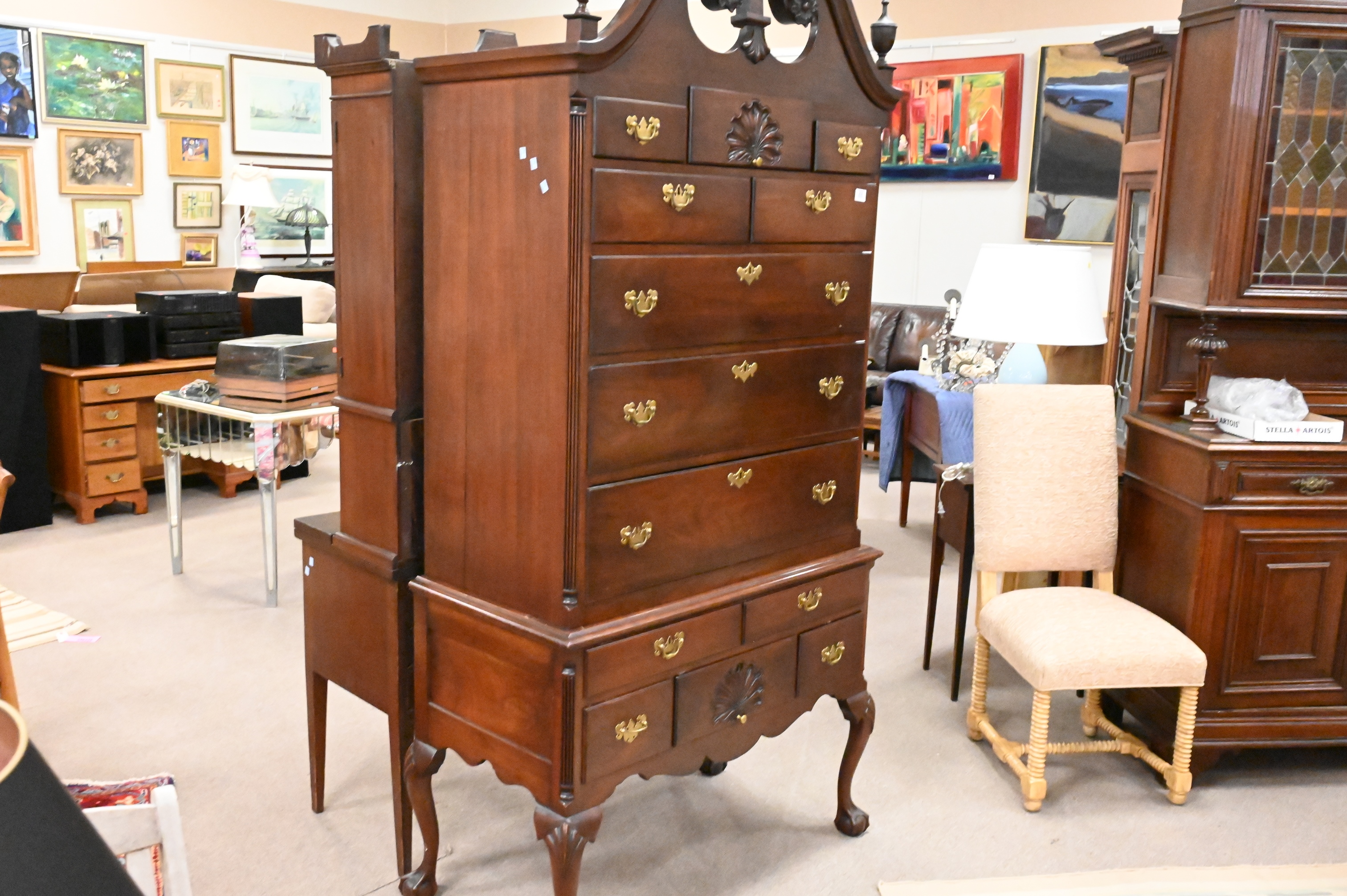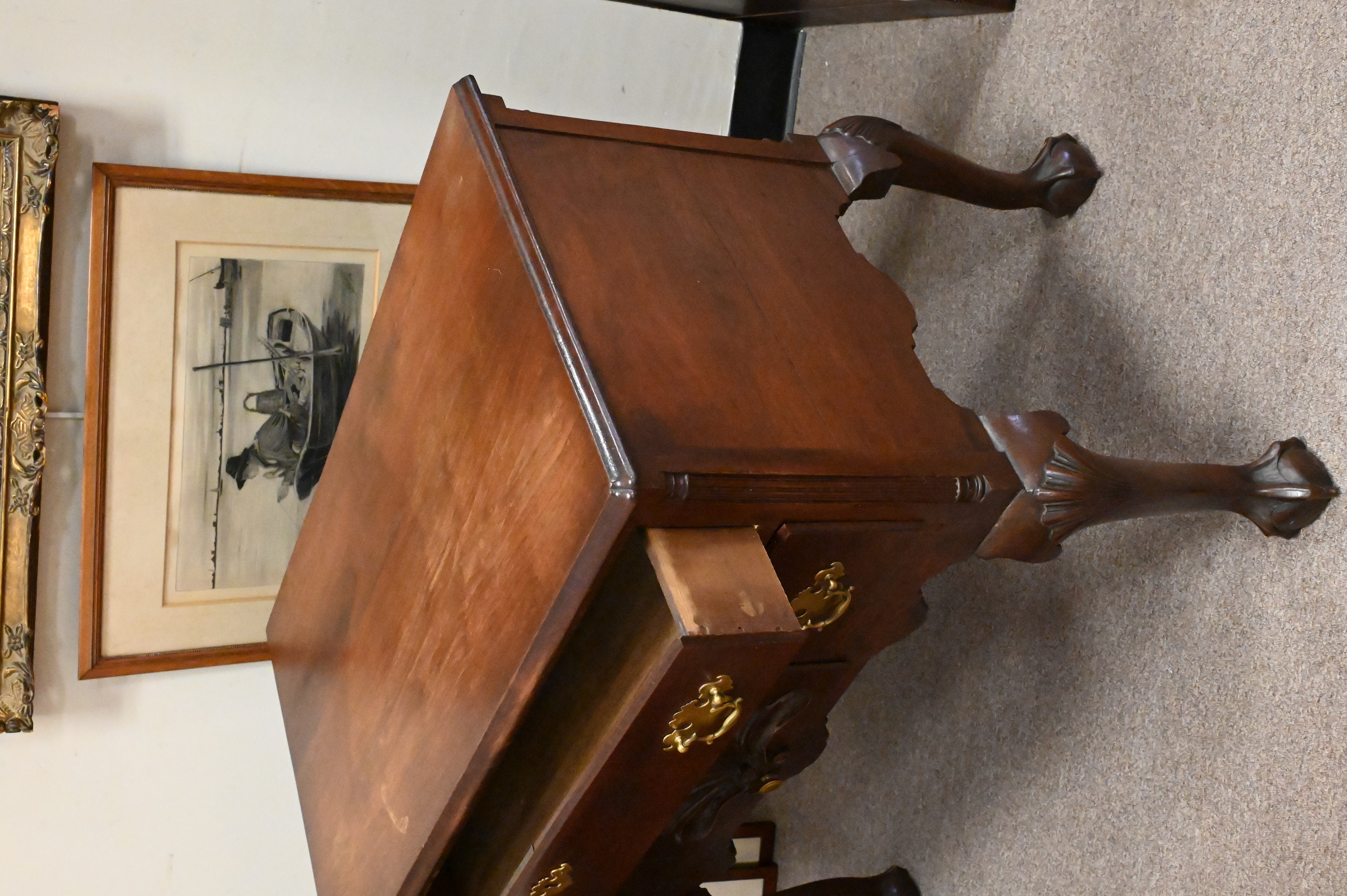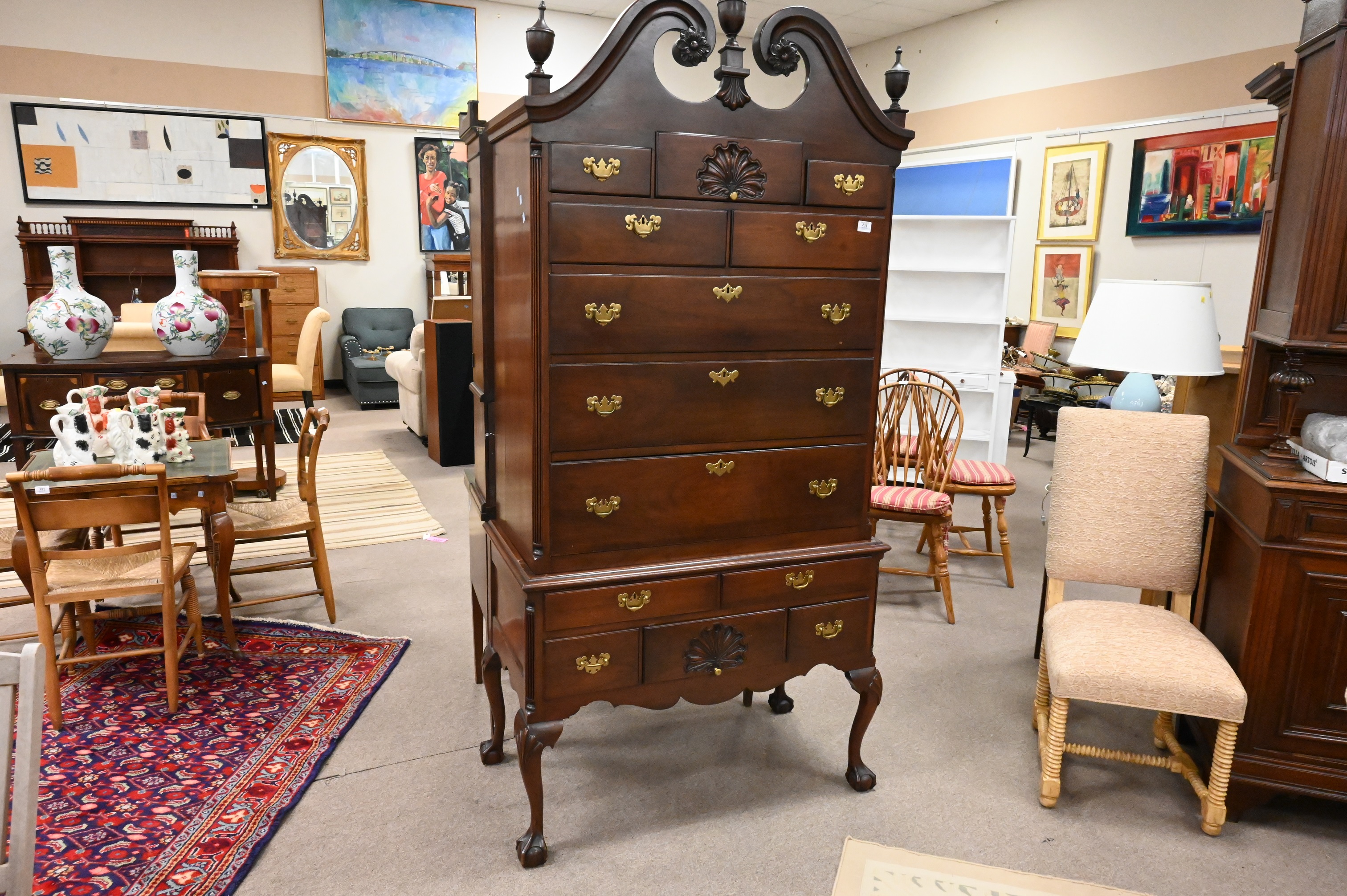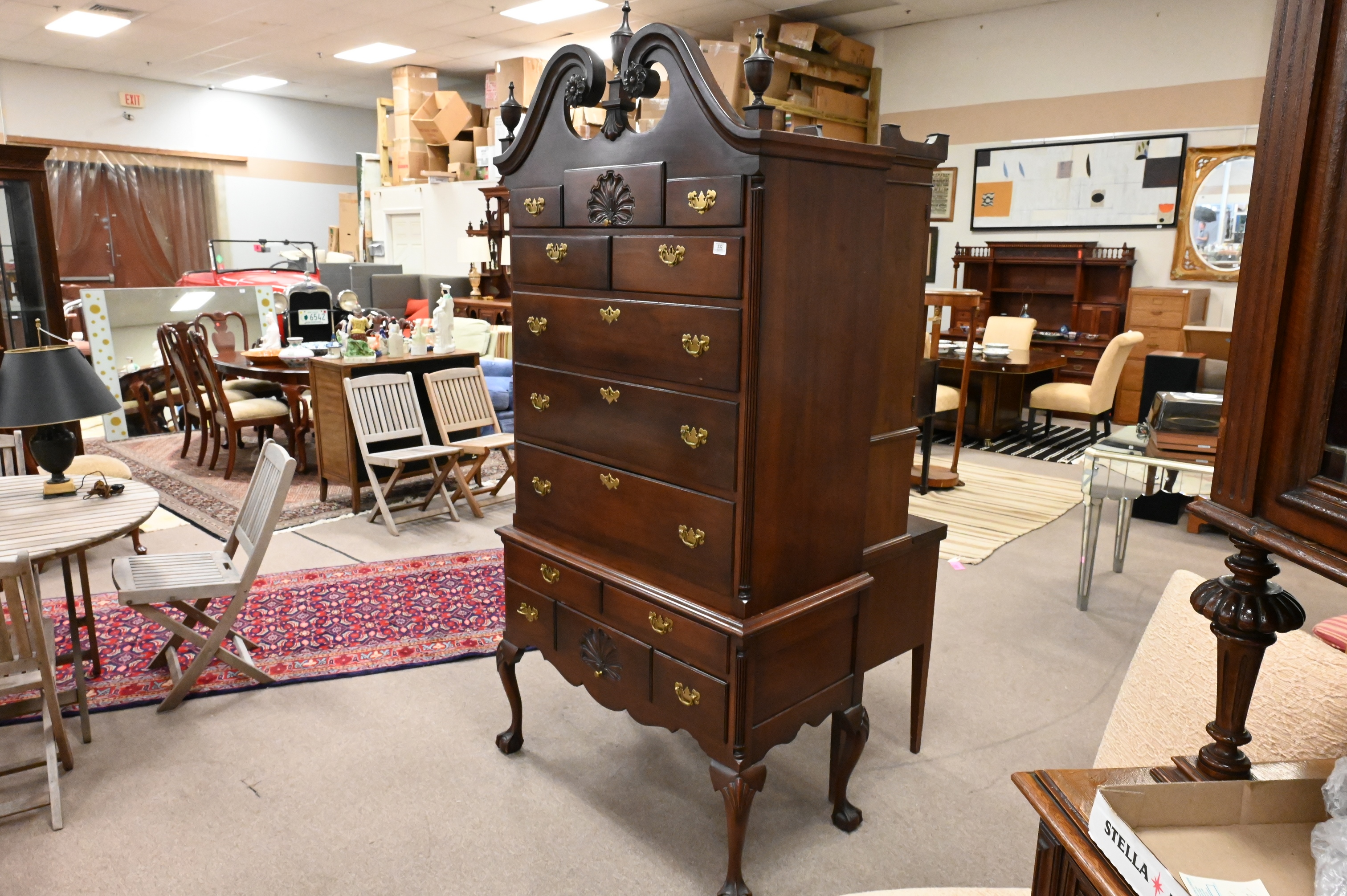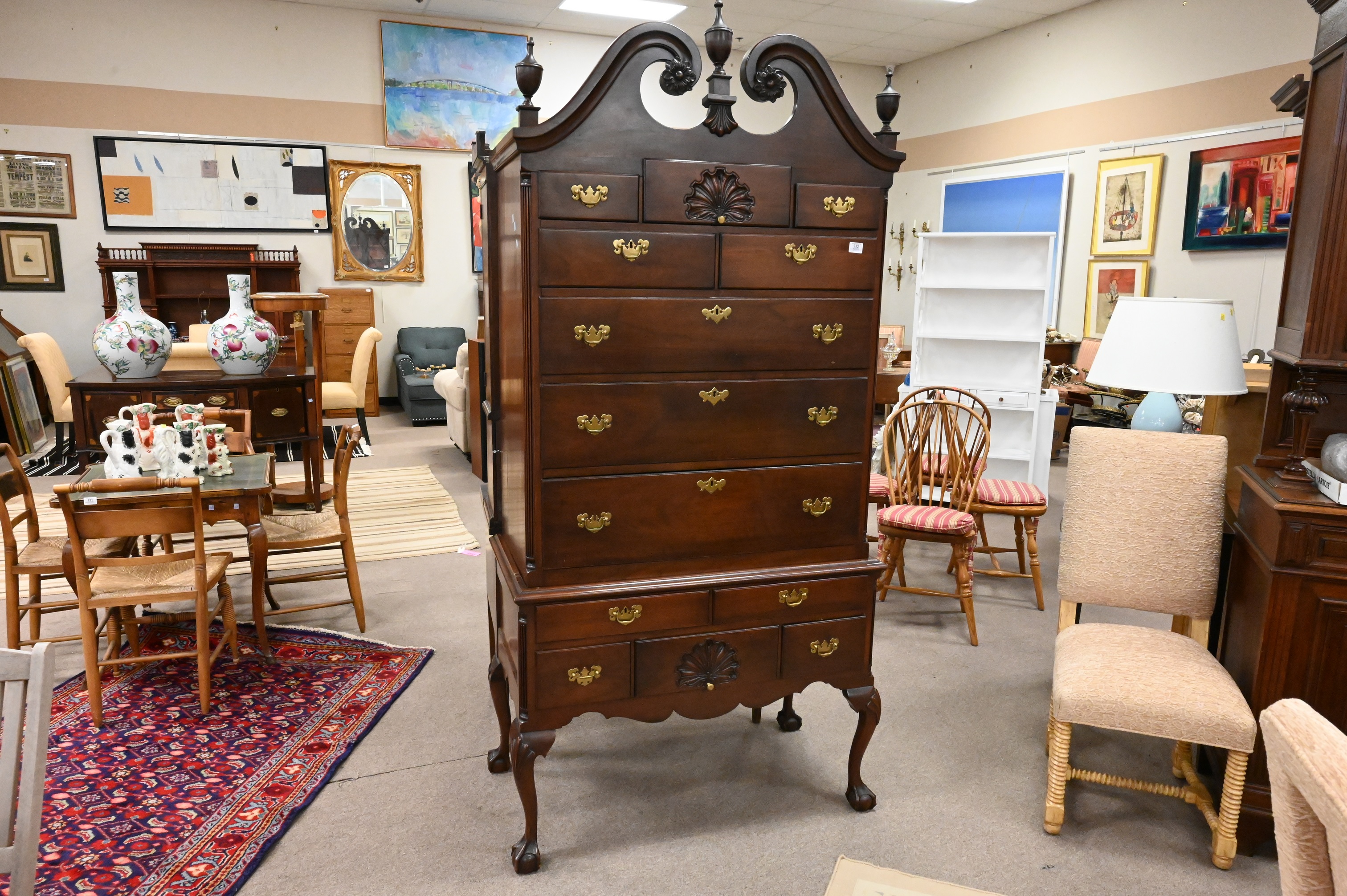 to include custom mahogany lowboy having ball and claw feet along with two part custom mahogany highboy