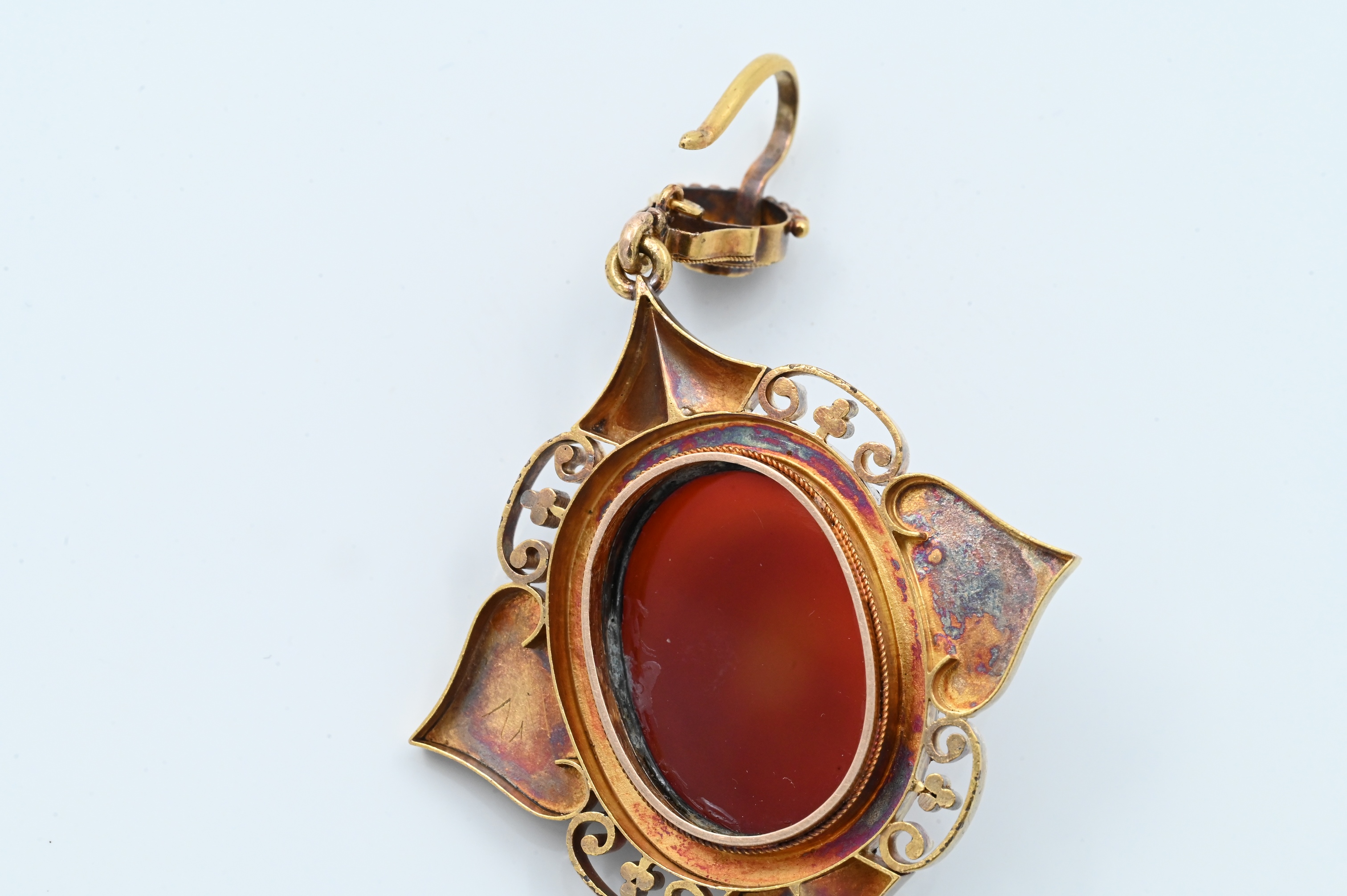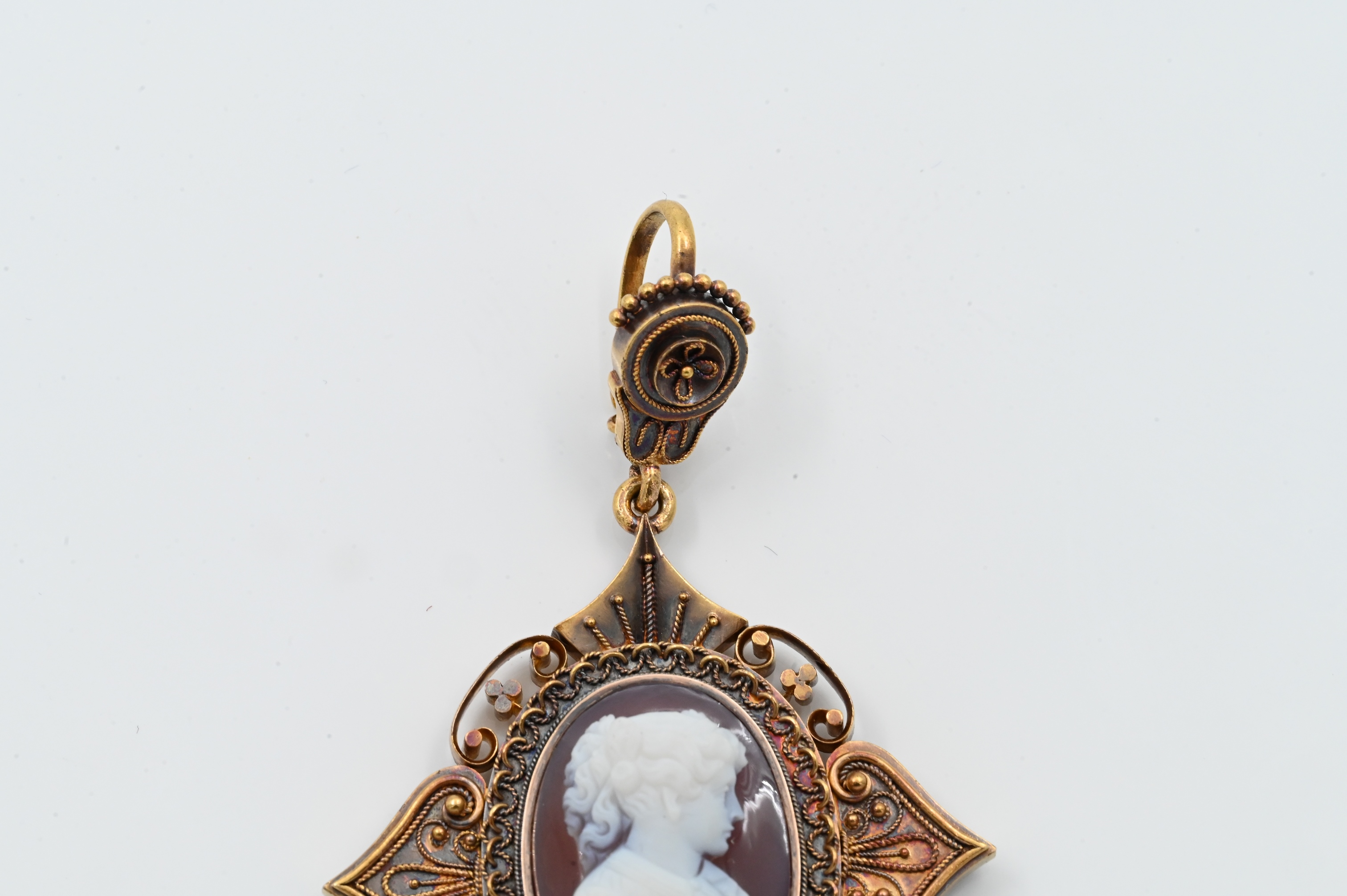 Victorian 14K Yellow Gold Pendant having Oval Stone Cameo