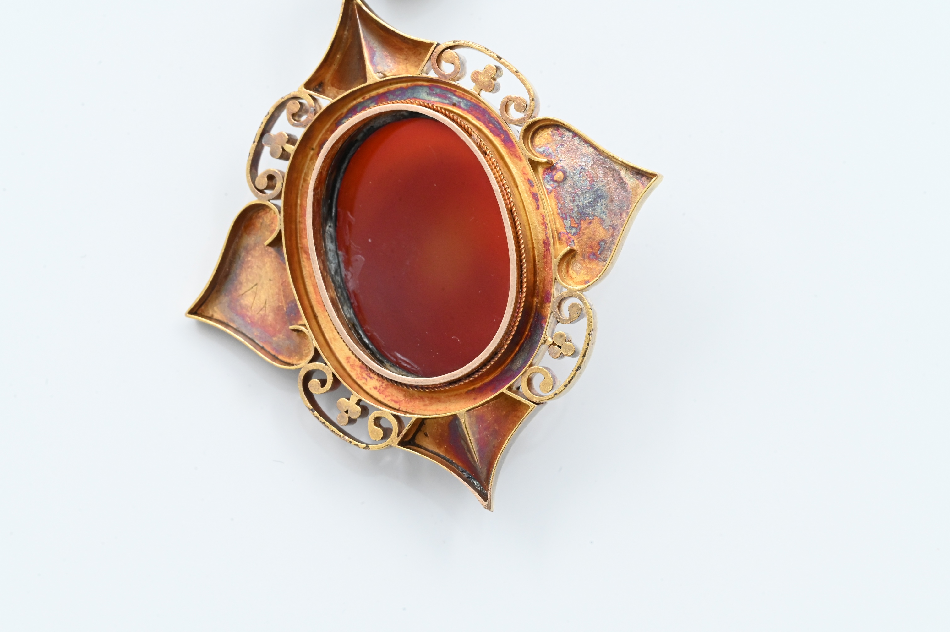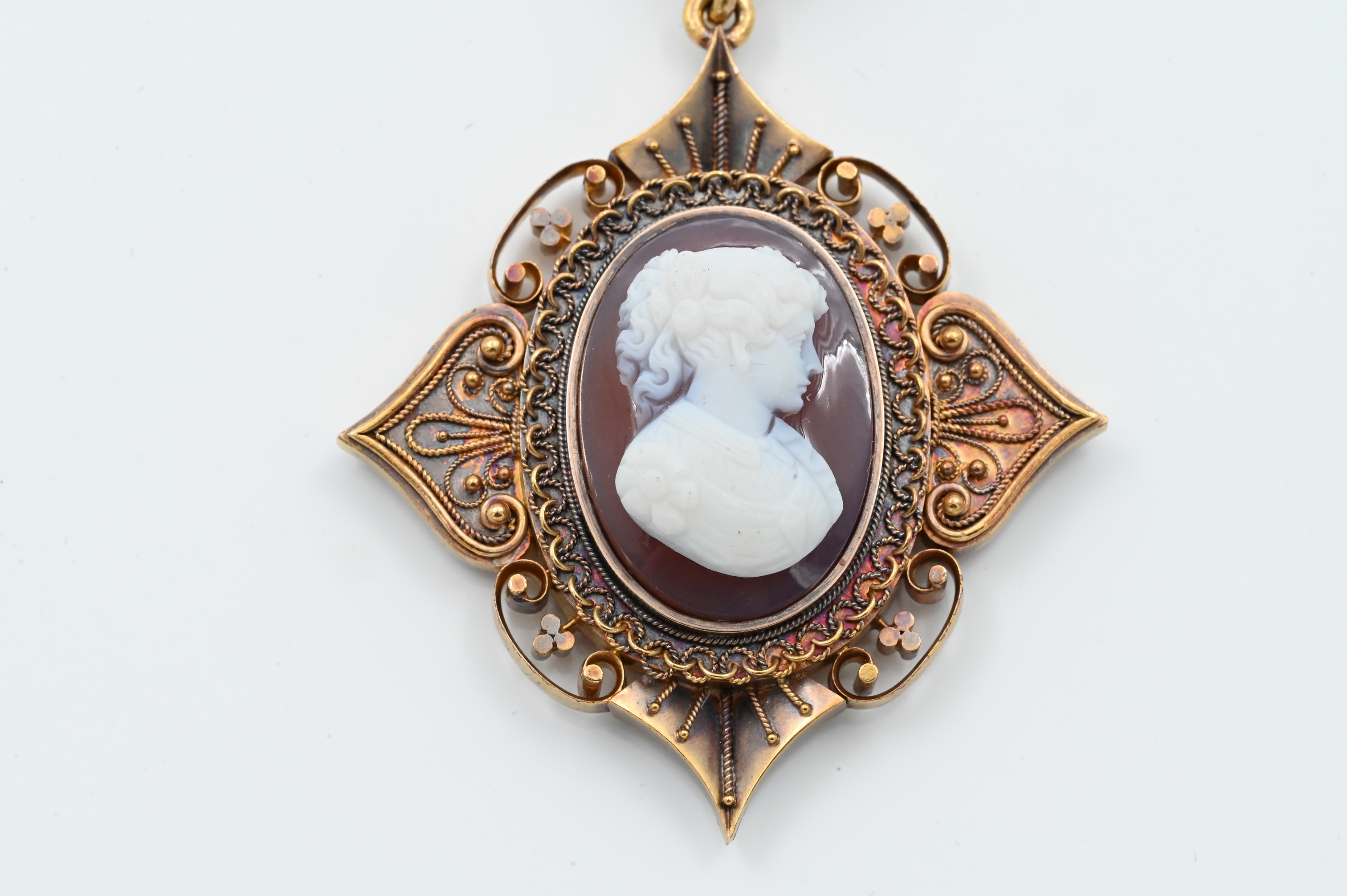 Lot 232: Victorian 14K Yellow Gold Pendant having Oval Stone Cameo