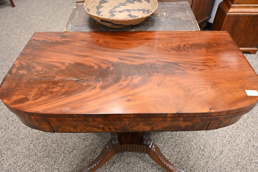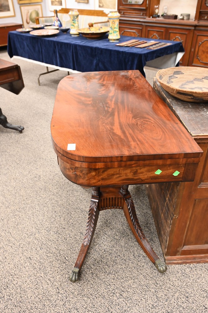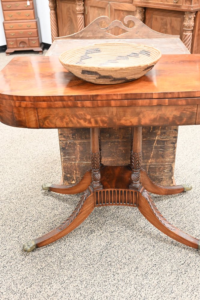 set on four carved and turned supports on base, set on four down swept members ending in brass paw