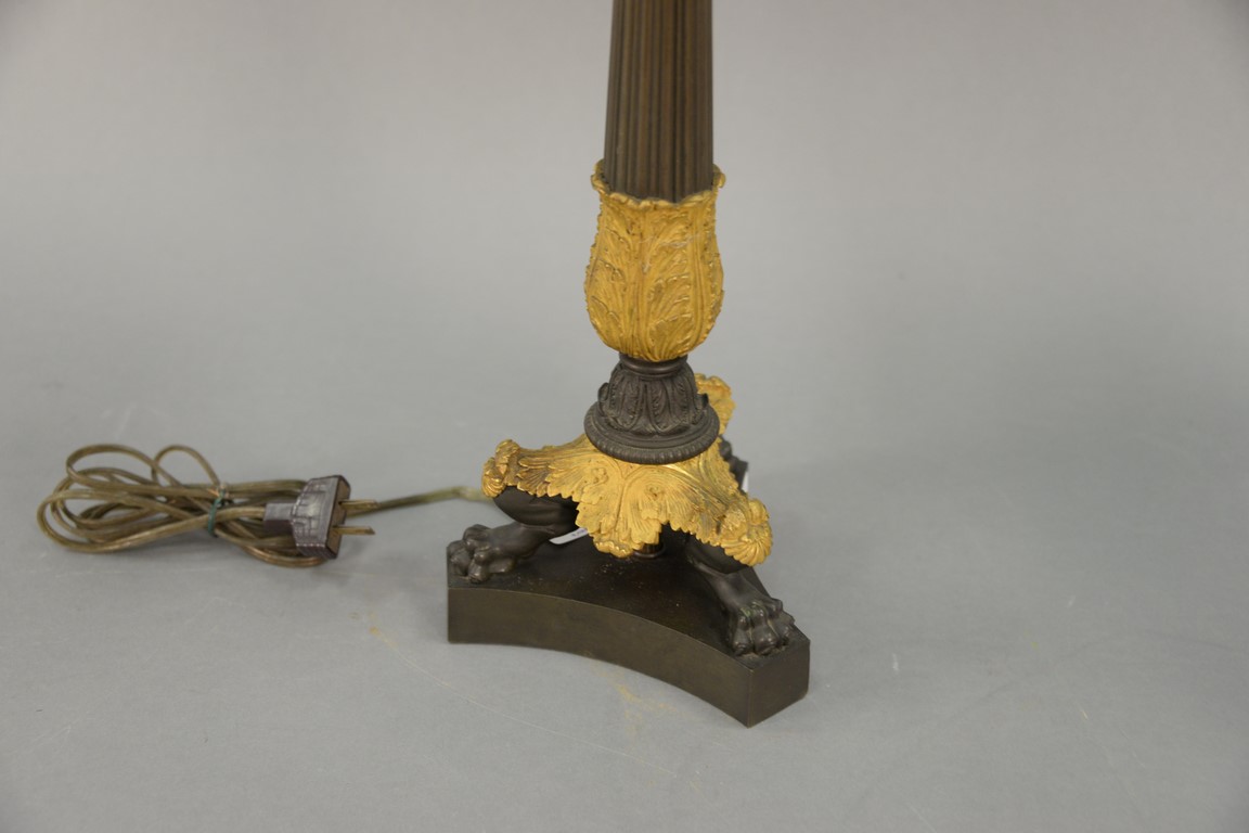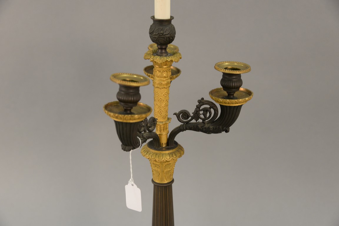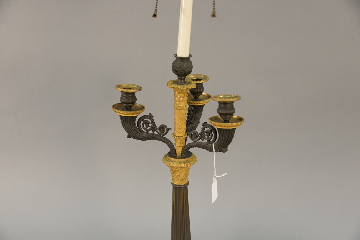 Bronze and gilt bronze candelabra lamp, 19th century. total ht. 29 1/2in.
