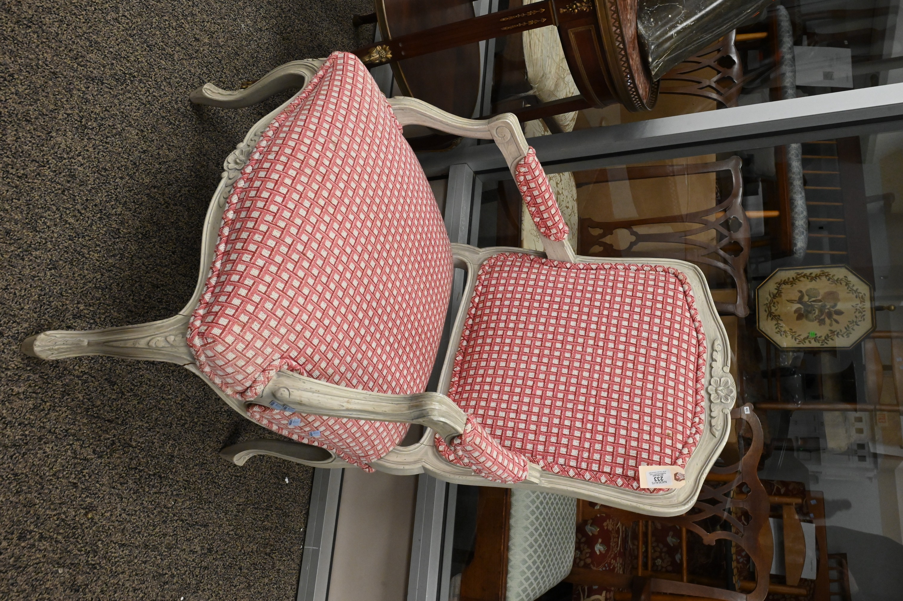 Lot 233: Custom Louis XV Style Fauteuil with Tapestry Style Upholstery