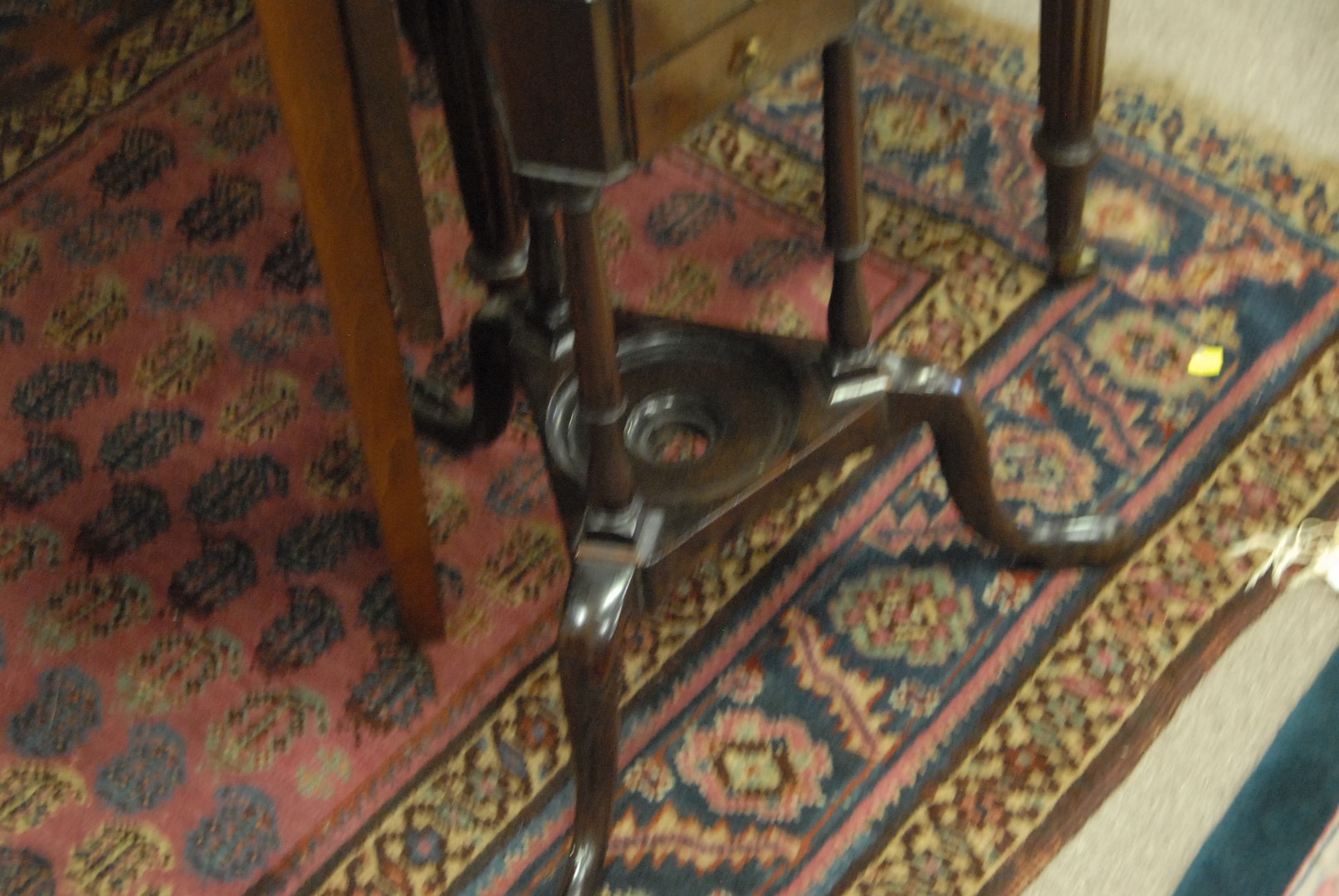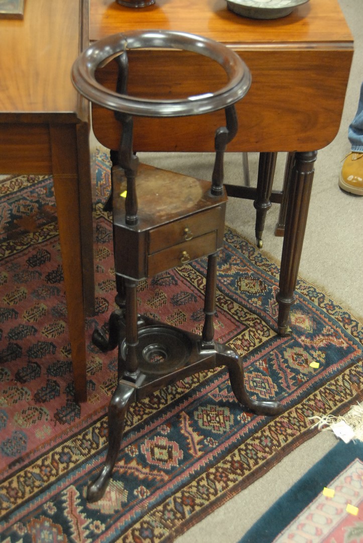 English mahogany plant stand with two drawers over tripod base. ht. 31 in.