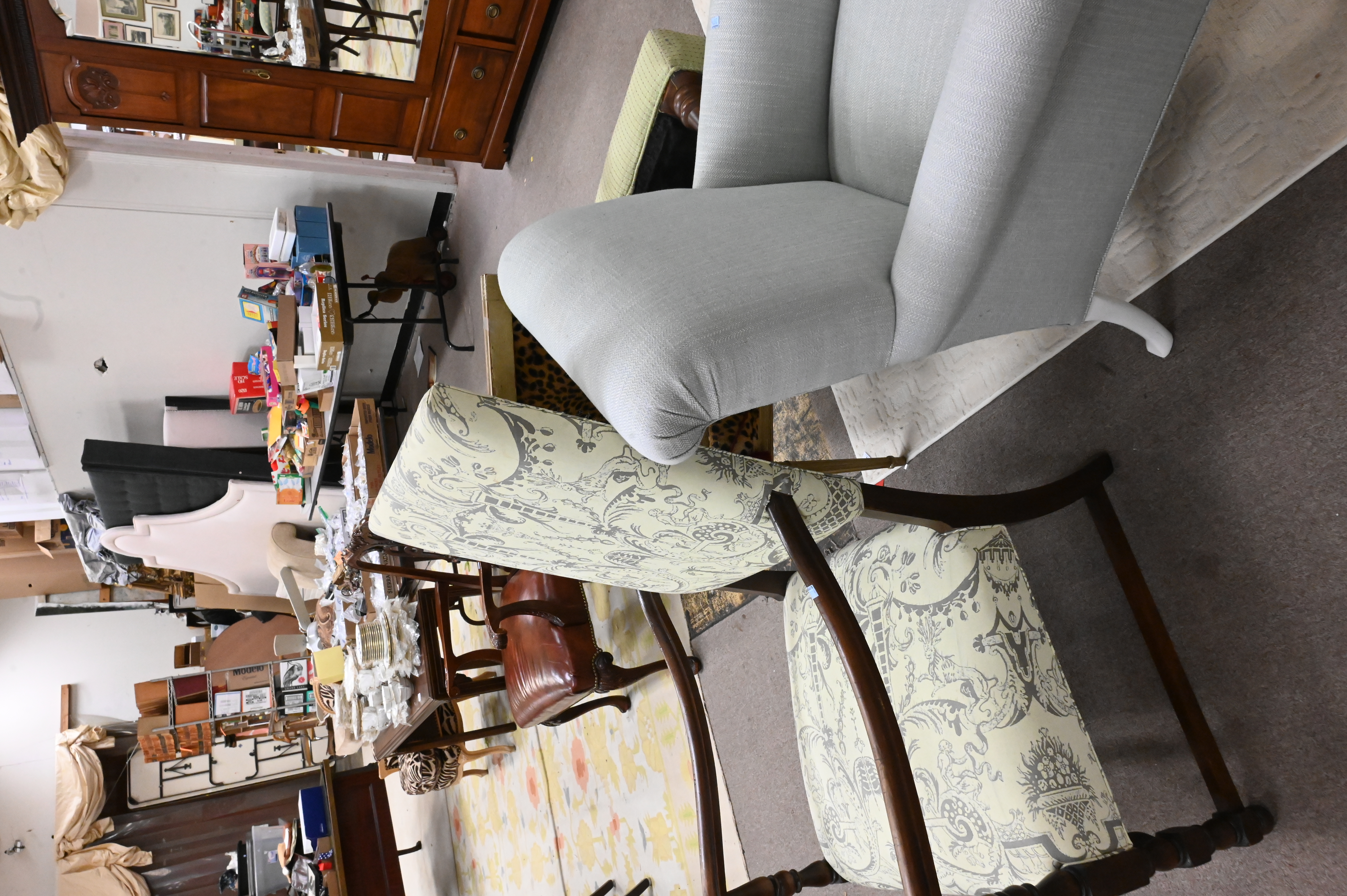 Four Piece Lot, to include two armchairs, one side chair, along with one footstool.