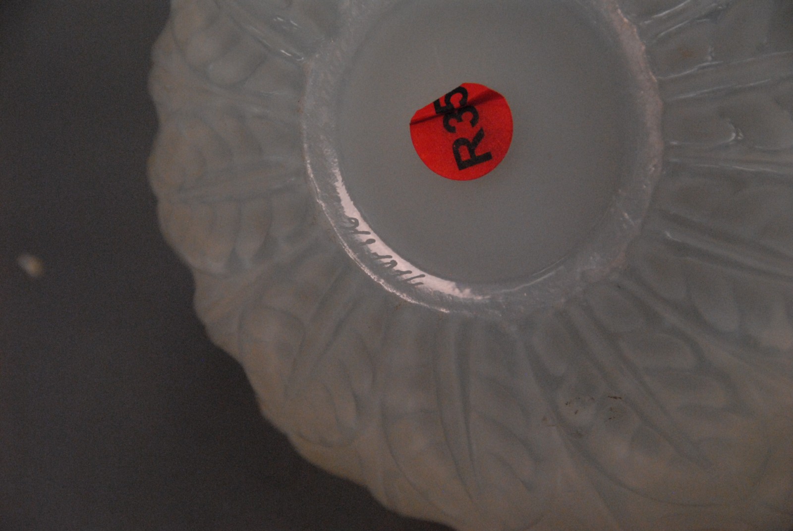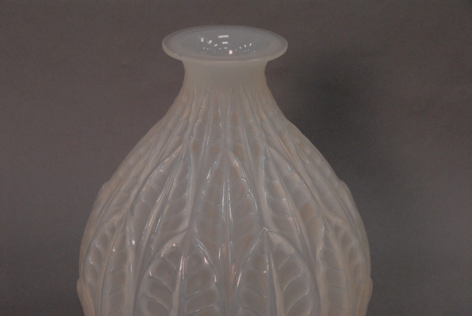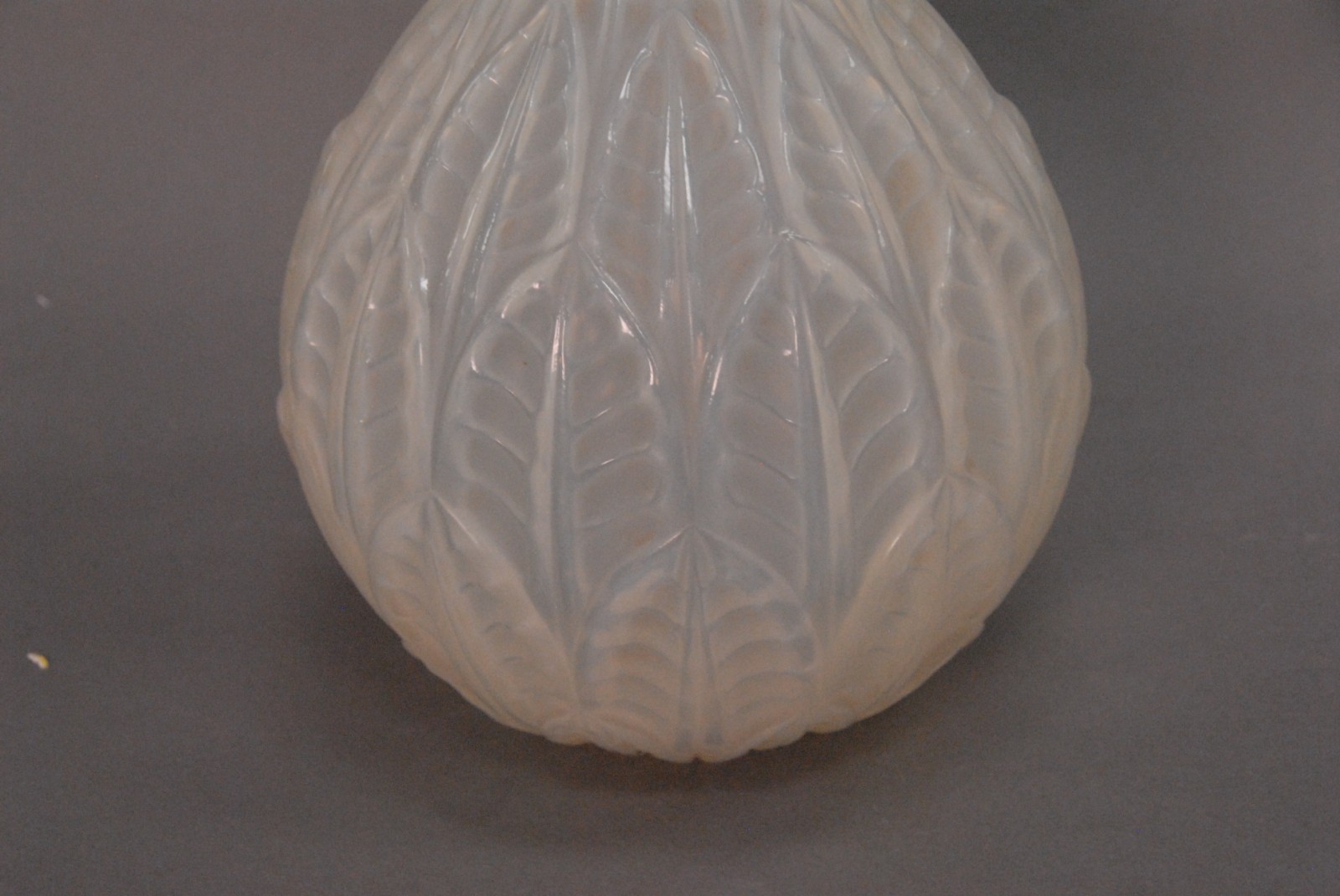 Lalique opalescent vase signed in script R. Lalique France H. 1074, ding on bottom.