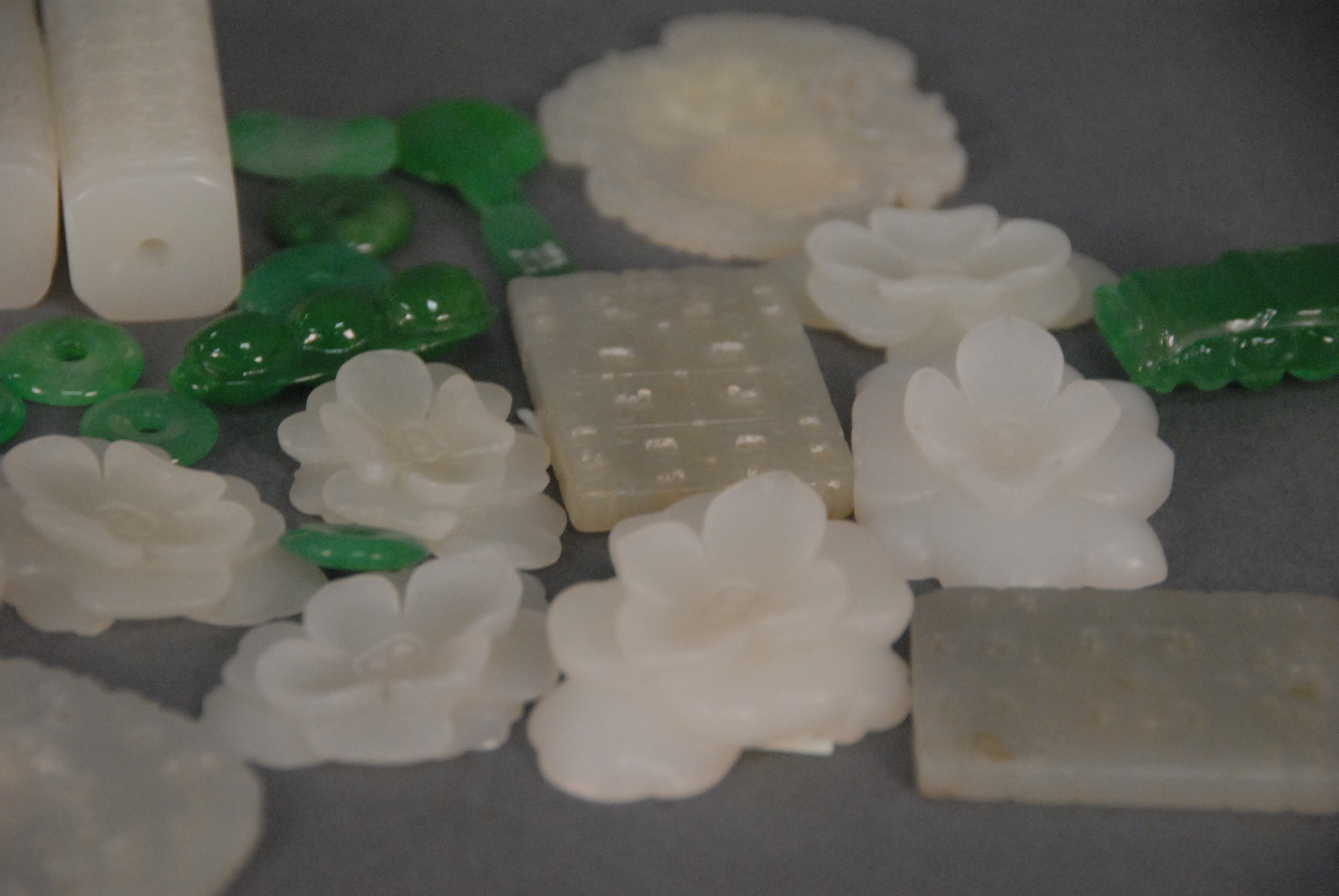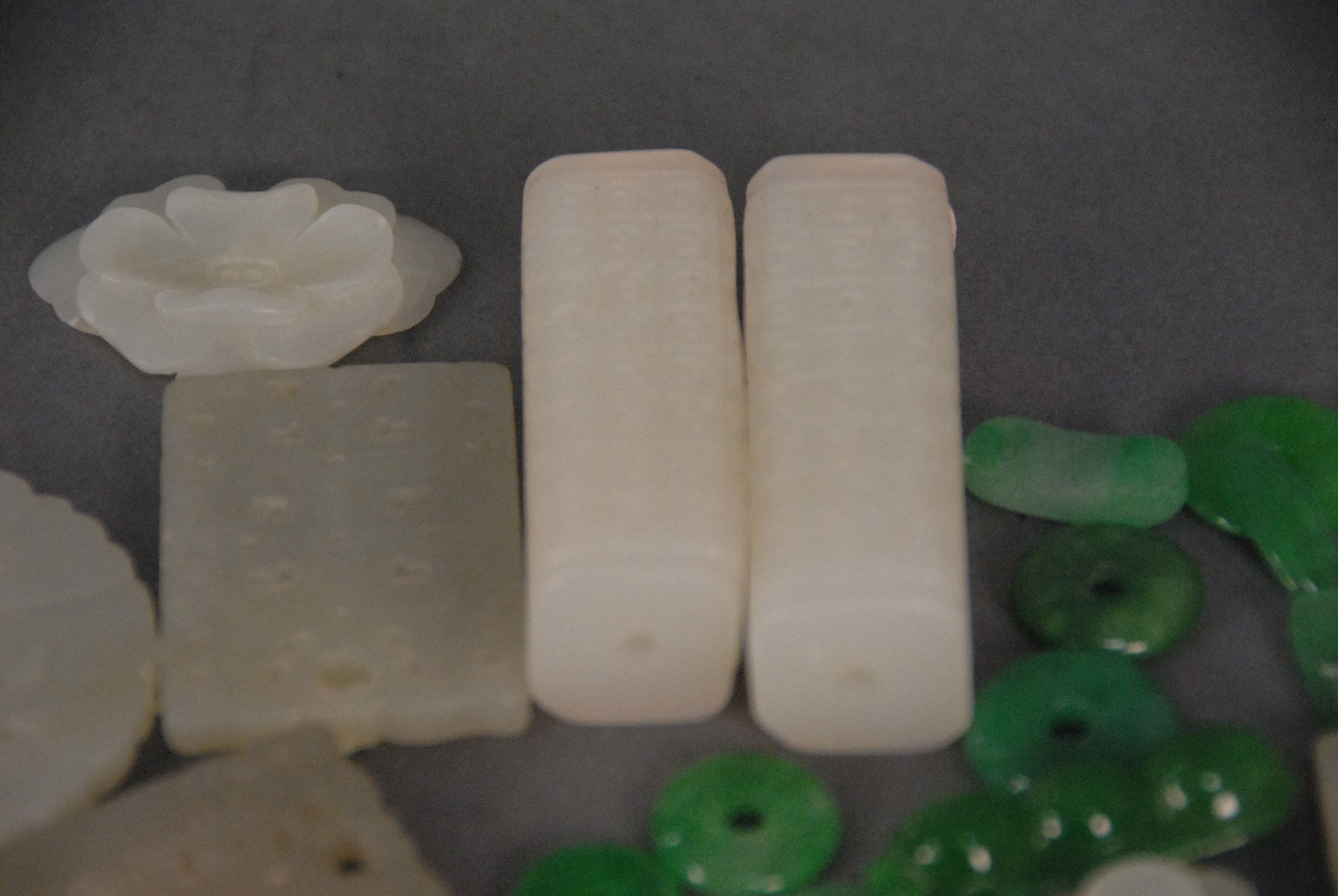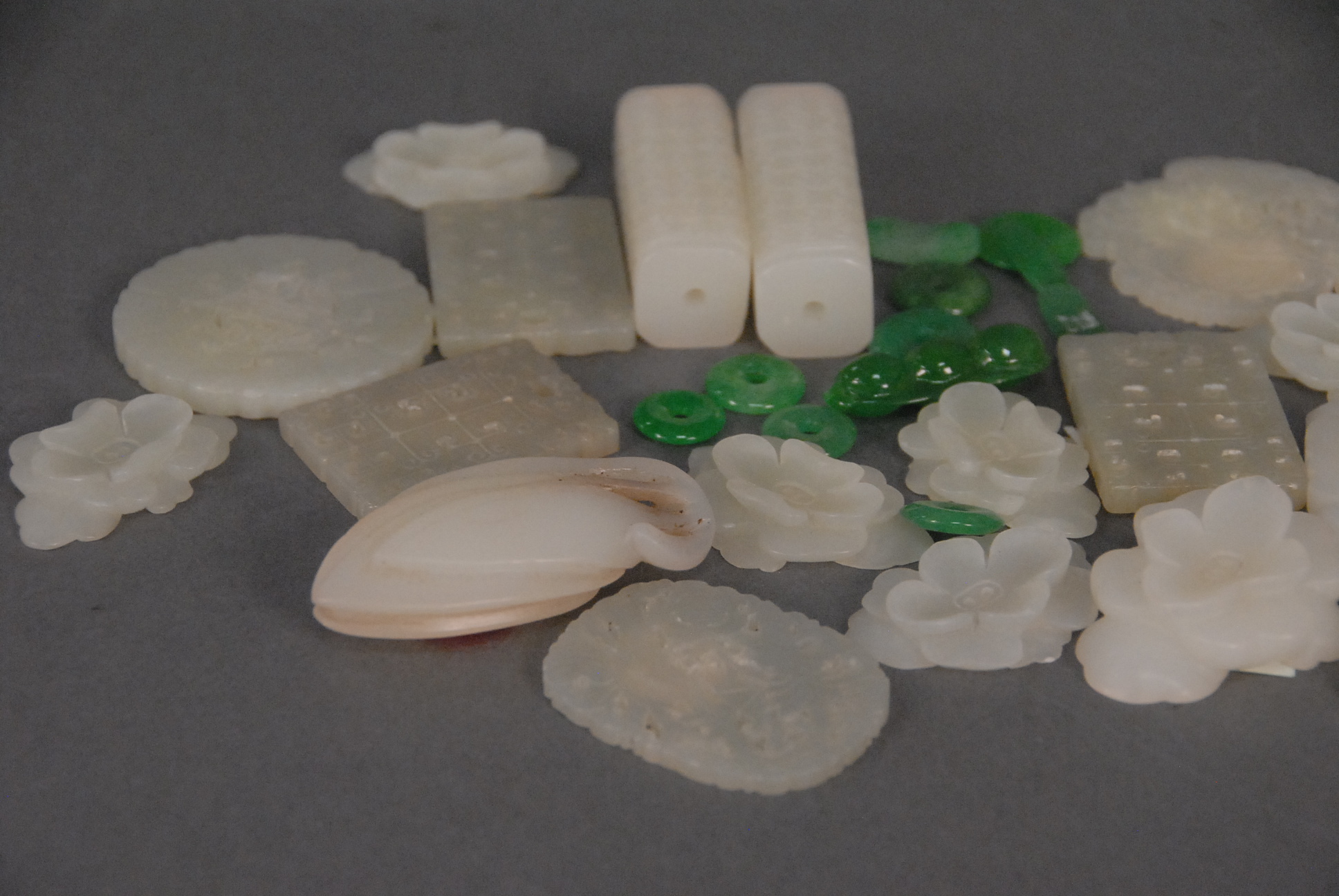 Lot 233: Large group of jade and jadeite items to include medallions, beads, and pendants 1/2in. – 3in.