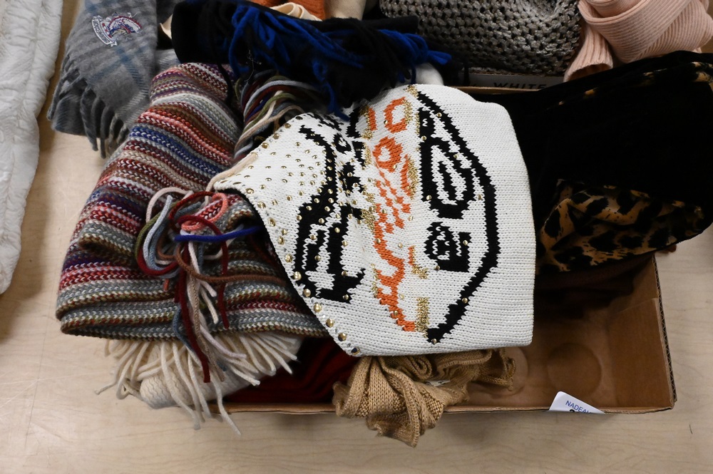 Lot 233: Large Group of Shawls and Scarves, to include John Hanly & Company Merino wool, Peter Macarthur wool, etc.