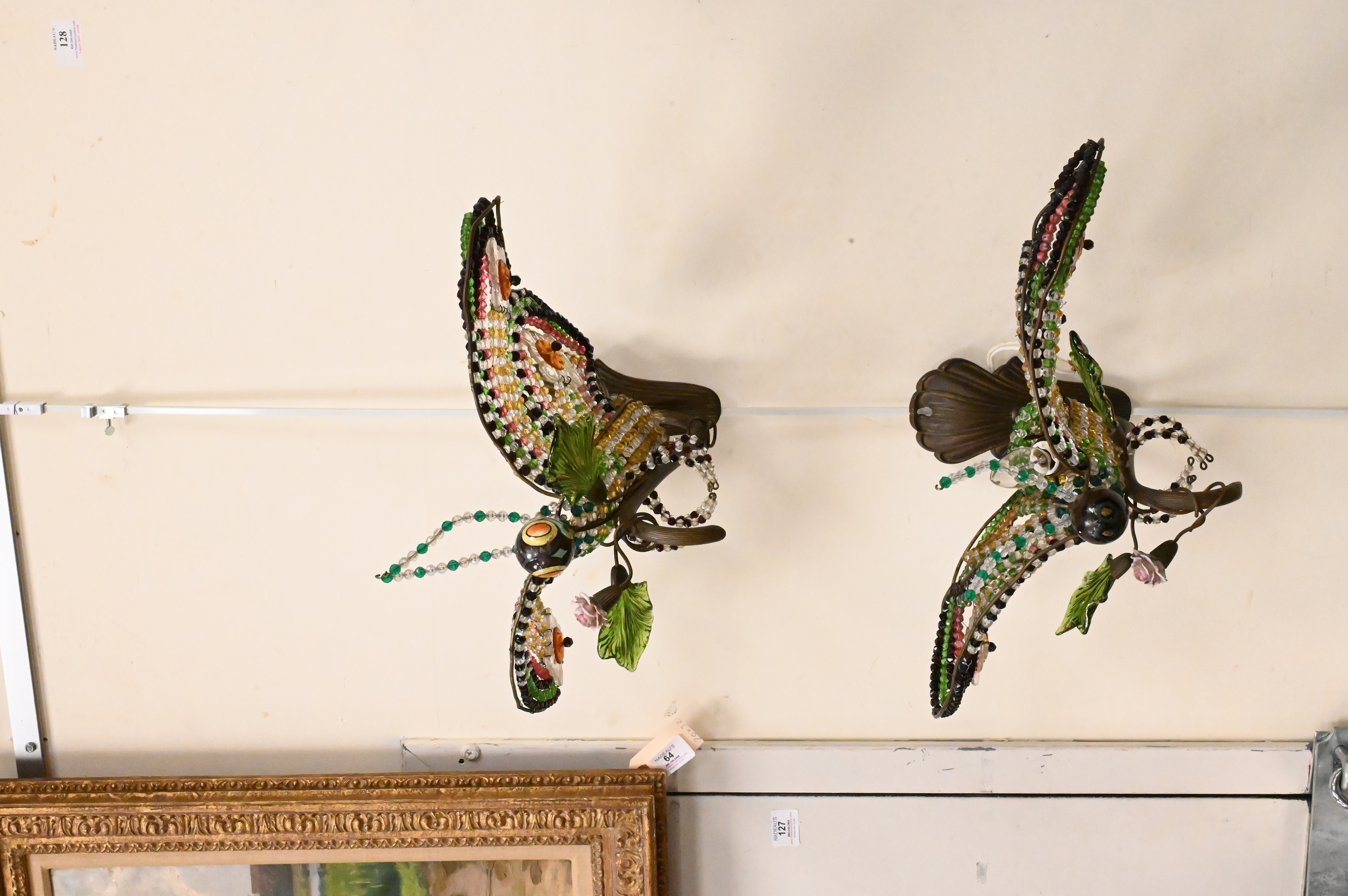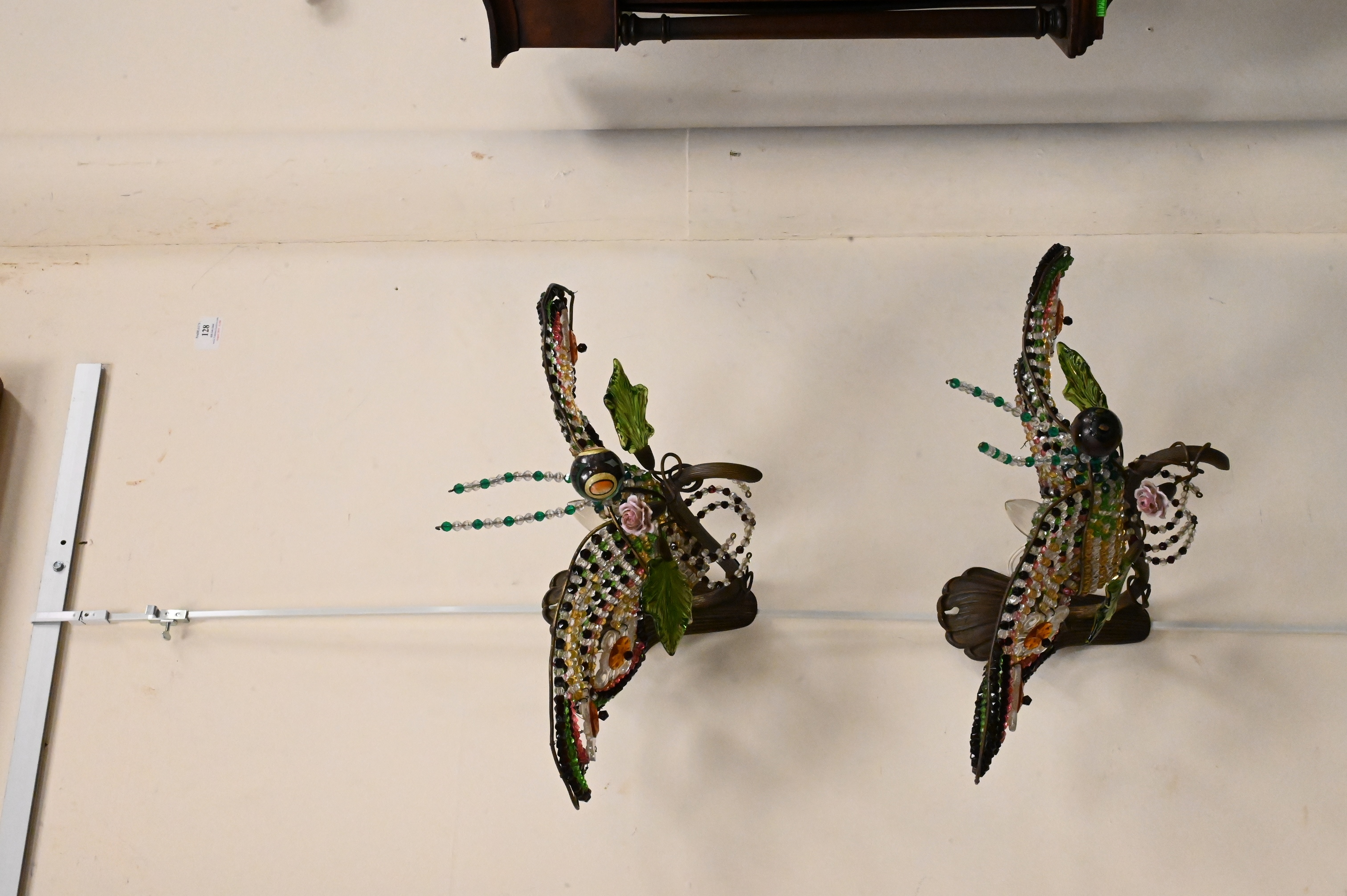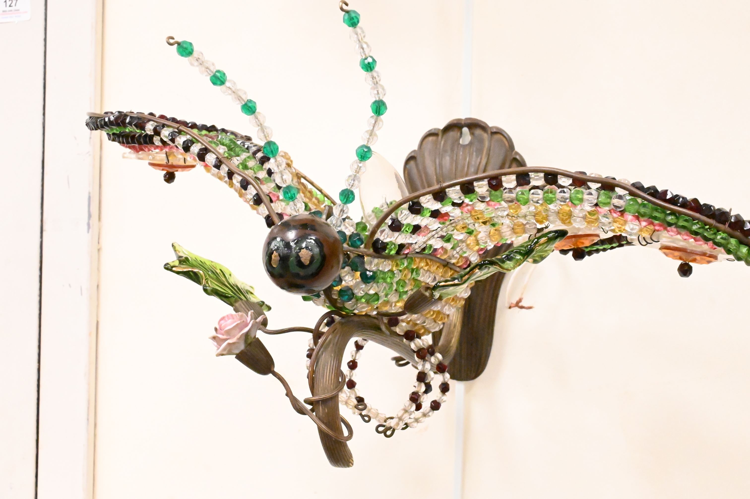 Lot 233: Pair of Glass Beaded and Brass Butterfly or Moth Form Sconces