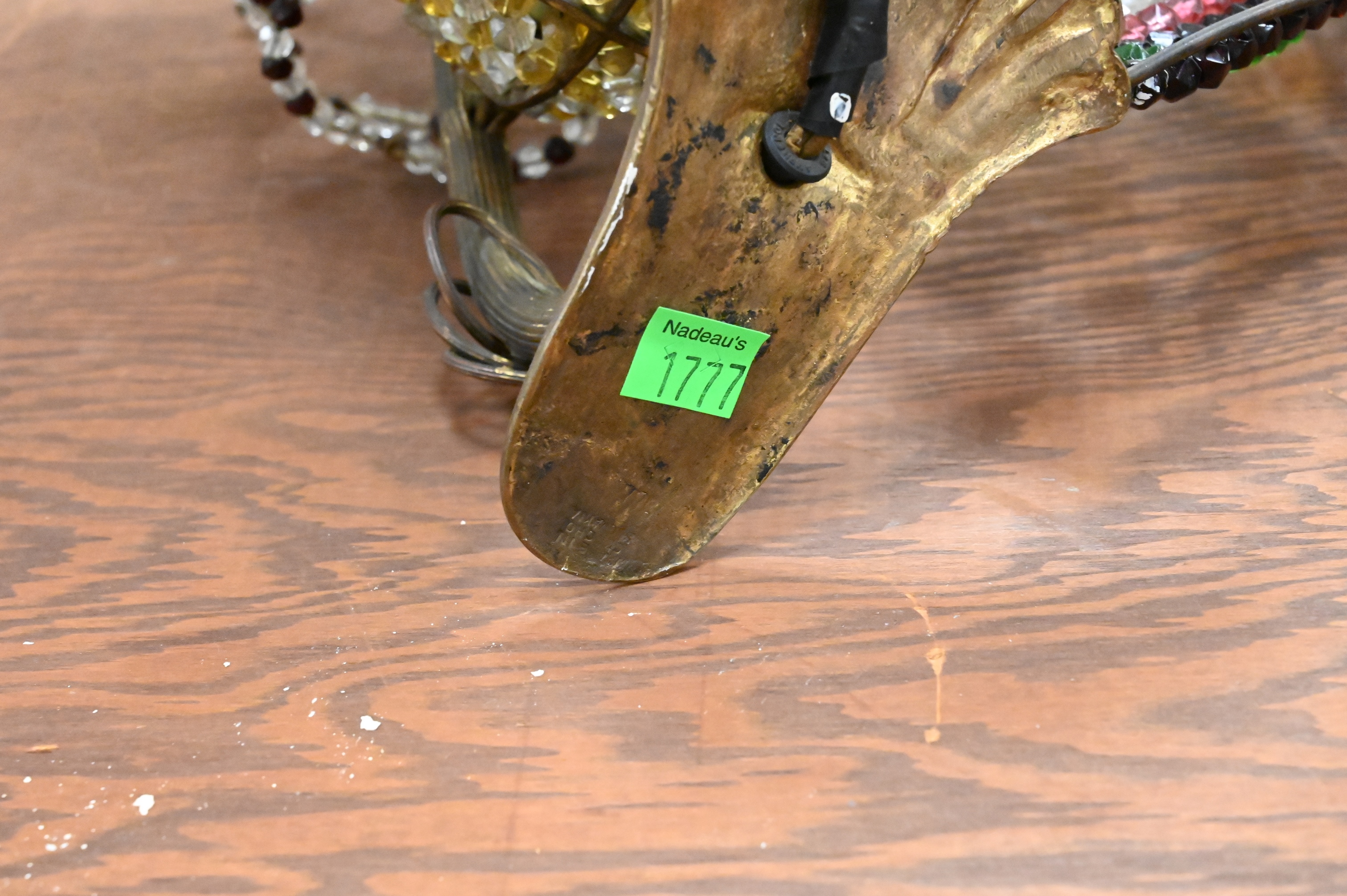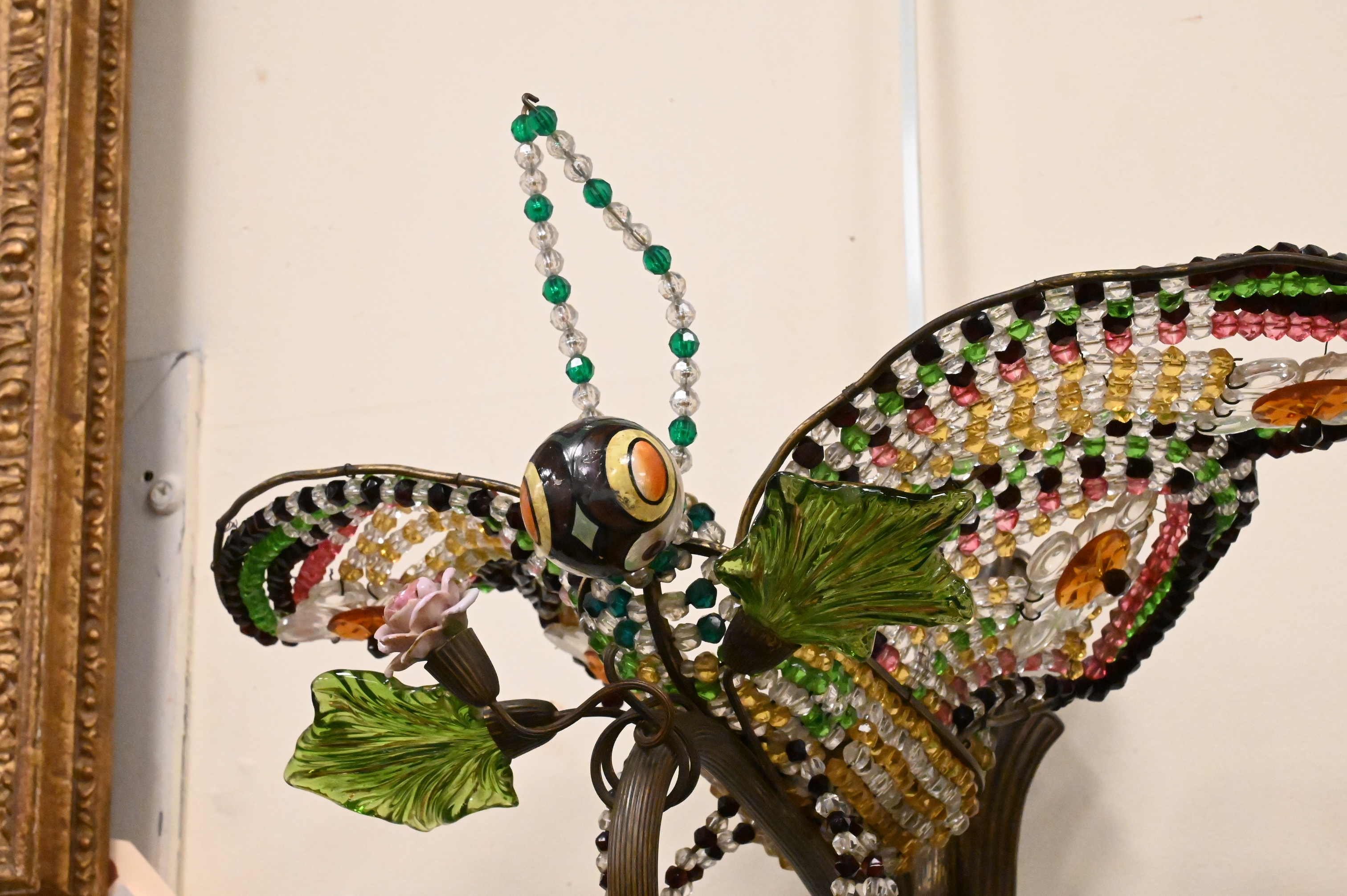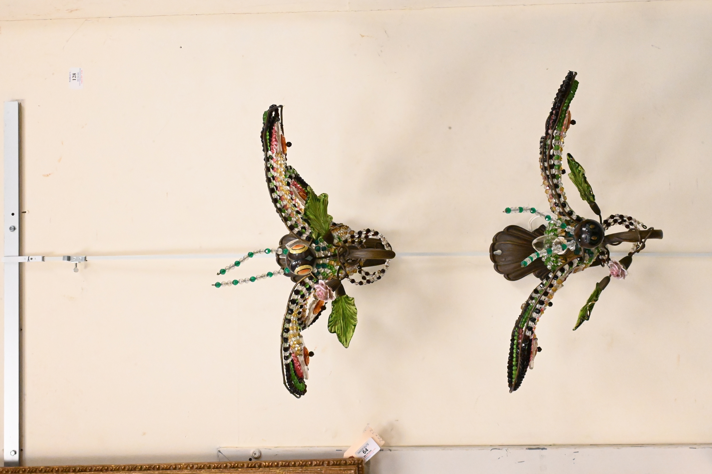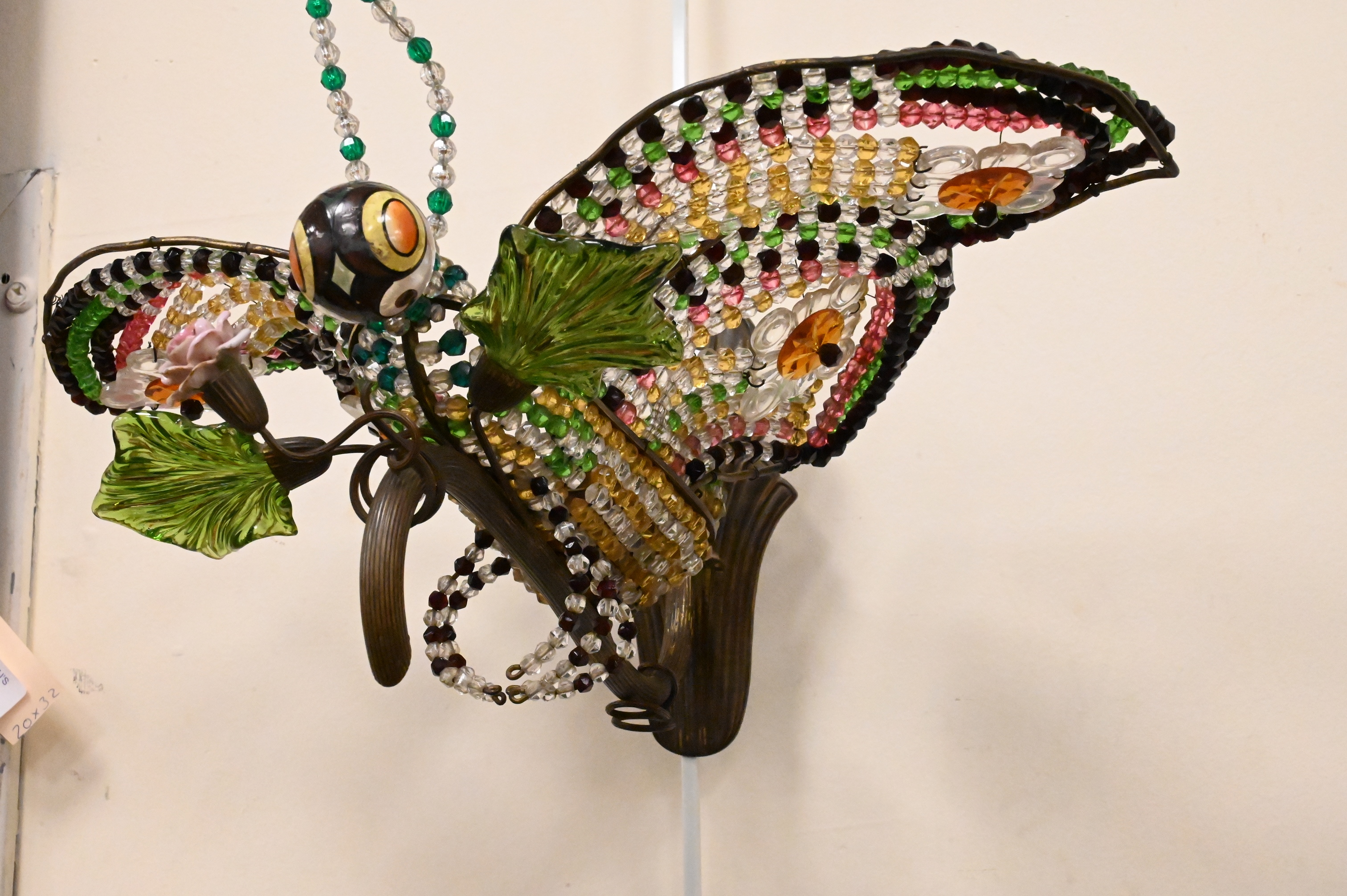 Lot 233: Pair of Glass Beaded and Brass Butterfly or Moth Form Sconces