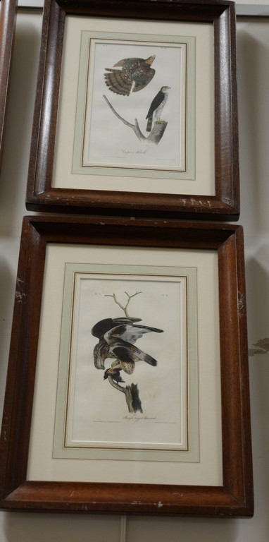 Set of six Audubon prints, Drawn from nature by J.J. Audubon, printed by J.T. Bowen, Philadelphia, hand colored lithographs, Peregrine Falcon Bald Eagle Swallow-tailed Hawk Cooper’s Hawk Red-headed Turkey Vulture Rough-legged Buzzard Black Vulture/Carrion Crew, sight size 9 1/2 x 6, 6 x 9 1/2 Provenance: Property from Credit Suisse’s Americana Collection
