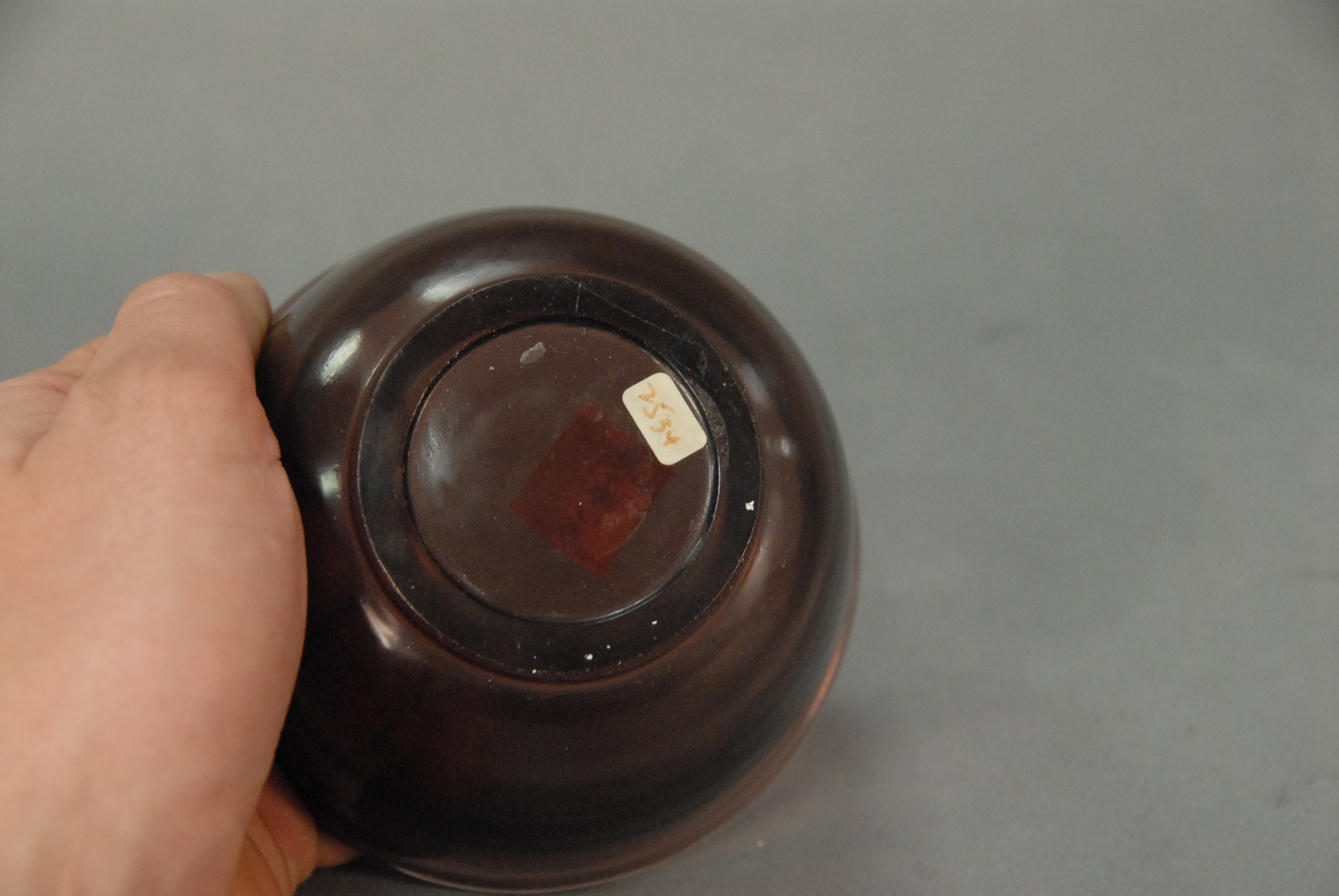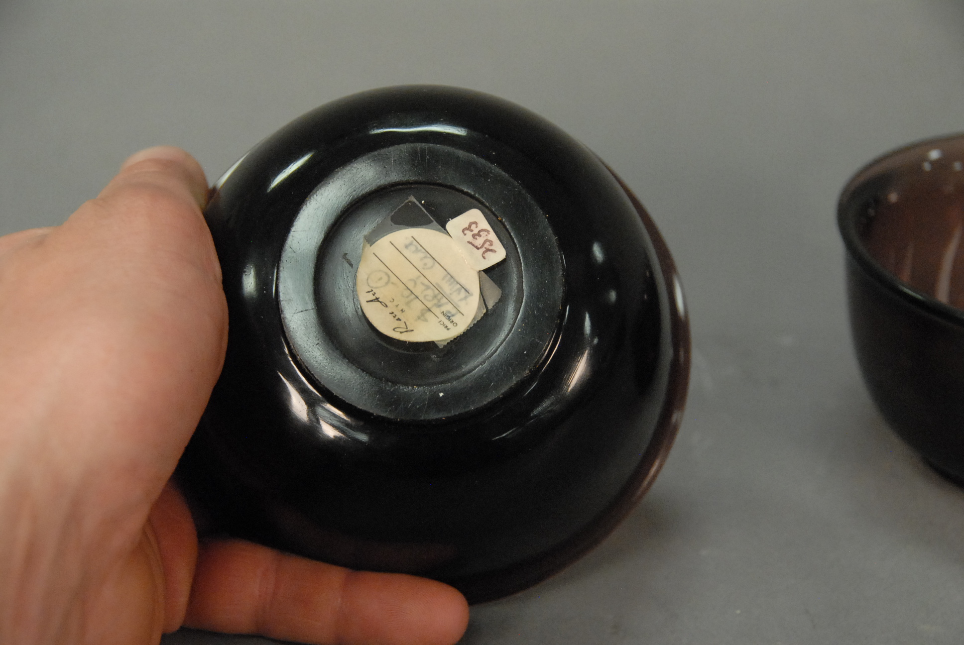 Lot 233: Two amethyst Peking glass bowls with slightly raised feet and everted rims, 18th/19th century. Provenance: Hartman Rare Art larger: dia. 4 3/4in. smaller dia. 4 1/4in.