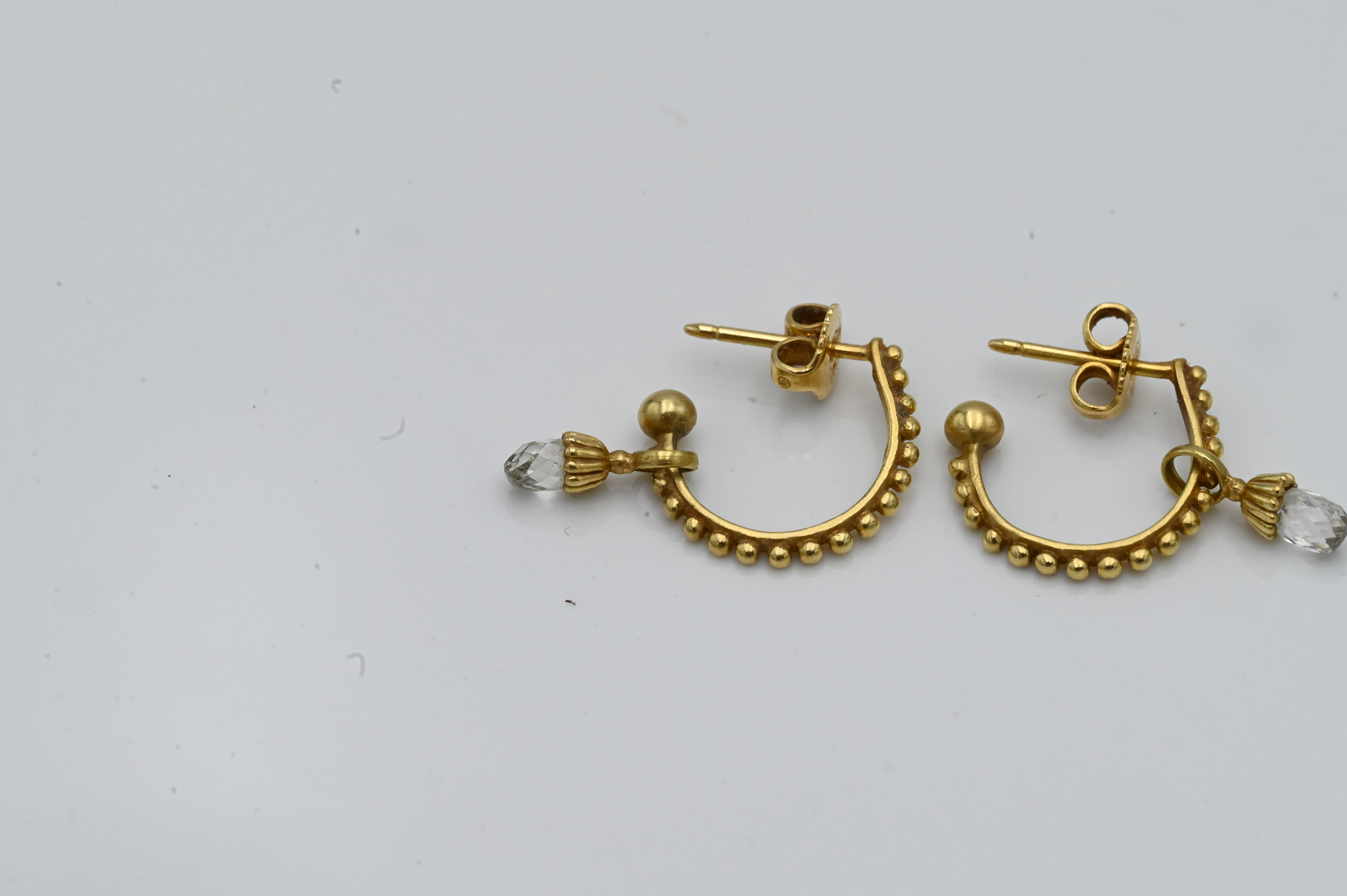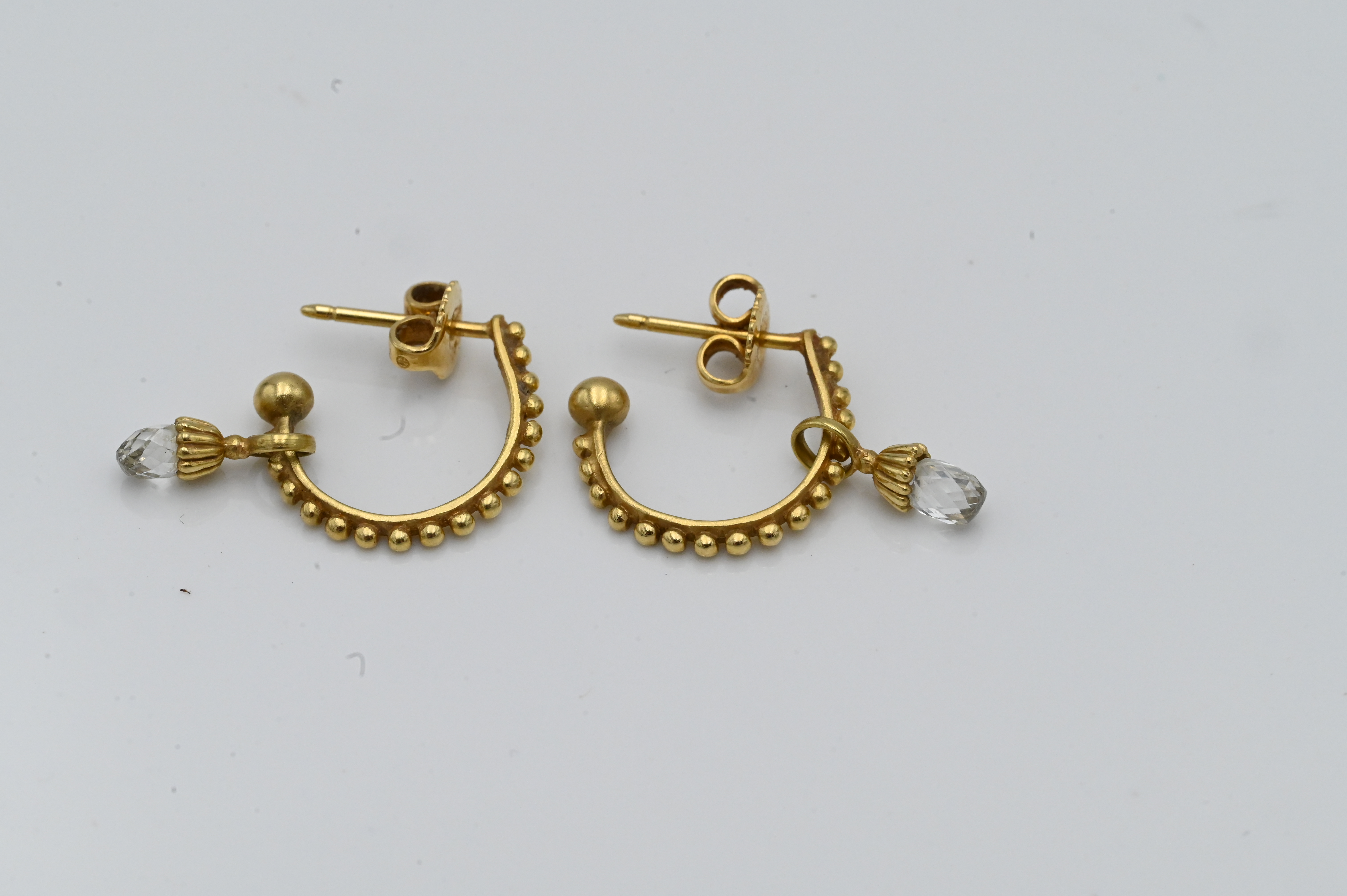 A Pair of 14 Karat Yellow Gold Pierced Earrings, having oval drop diamonds, 3.9 grams total weight.