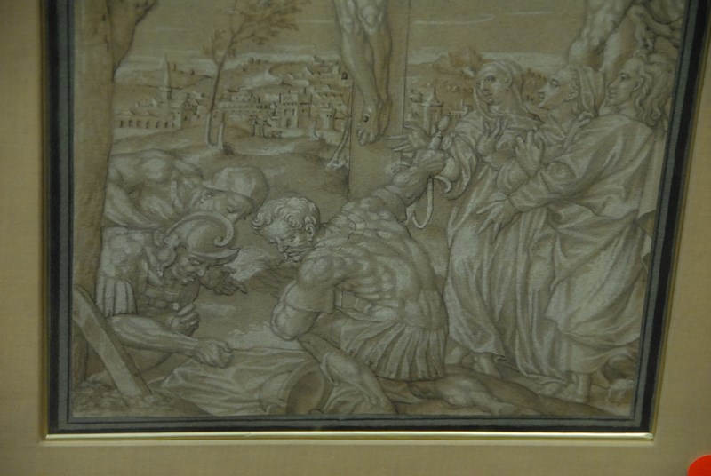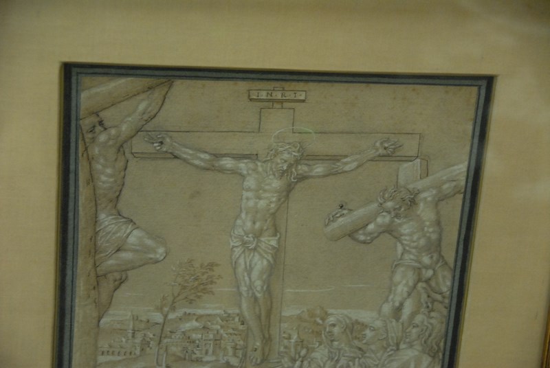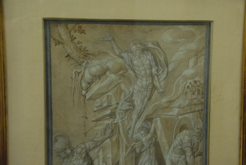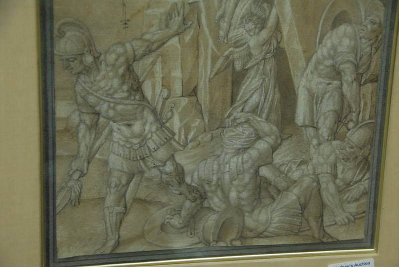 Lot 234: After Giacinto Calandrucci 1646-1707 Pair of drawings on paper highlighted in white Warrior Figures with Christ both signed indistinctly lower right 13 1/4 x 9 1/2