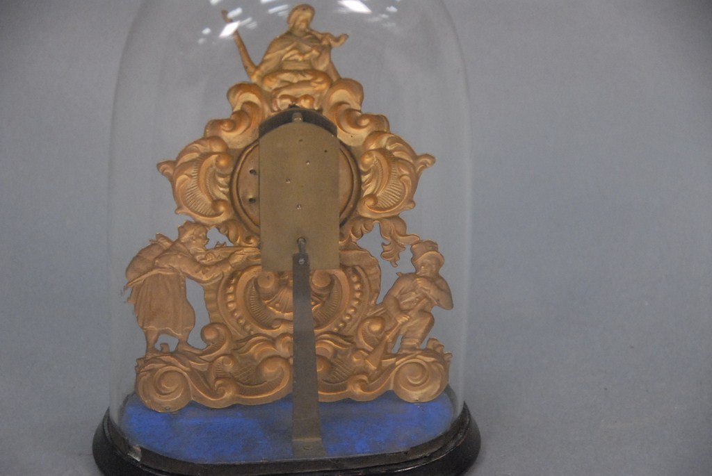 Continental shelf clock under glass dome with front pendulum