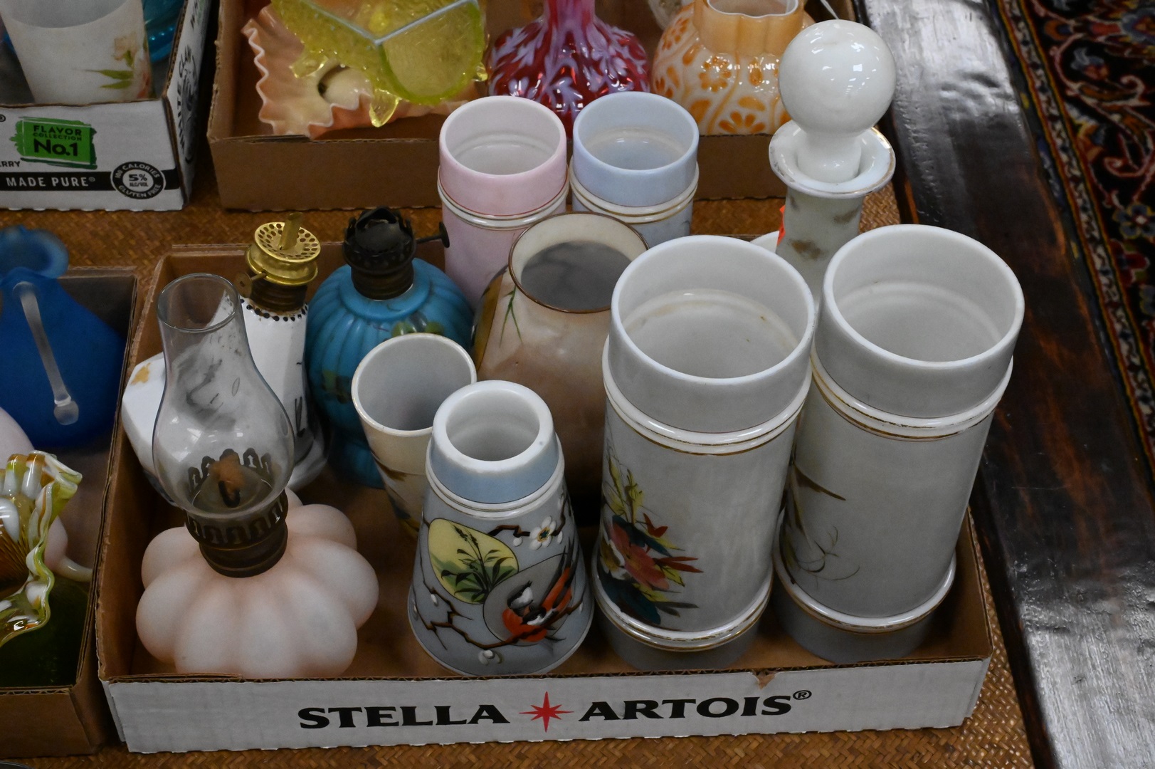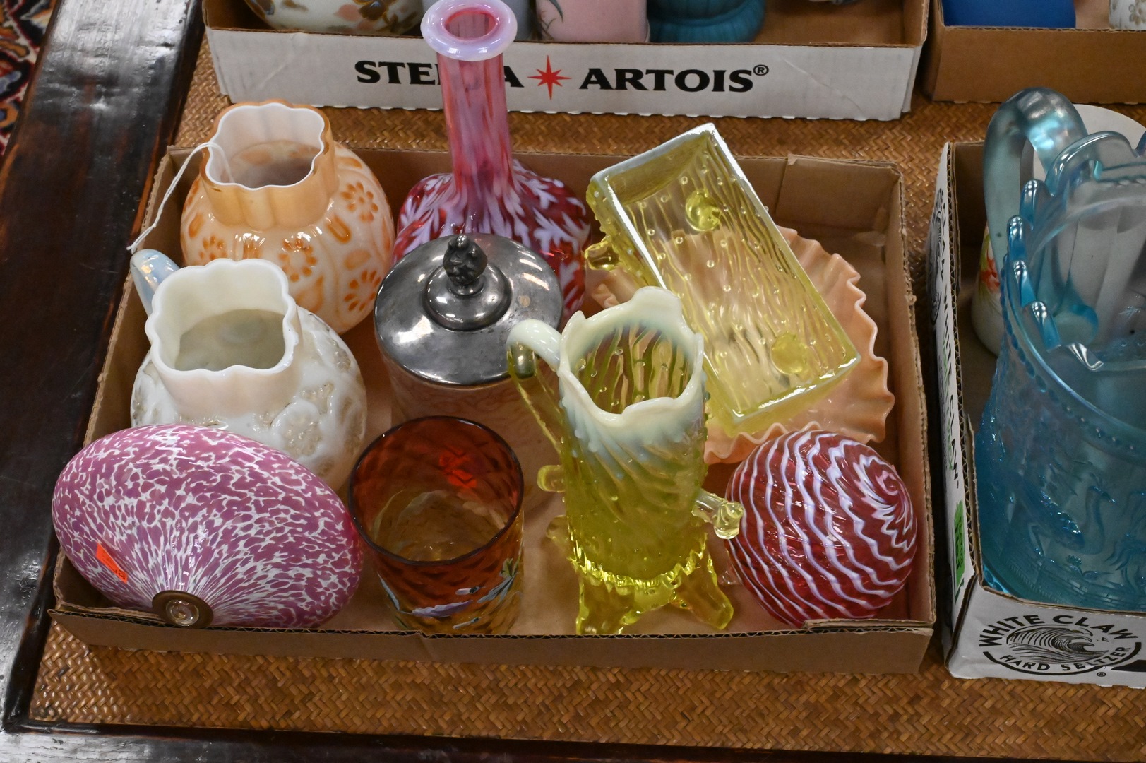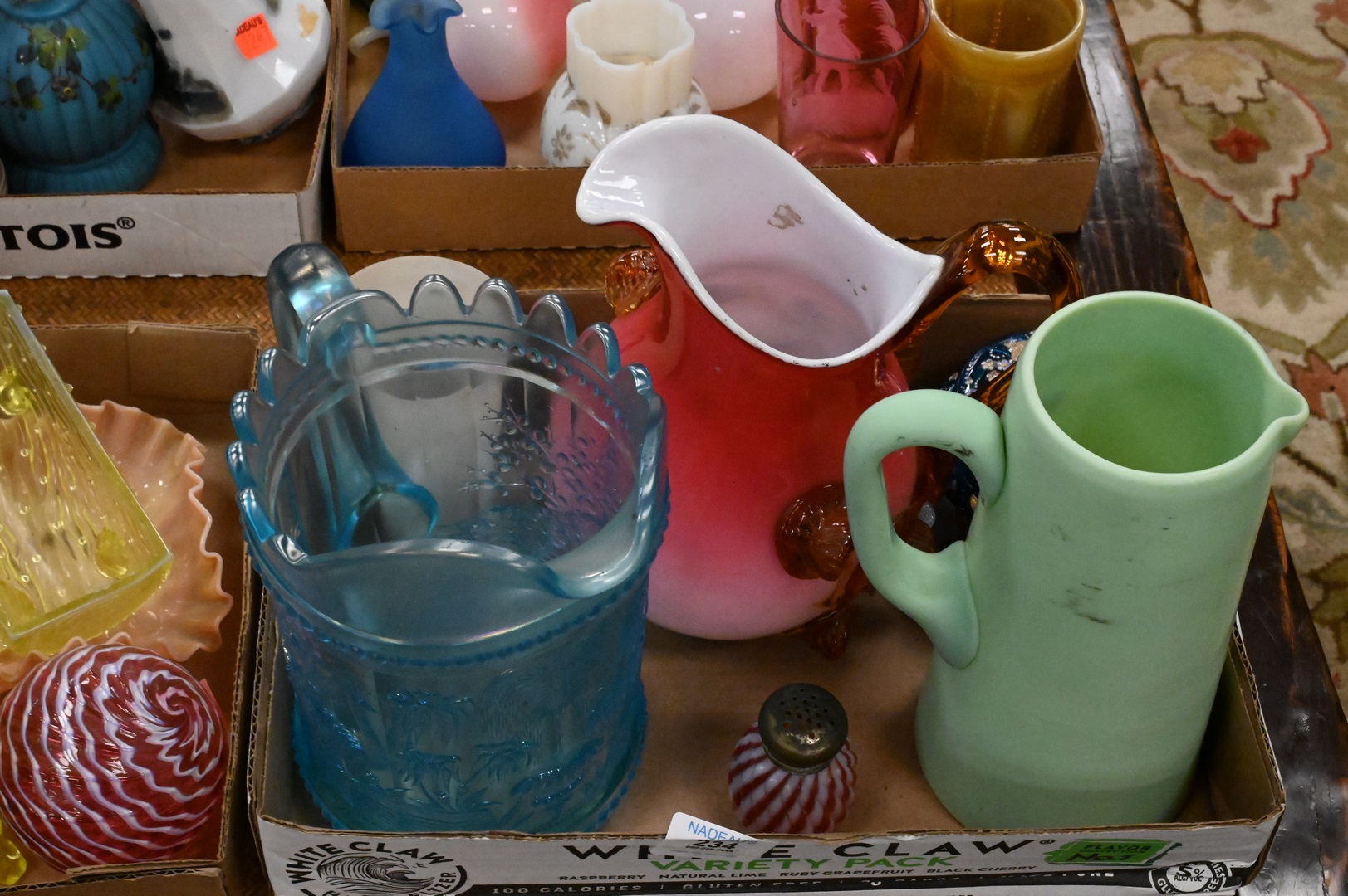 Four Boxes of Glass, to include Bristol, Northwood, Fenton, etc. Provenance: From the Estate of Elwyn W. Lemon, Enfield, Connecticut.