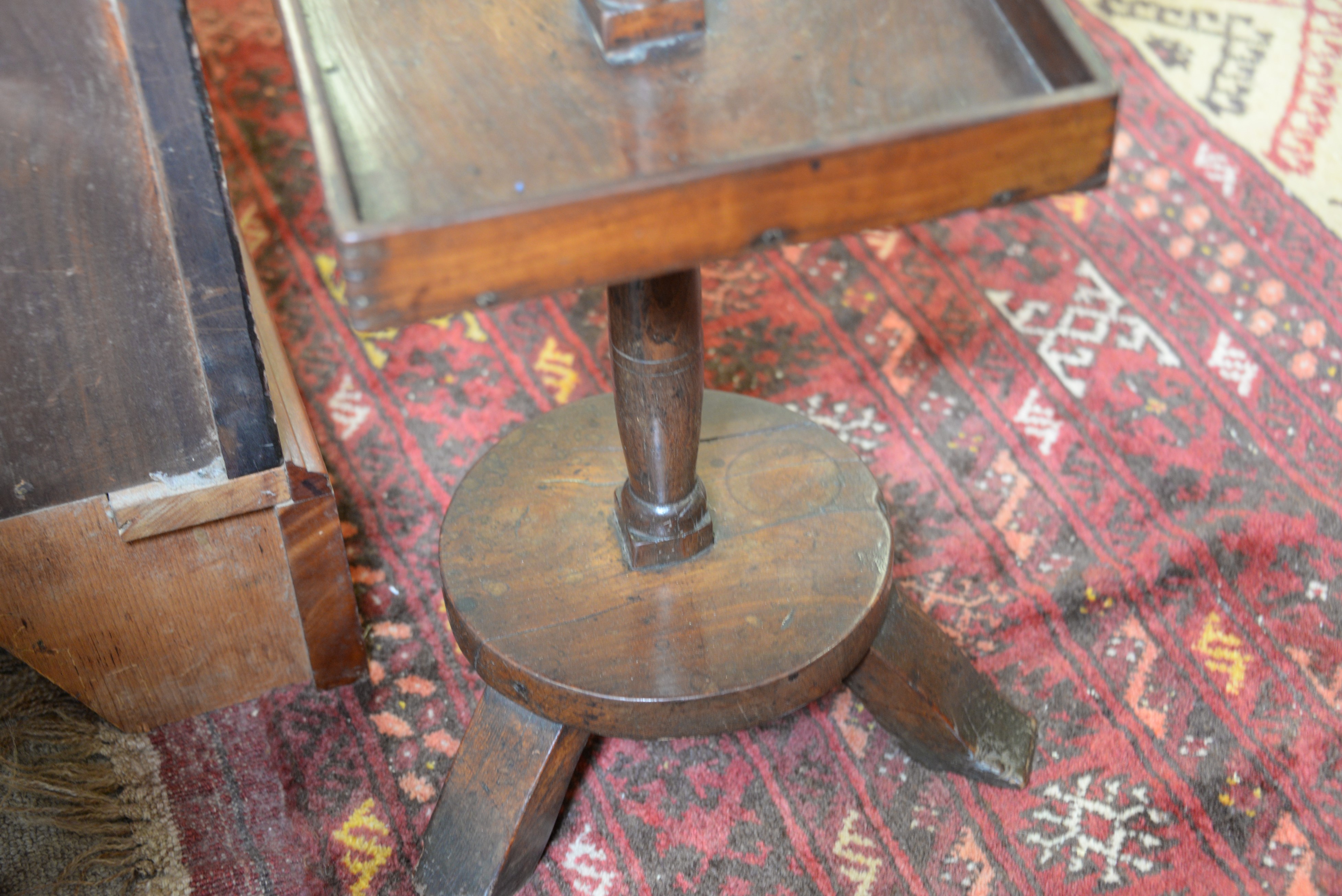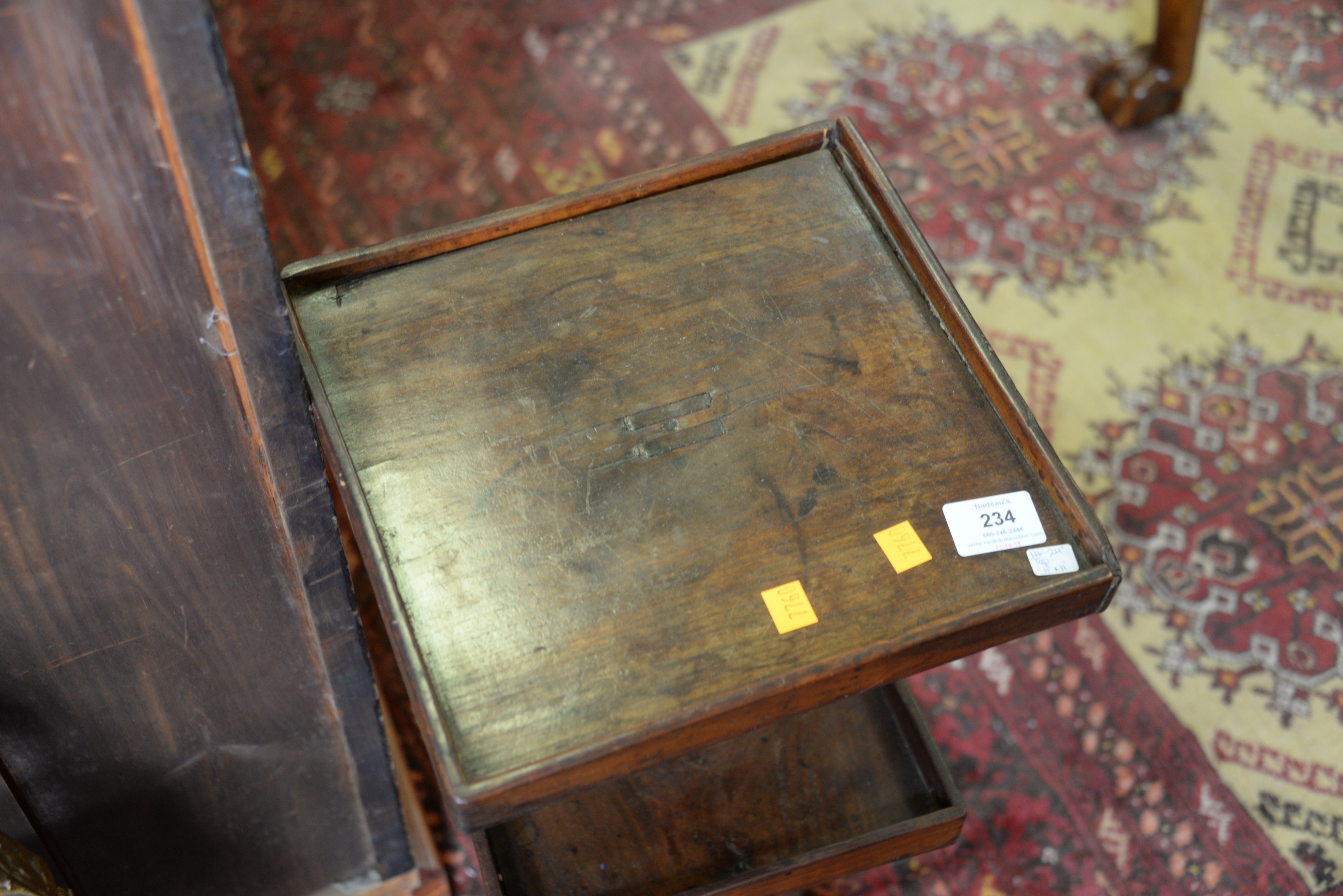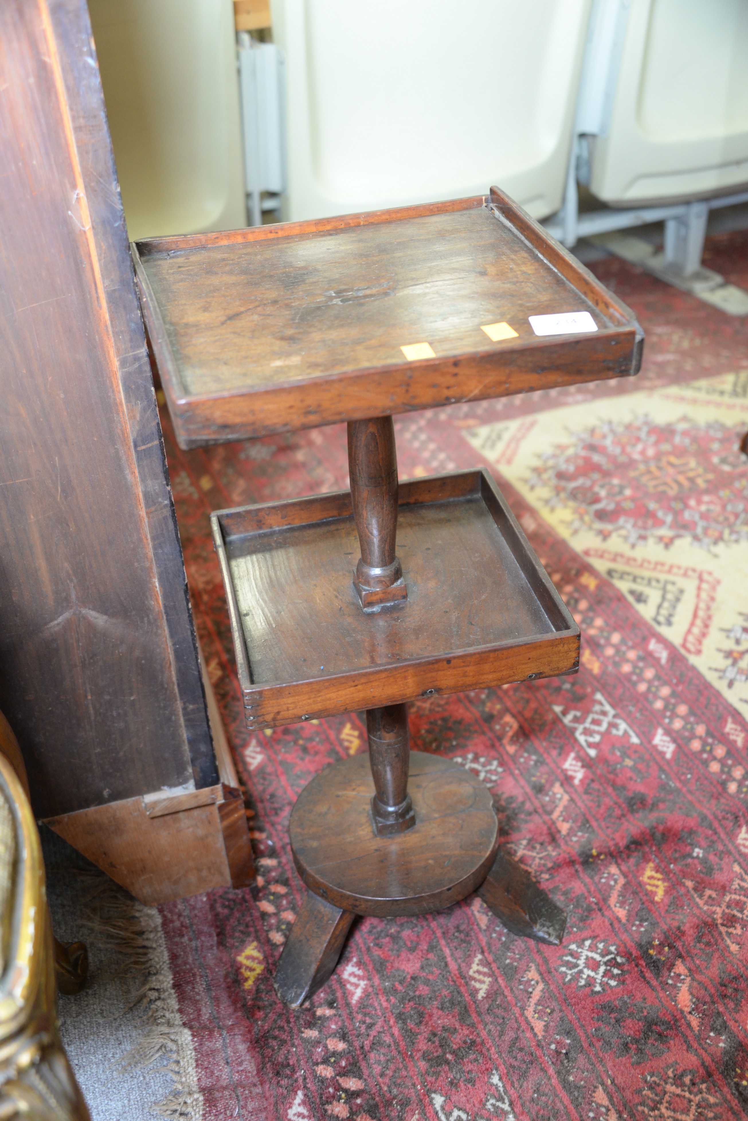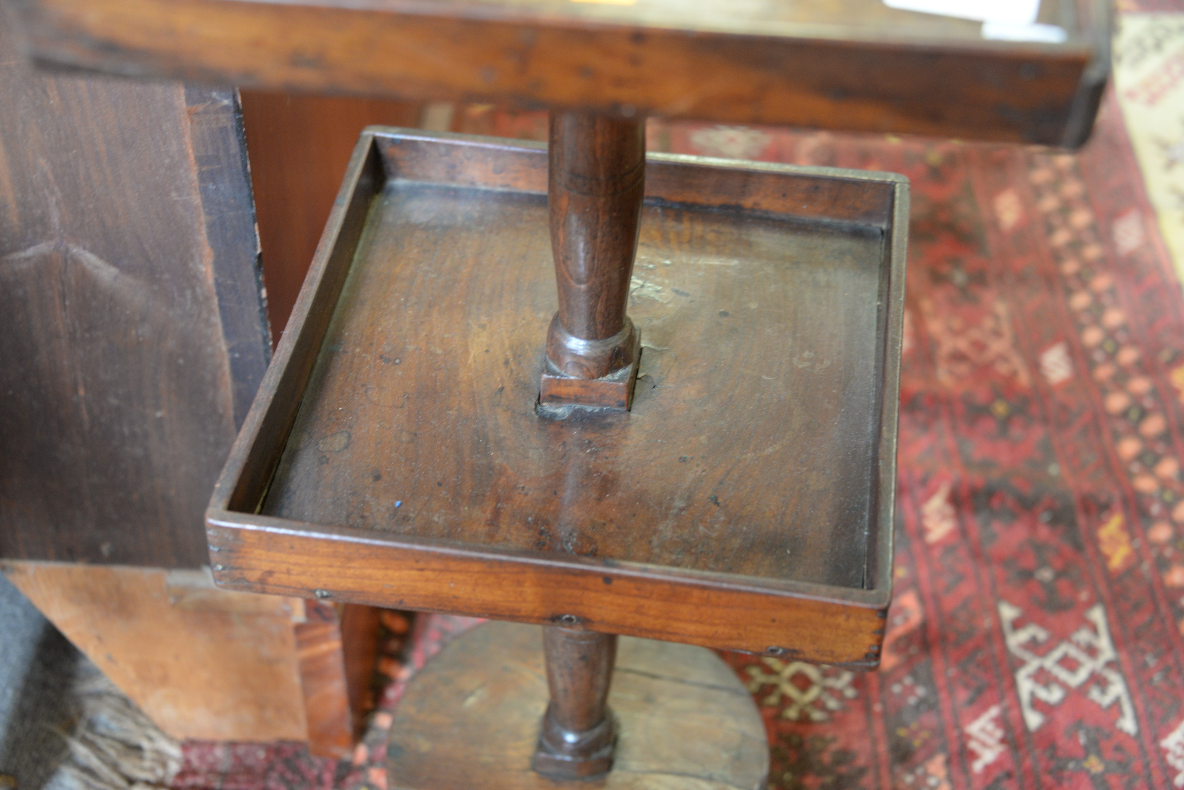 George II two tier stand and a lift top chest. stand: ht. 24 in. top: 11 x 11