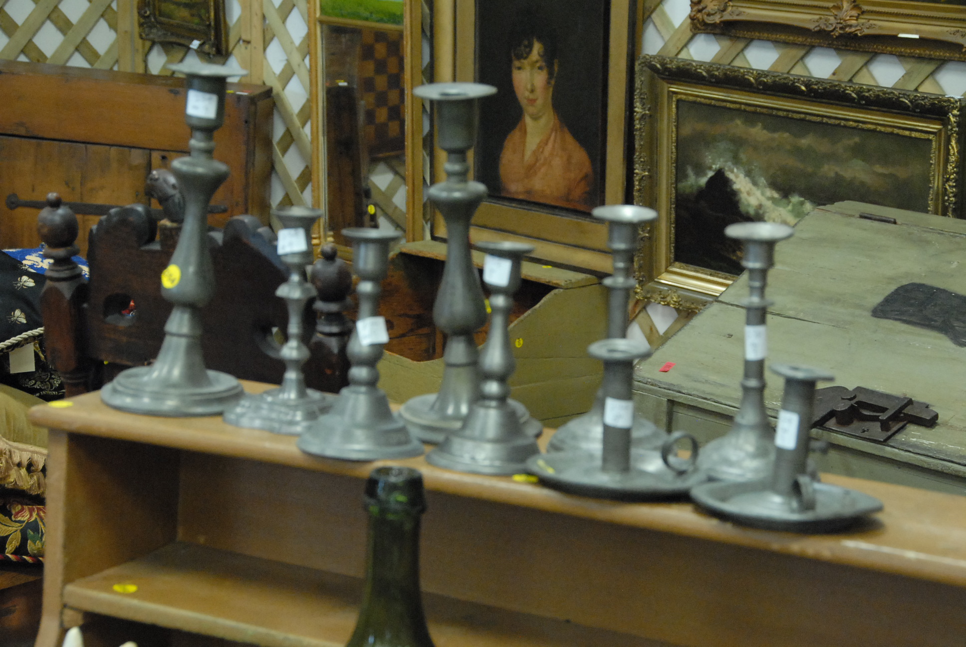 Group of nine pewter candlesticks