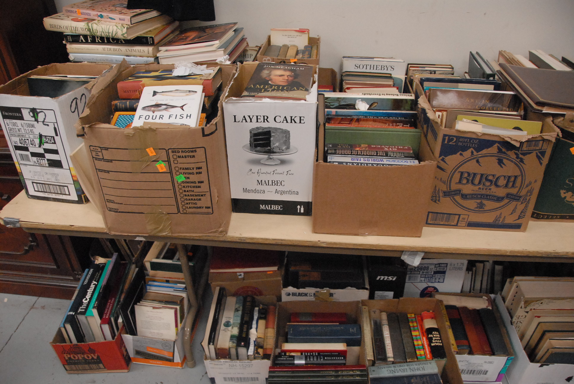 Large group of books, over forty boxes from an 8 million apartment in Manhattan.