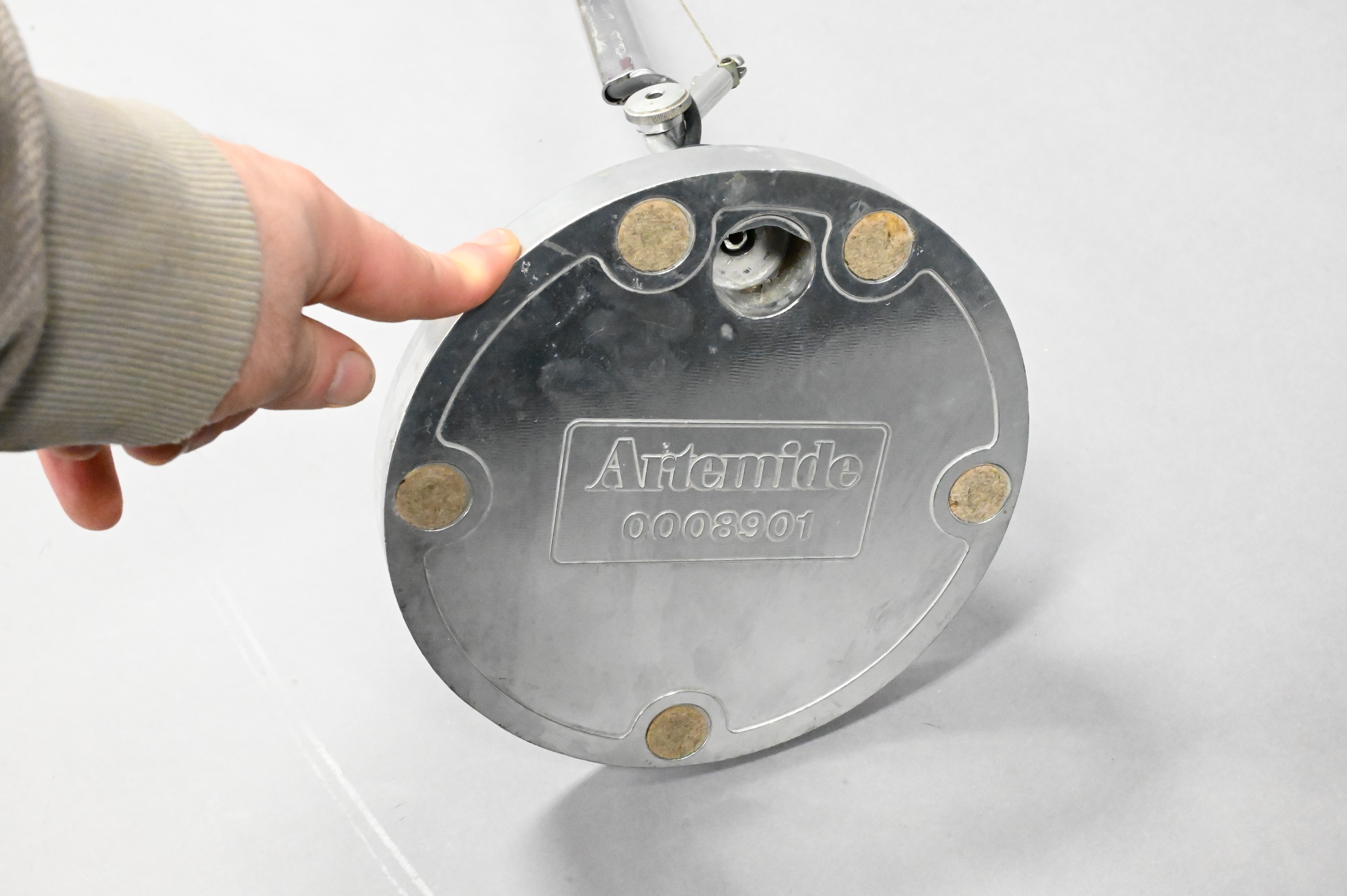 articulating adjustable lamp in chrome, marked Artemide, made in Italy