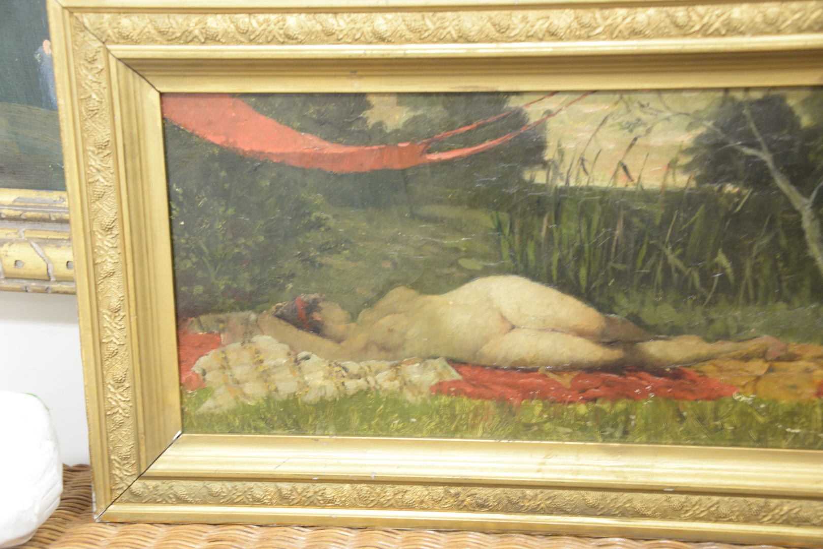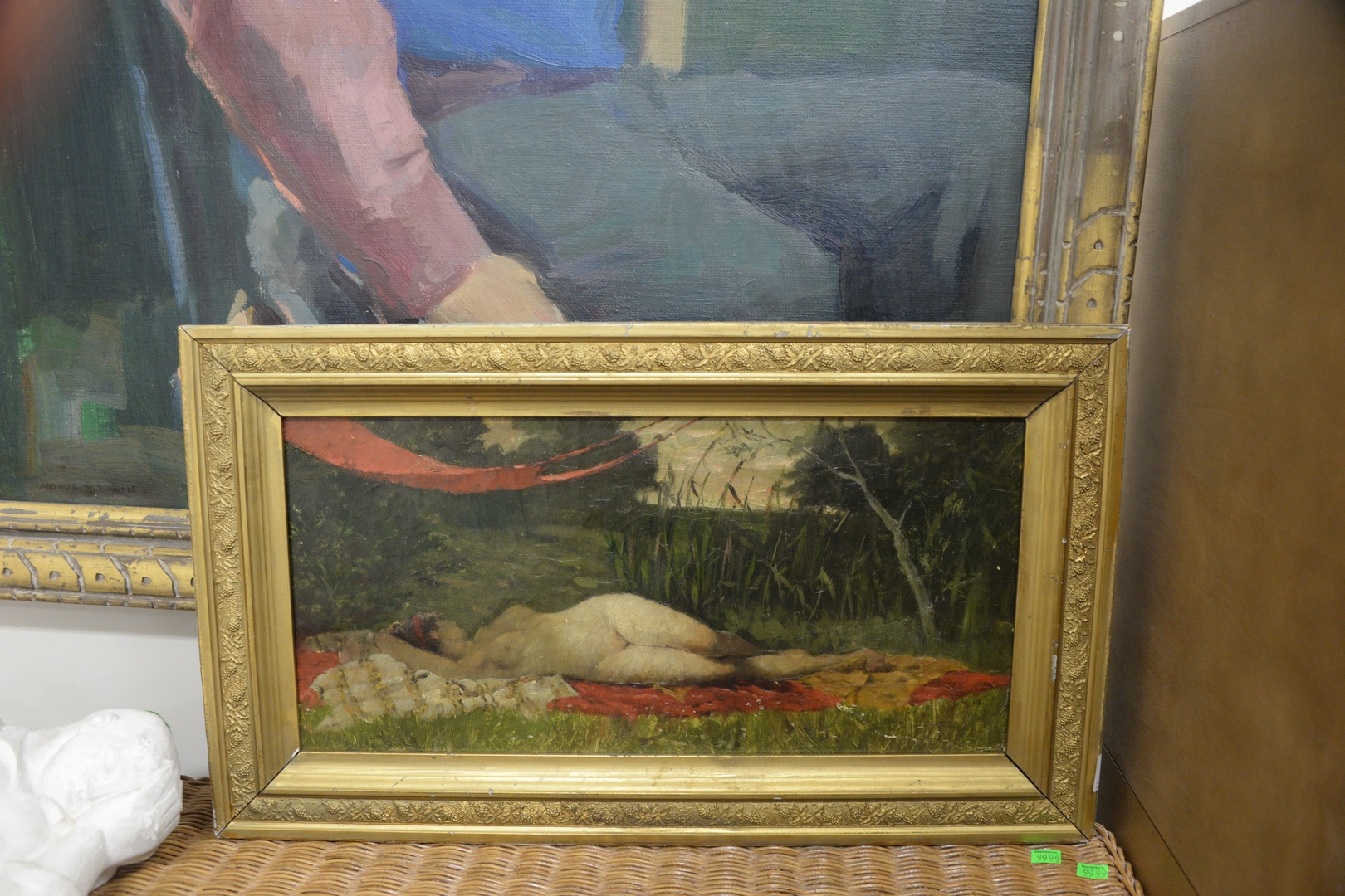 Lot 234: Max Ewe Rest oil on canvas signed and dated lower right illegibly height 10 inches, width 19 3/4 inches