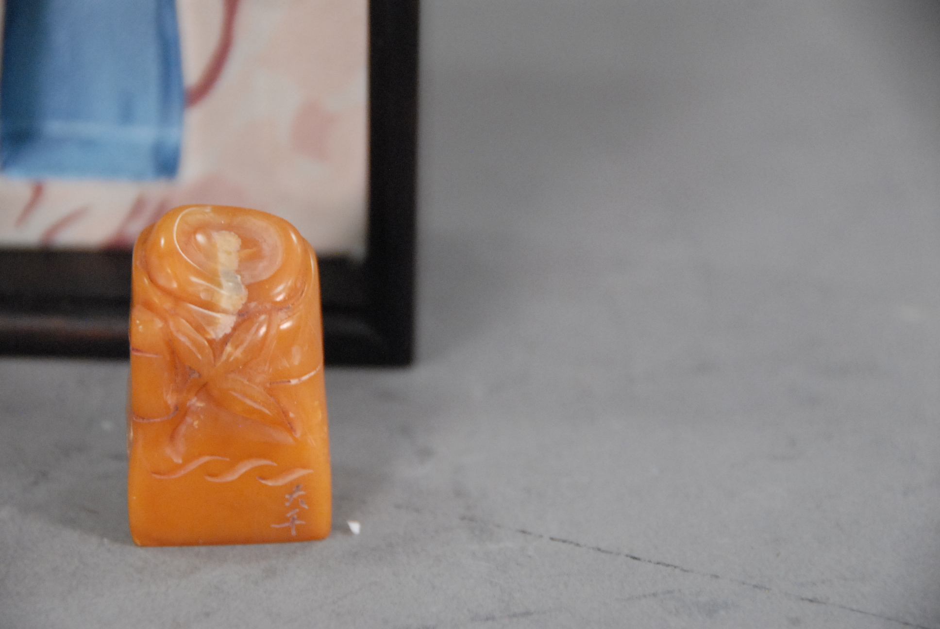 Lot 234: Pair of soapstone seals in a fitted zitan box.