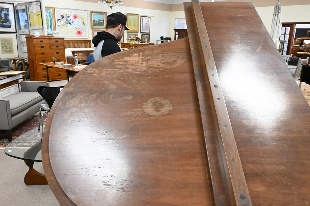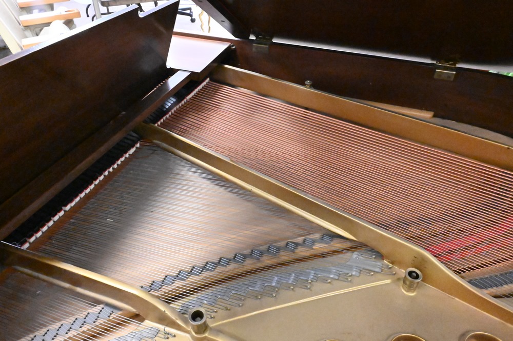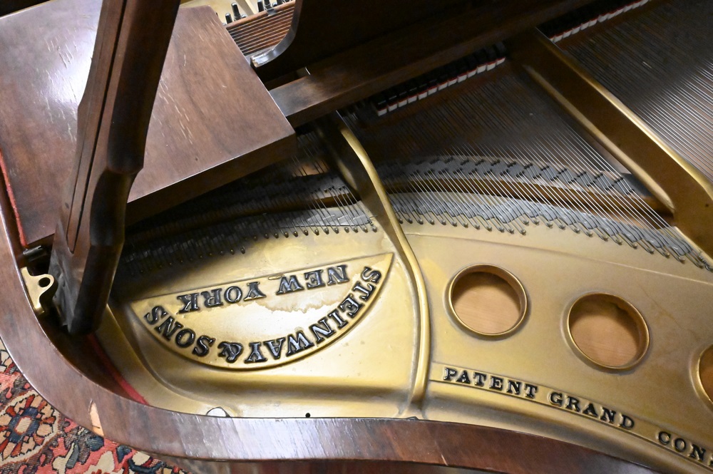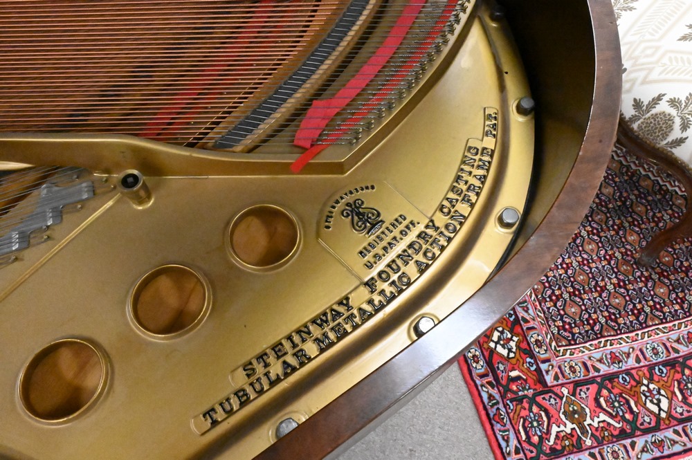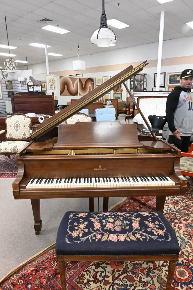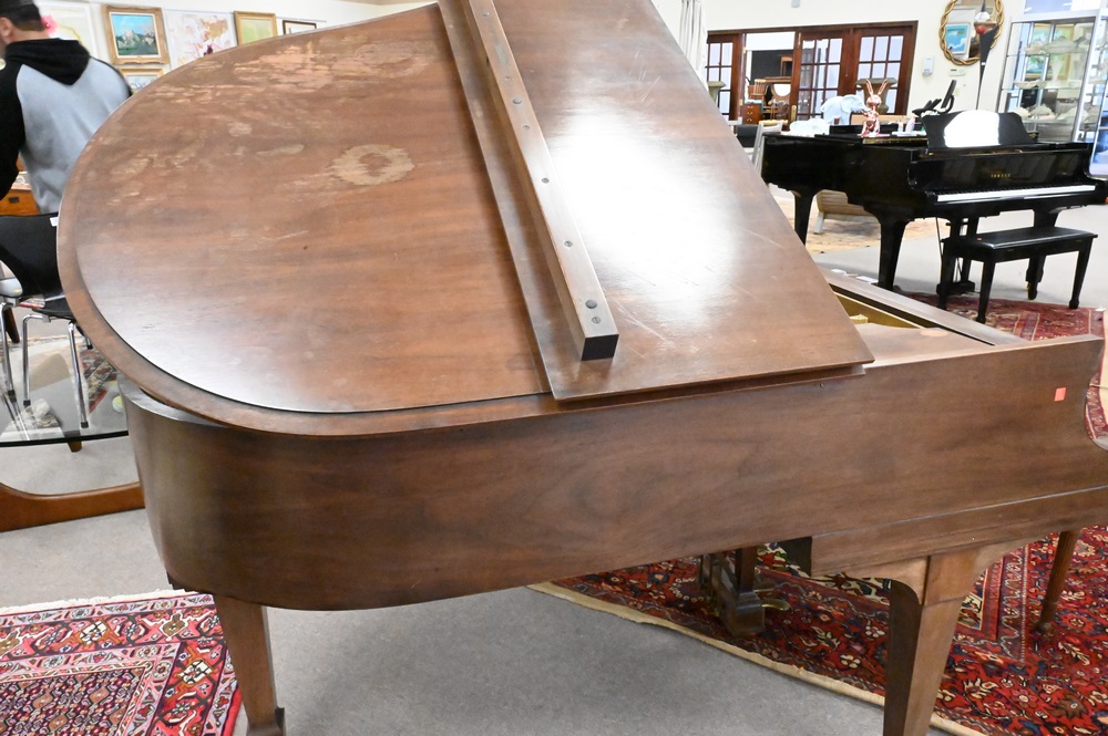 Lot 234: Steinway & Sons Mahogany Baby Grand Piano, number 277613, along with French style bench, (veneer chips, front edge and top with water stain), length 66 inches.