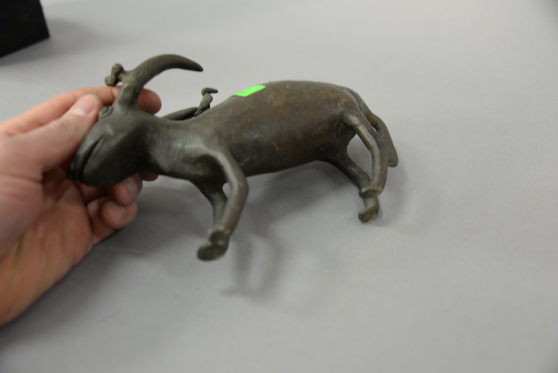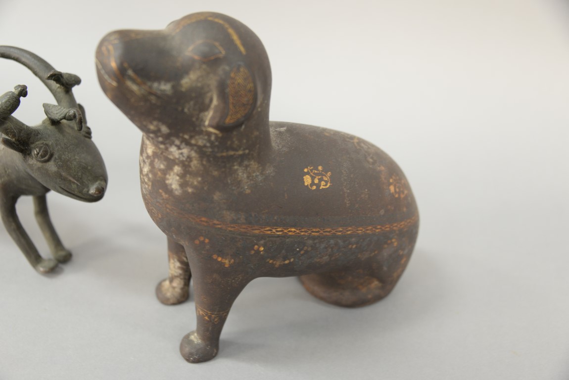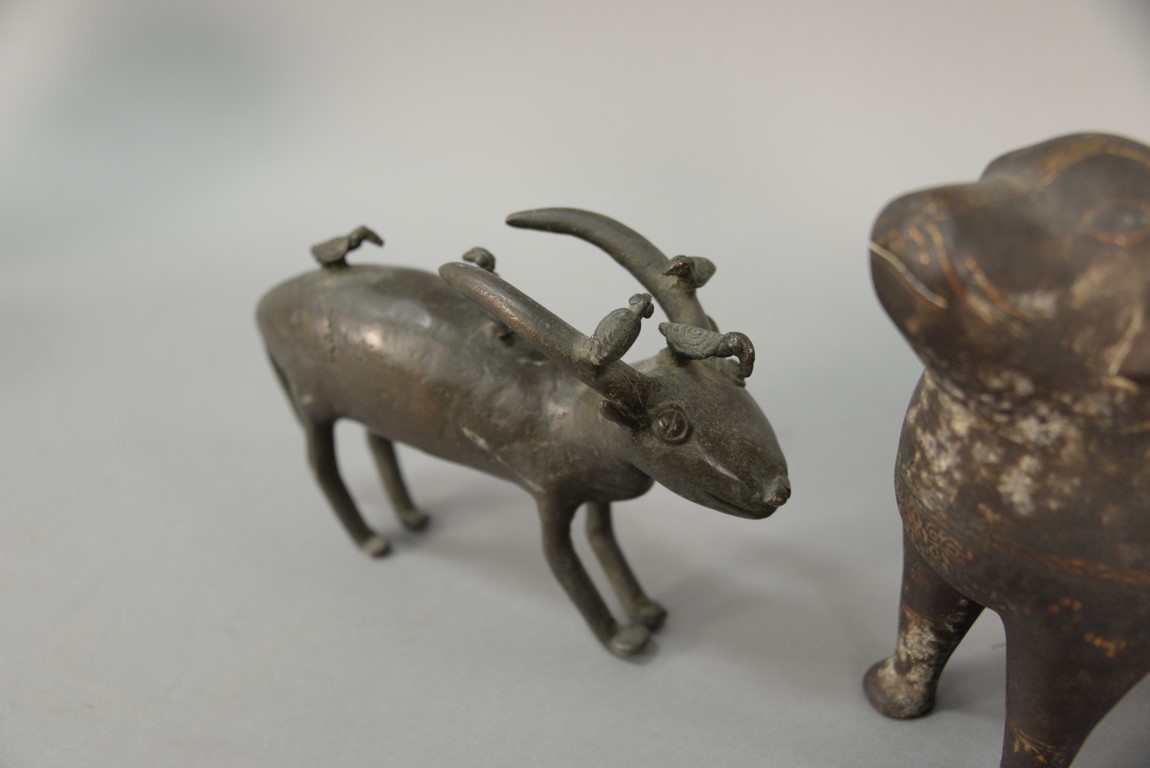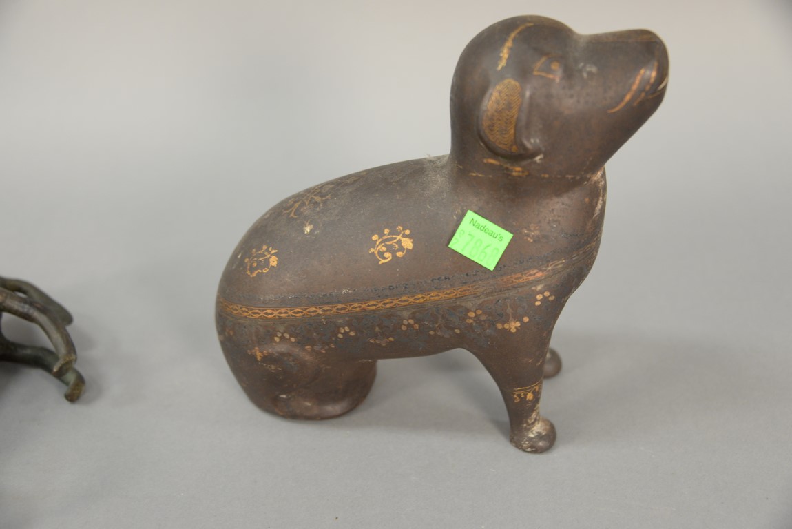 Two piece lot, possibly antiquities, multi-metal inlaid metal animal and bronze animal.