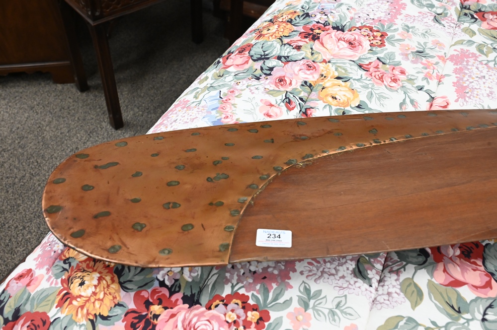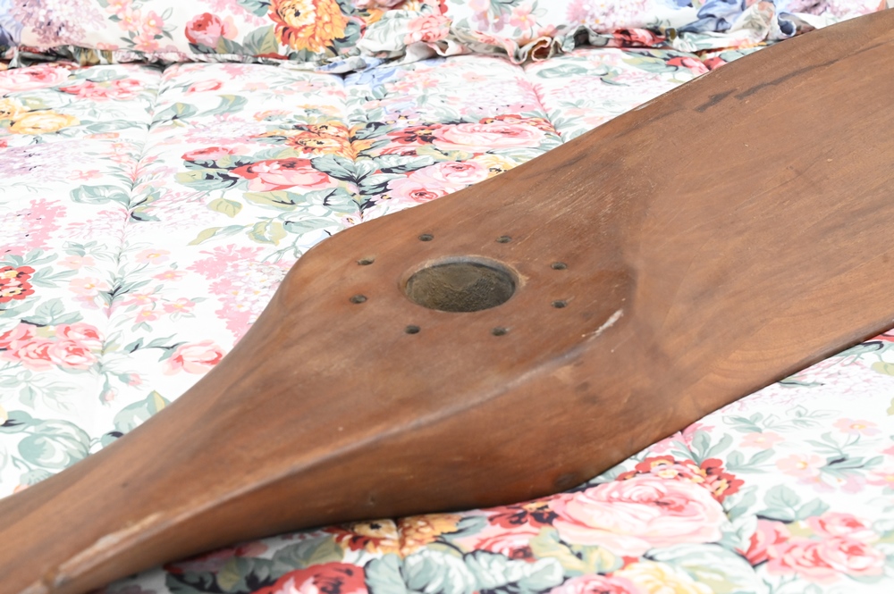 Vintage Mahogany Airplane Propeller, having copper ends, length 96 inches.