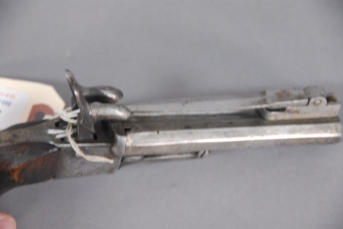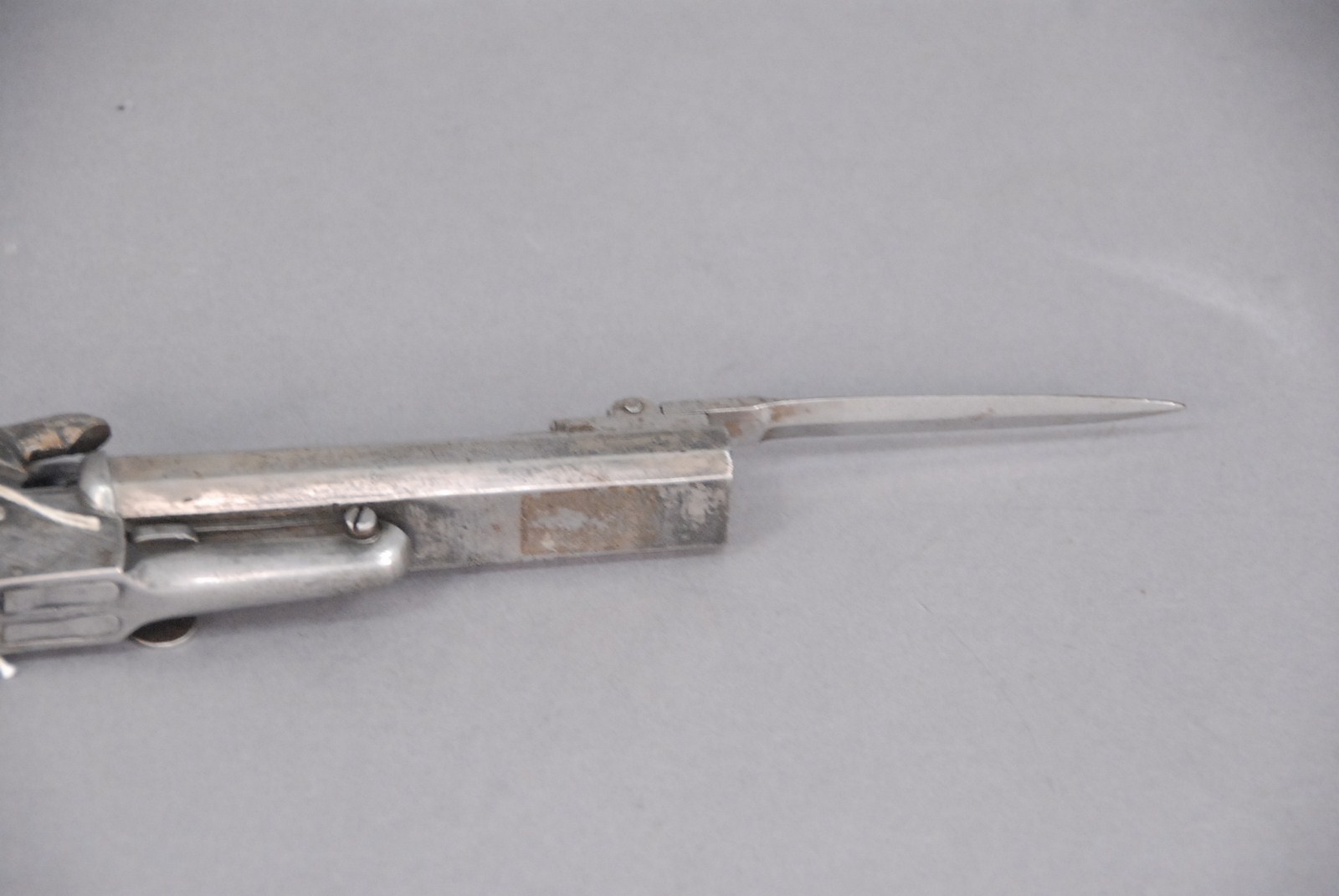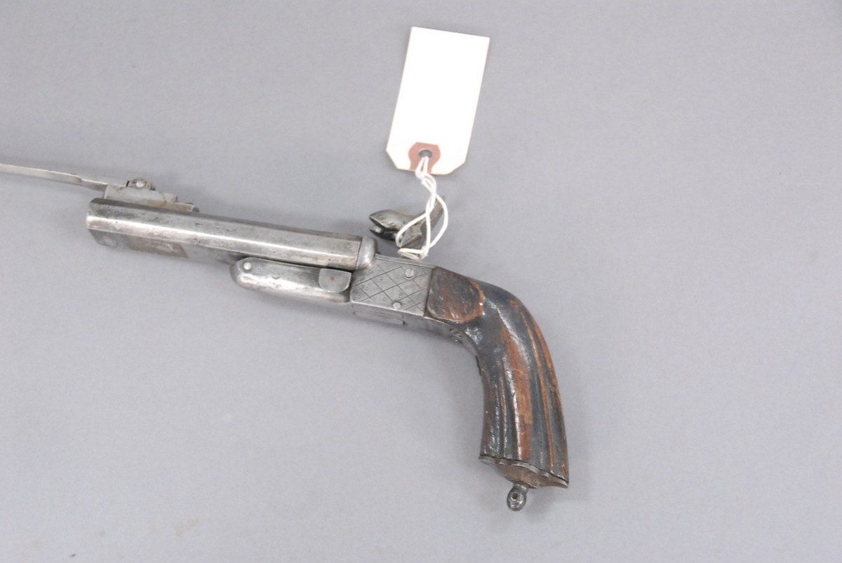 Belgian Double Barrel pin fire percussion pistol with folding bayonet.