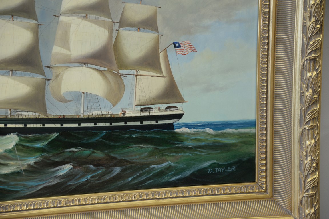 D. Tayler 1968, oil on canvas, American Sailing Ship, signed lower right: D. Tayler, 24 x 36. Property from Credit Suisse’s Americana Collection