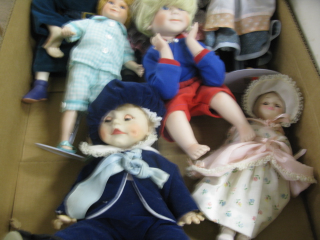 Four box lots of various dolls, composition head and mostly reproduction dolls.