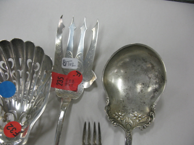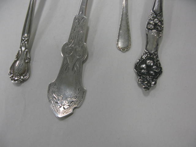 Four sterling silver pieces forks and spoons along with three crystal pieces with silver tops