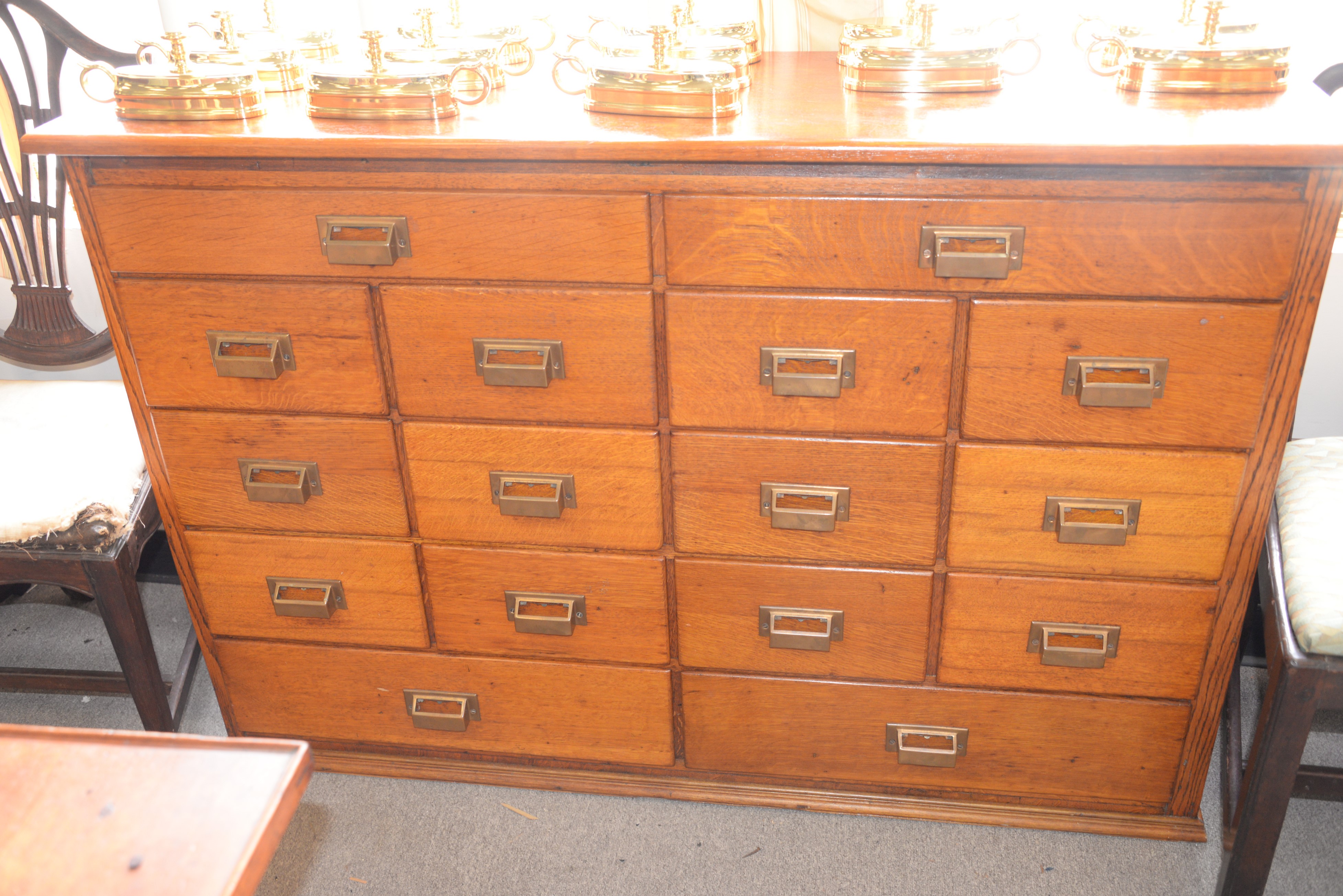 Oak apothecary cabinet. ht. 34 1/2 in. wd. 51 in. dp. 14 in.