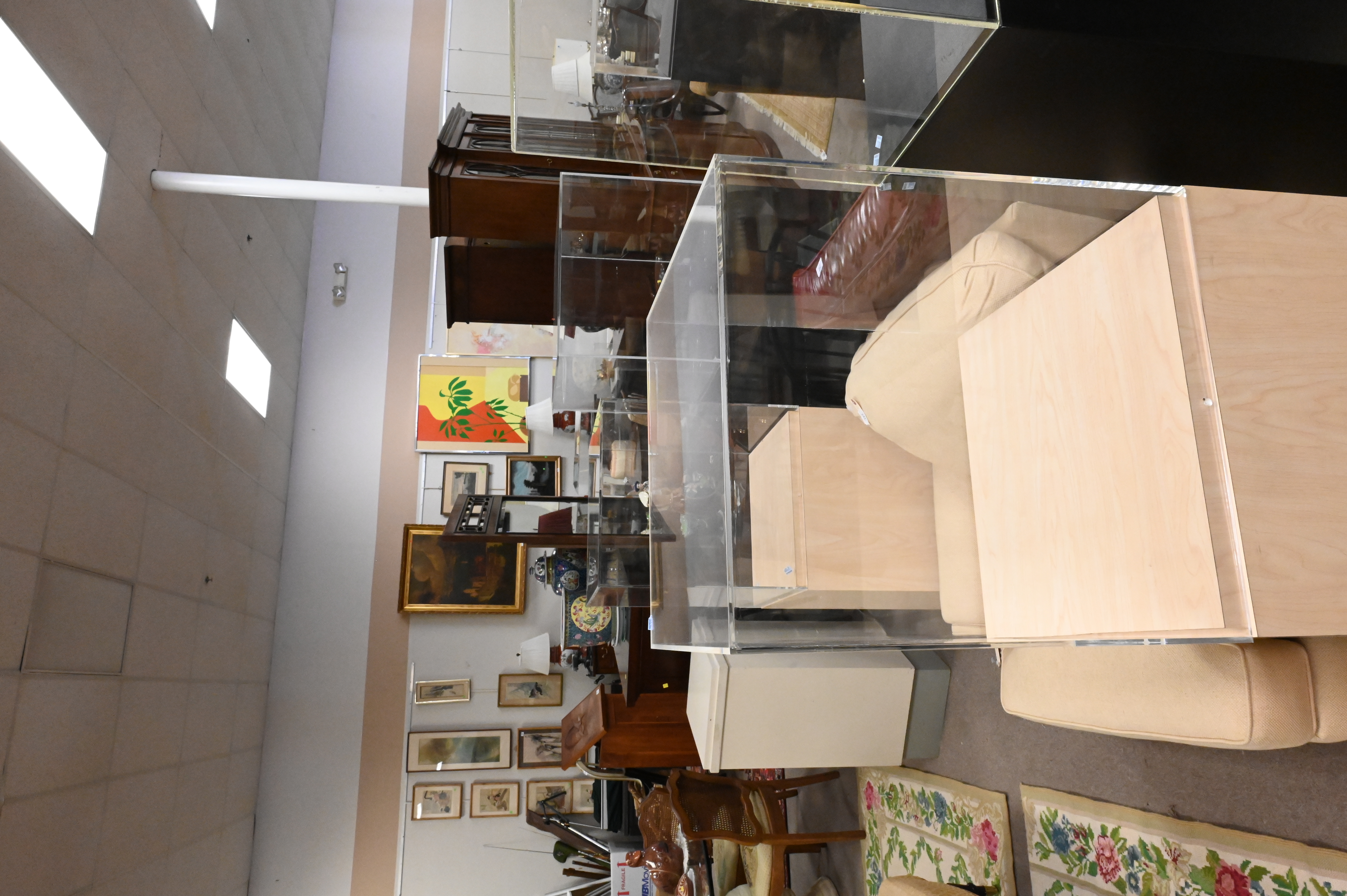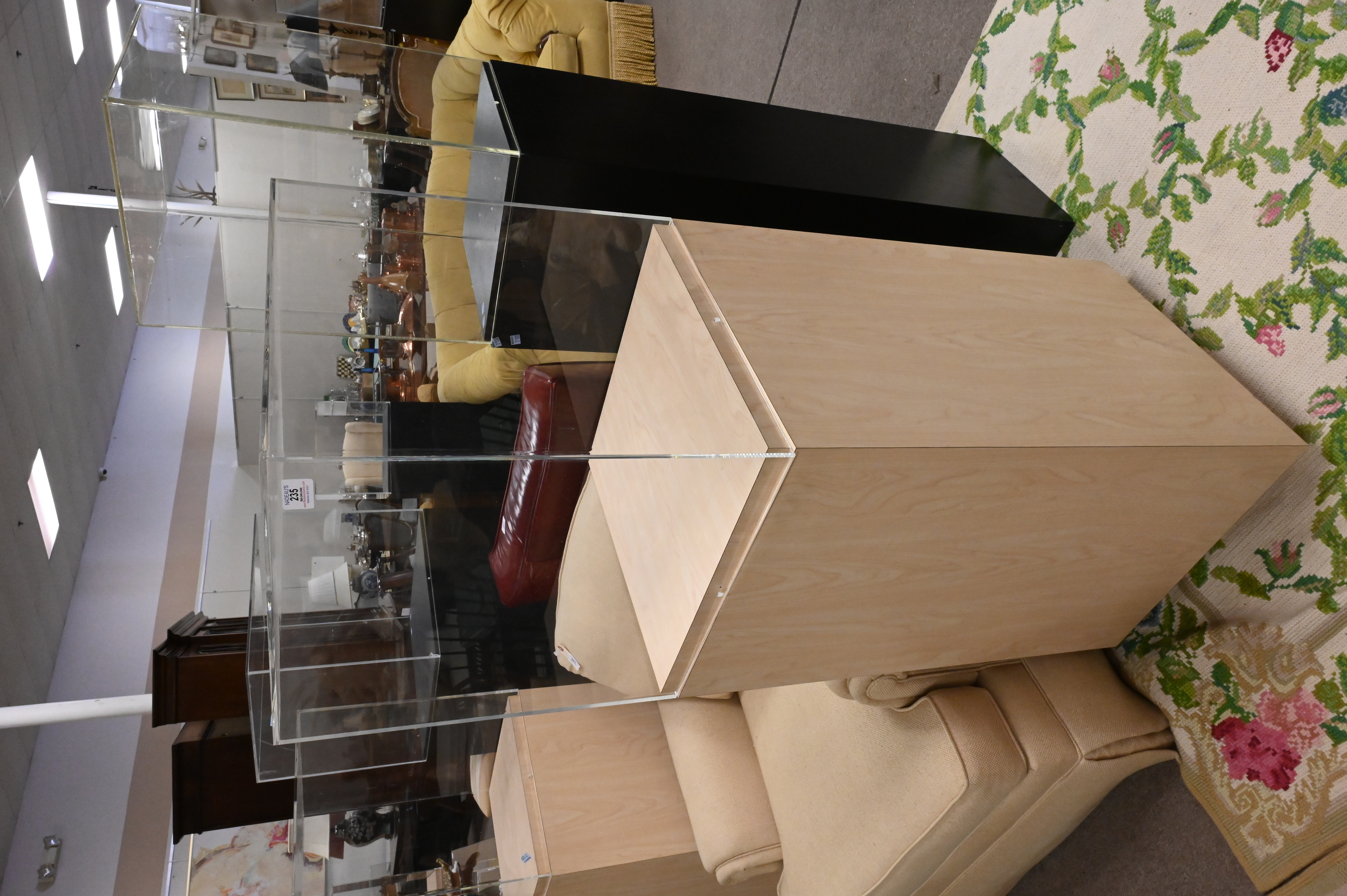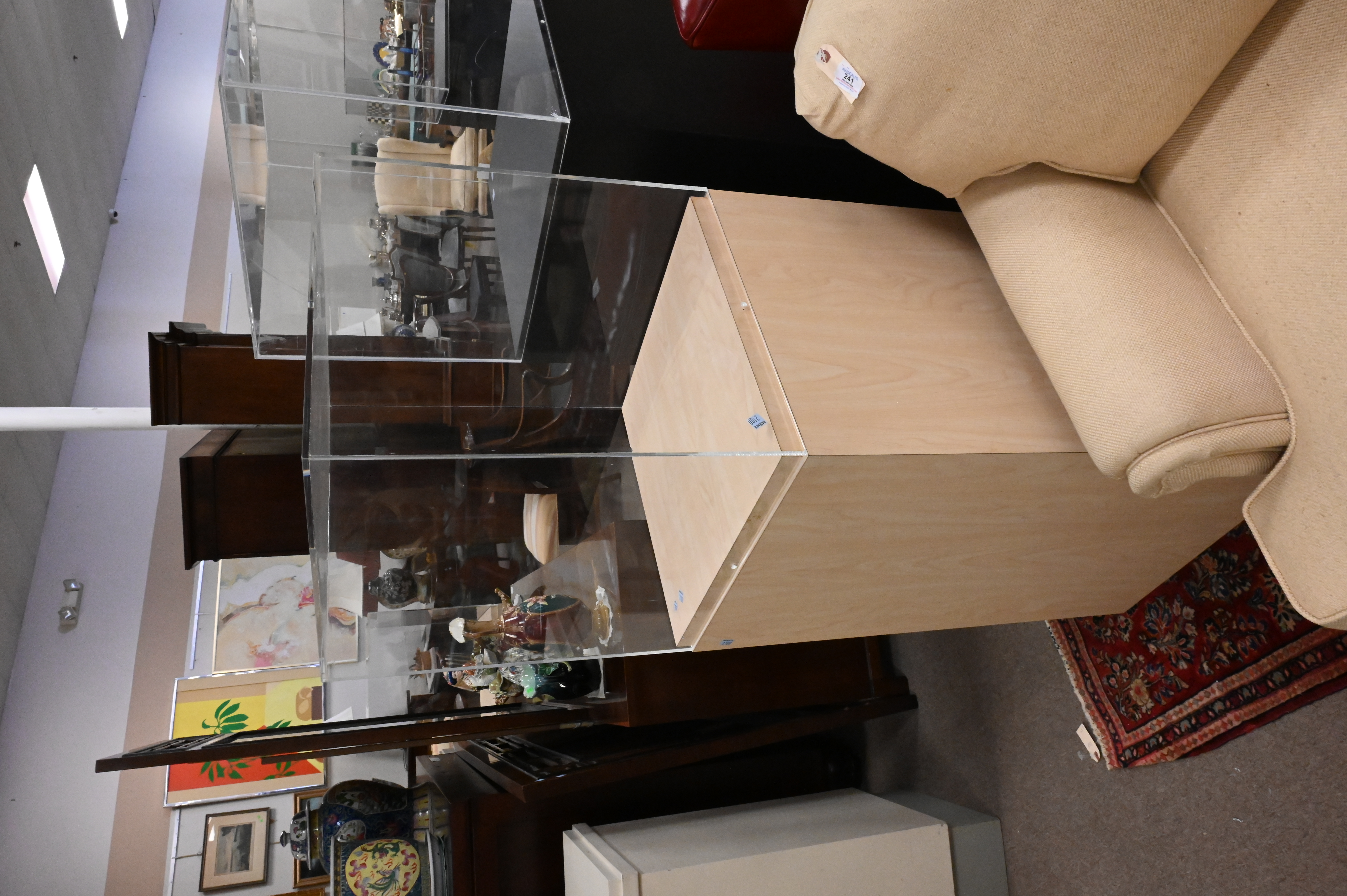 Pair of Pedestals with Plexi Glass Tops, height 36 inches, height with tops 58 inches, top measures 17 3/4″ x 17 3/4″