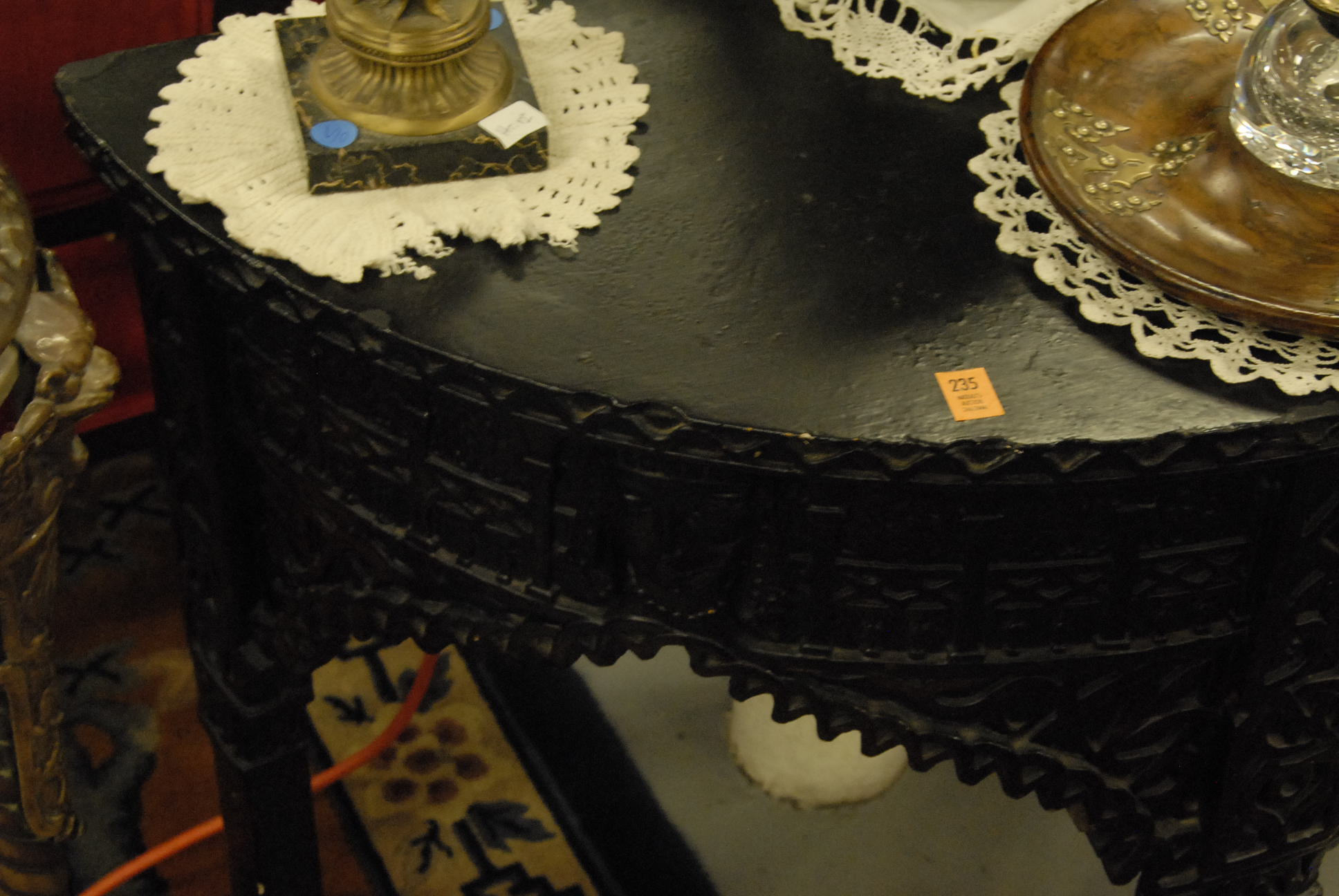 Lot 235: Reproduction decorative Jacobean half round table