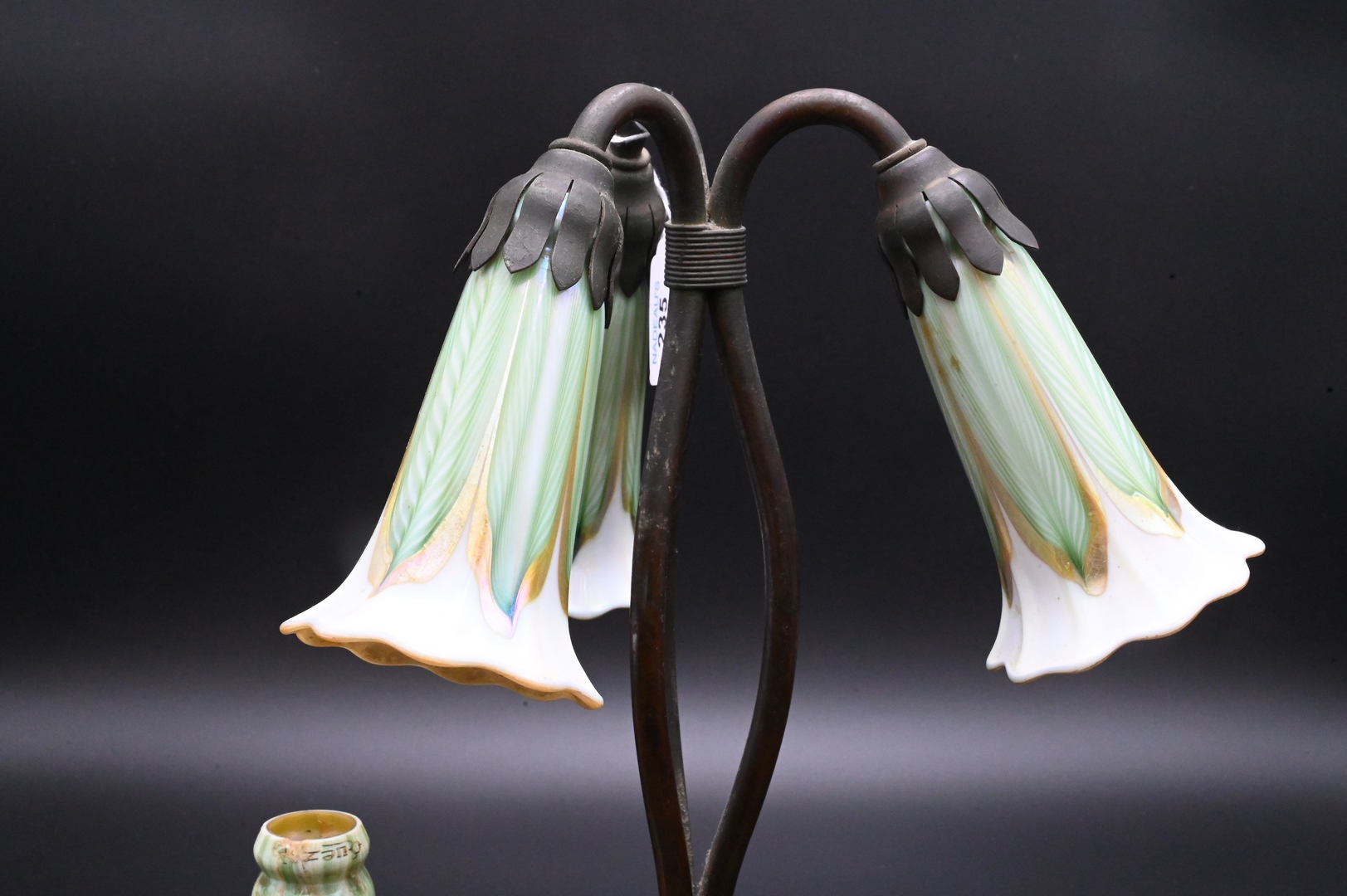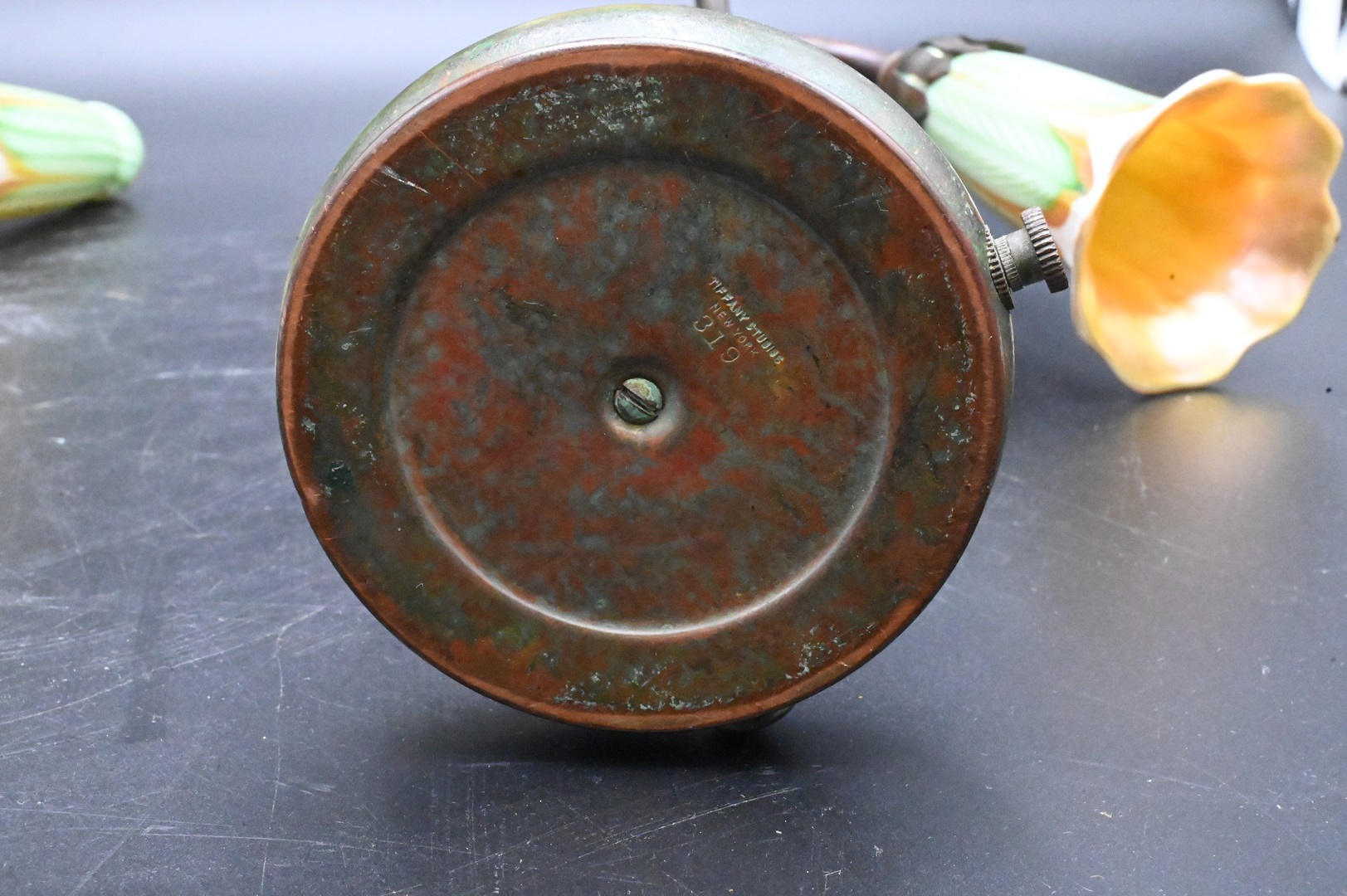 Lot 235: Tiffany Studios Bronze Three Light Lily Desk Lamp