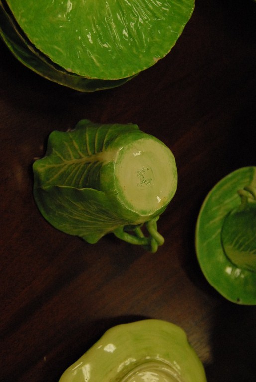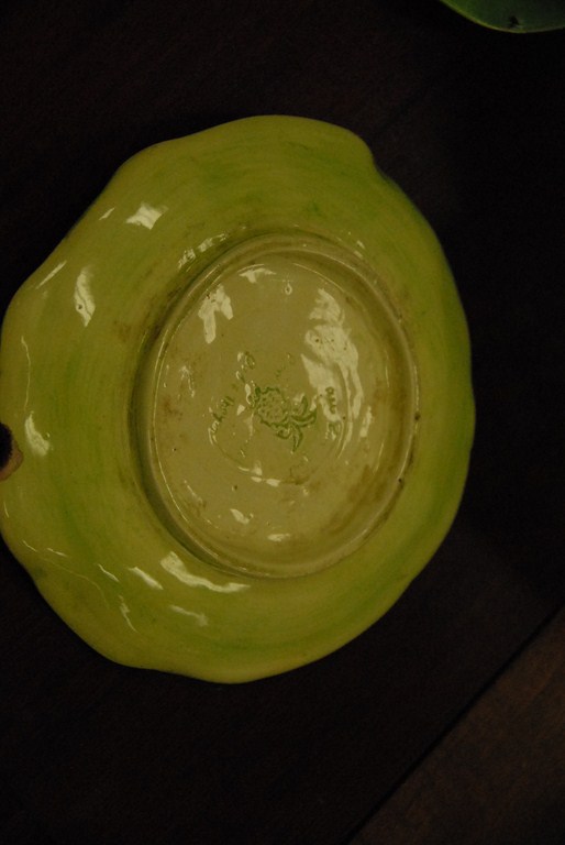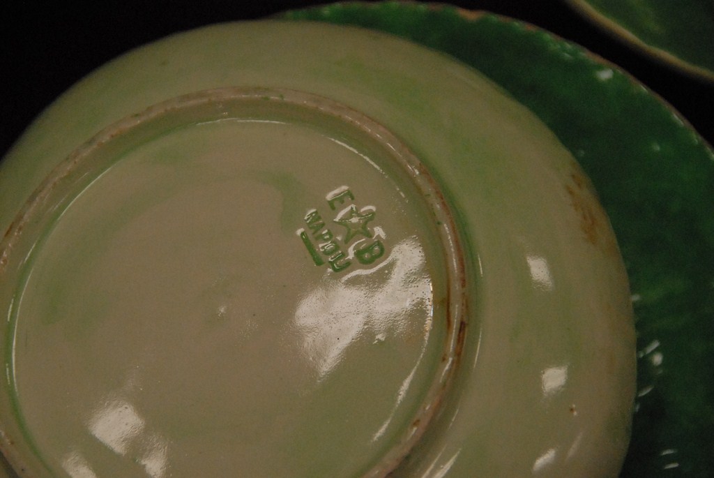 Twenty-piece lot of lettuce style majolica, twelve pieces are signed Dodie Thayer Palm Beach some lot damage.