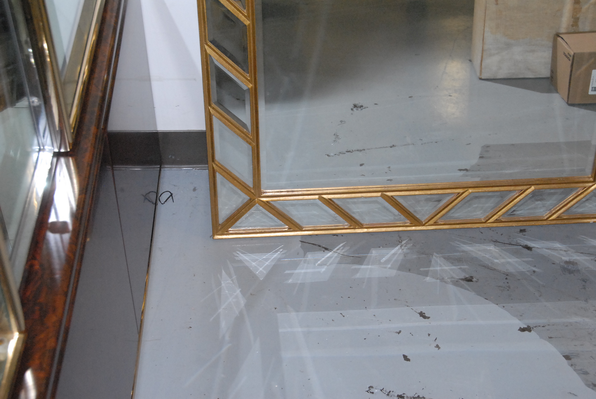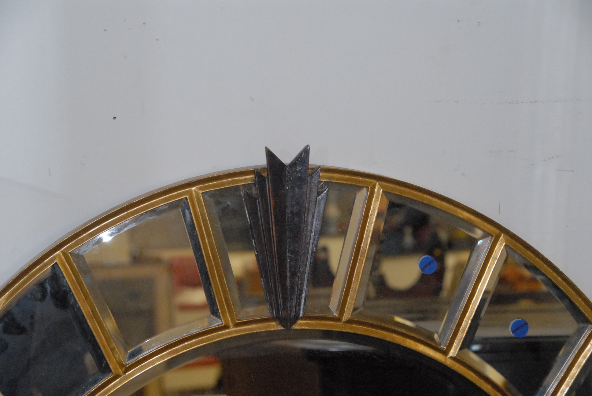 Attributed to karl Springer mirror with rounded top and beveled mirror.