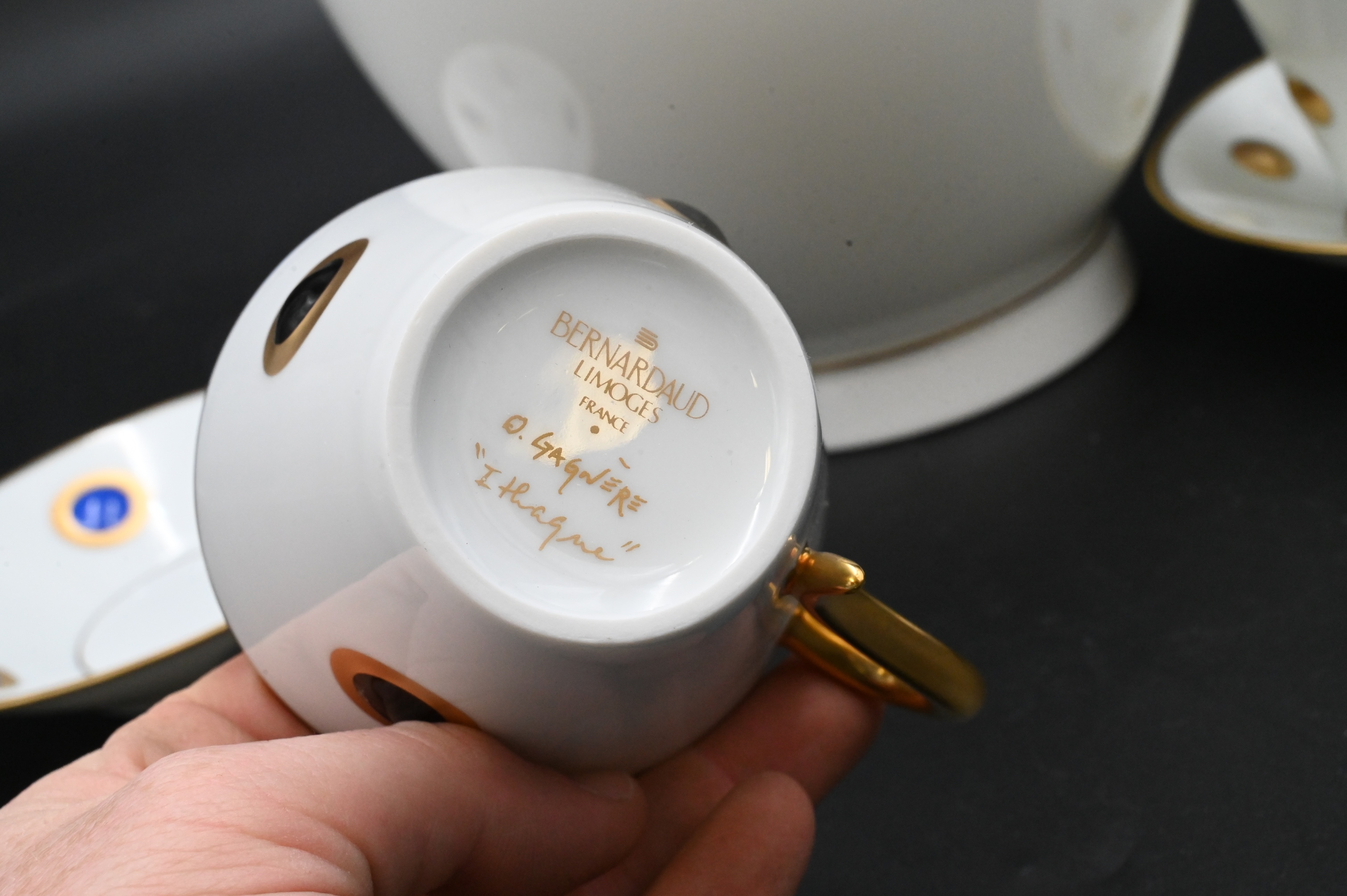 25 Piece Bernardaud Limoges France “Ithaque” Cups and Saucer Set