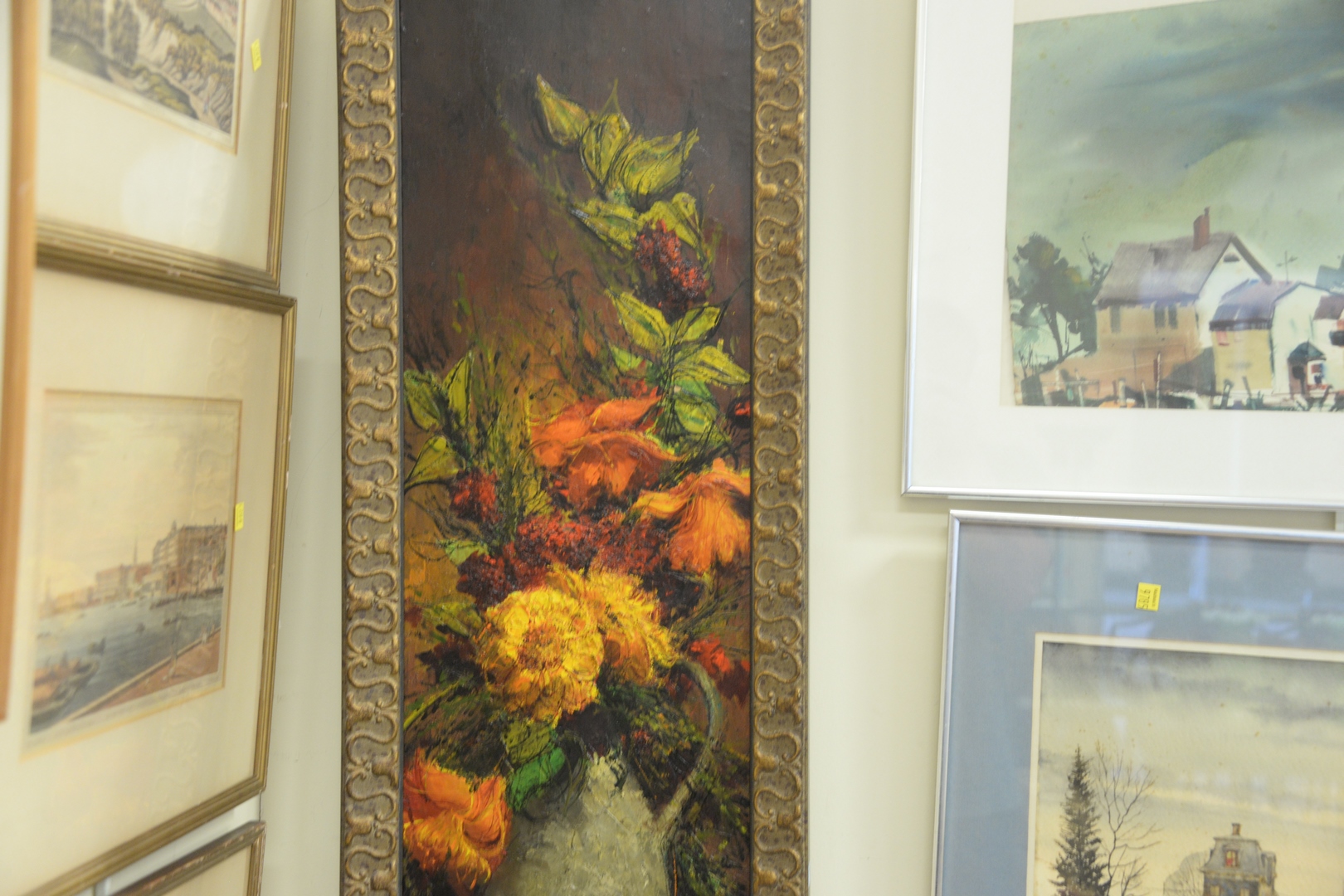 Lot 236: Daniel Barry (American, 20th century), “Bouquet”, oil on canvas, signed lower right “Daniel Barry”, titled on the stretcher bar, 48″ x 12″.