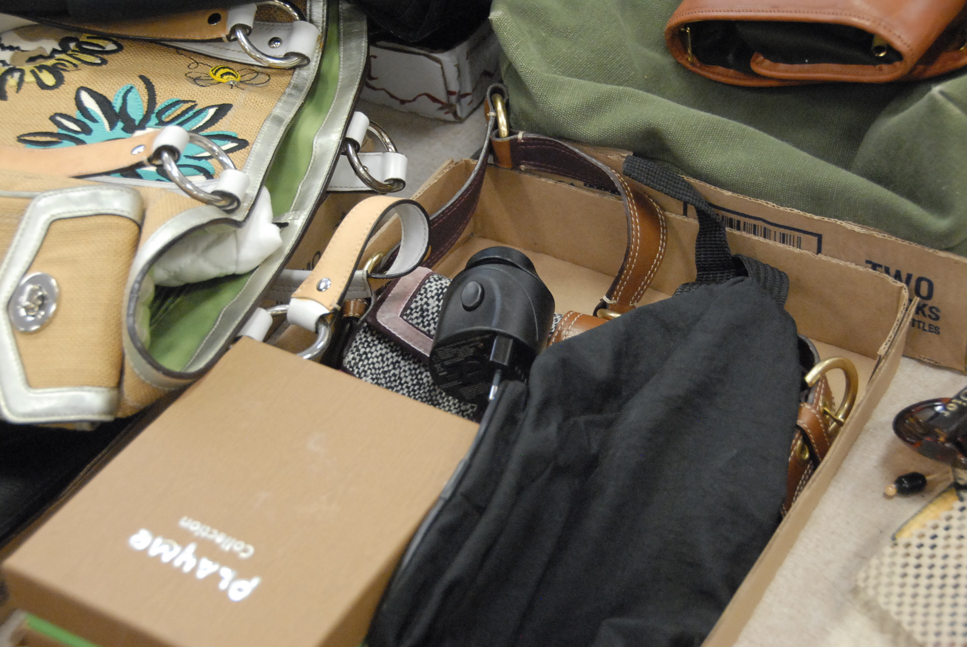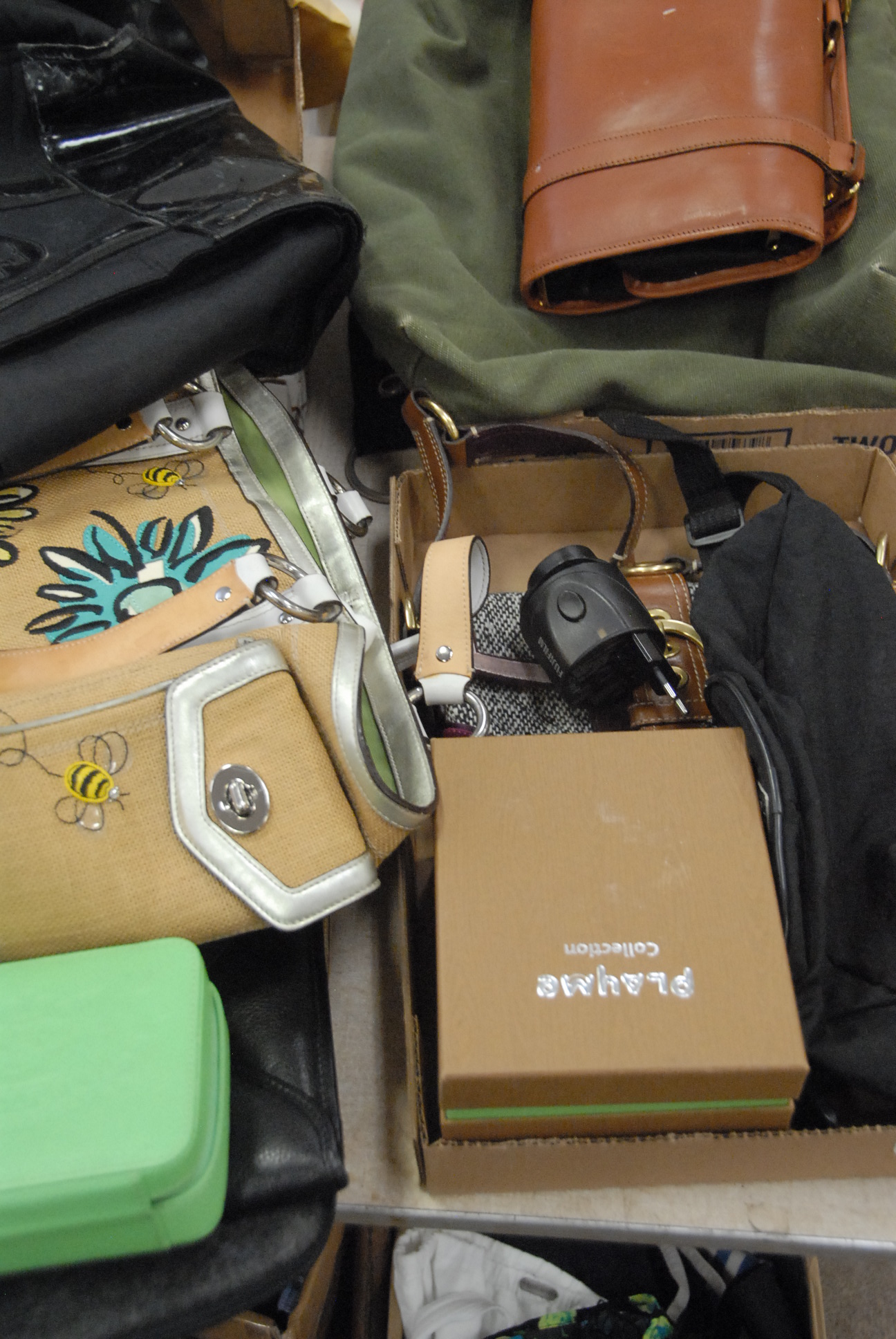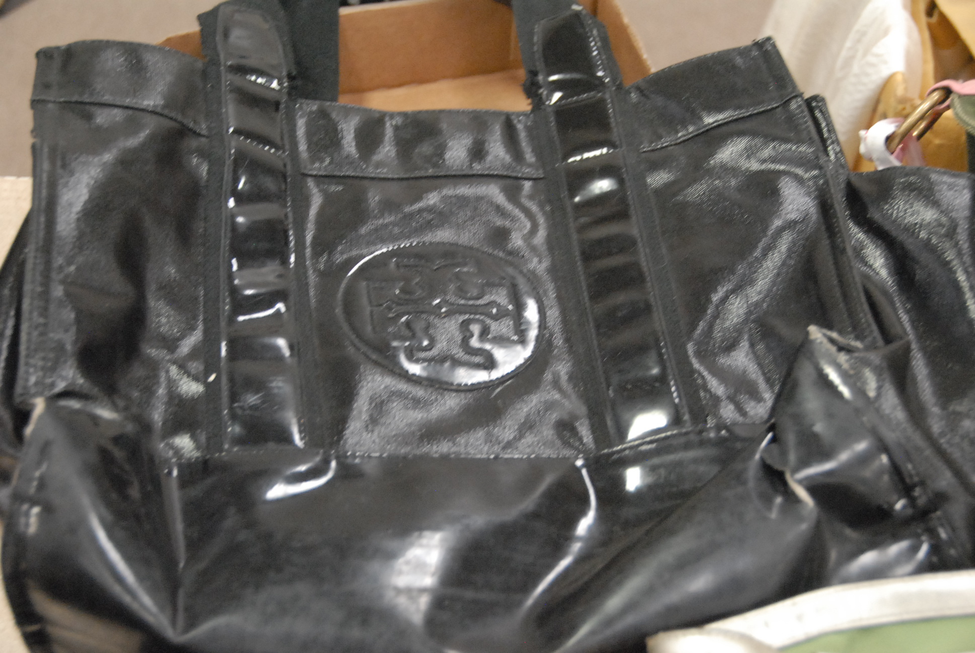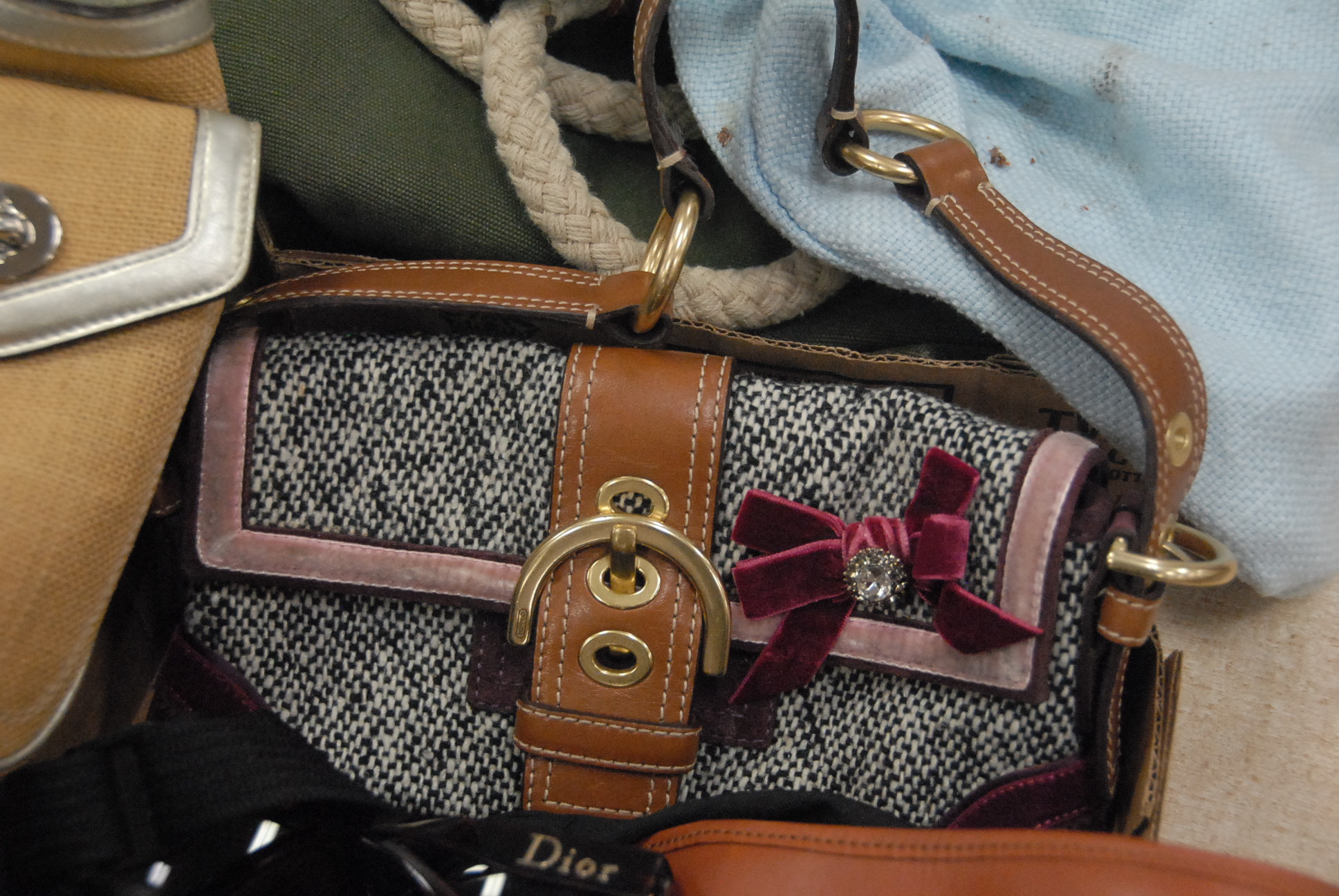 Four boxes of handbags and purses to include two Coach, Juicy Couture, etc.
