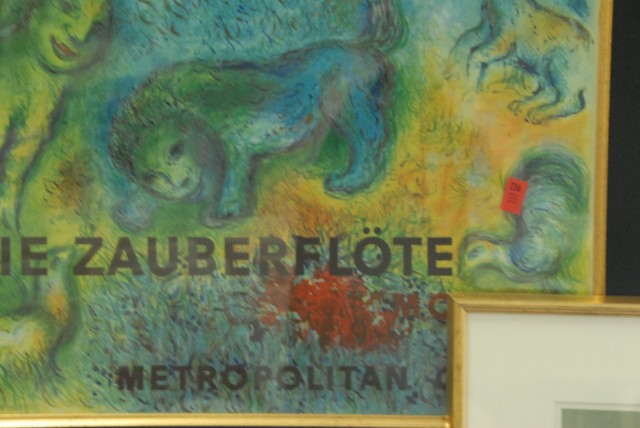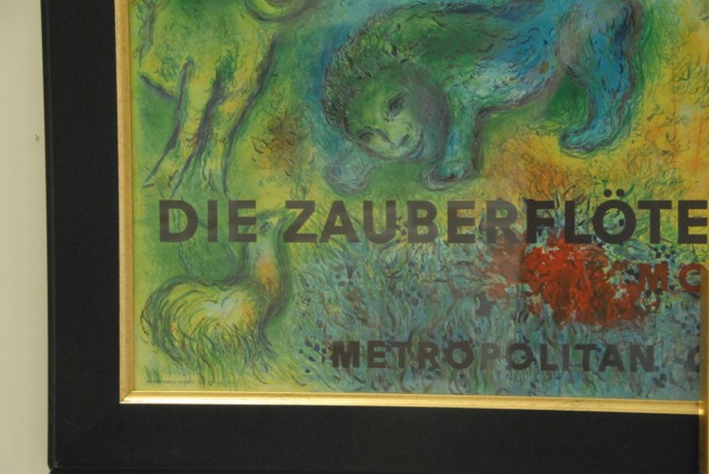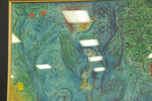 Framed French Chagall poster and Richard Glockner print, signed Paris 1973.