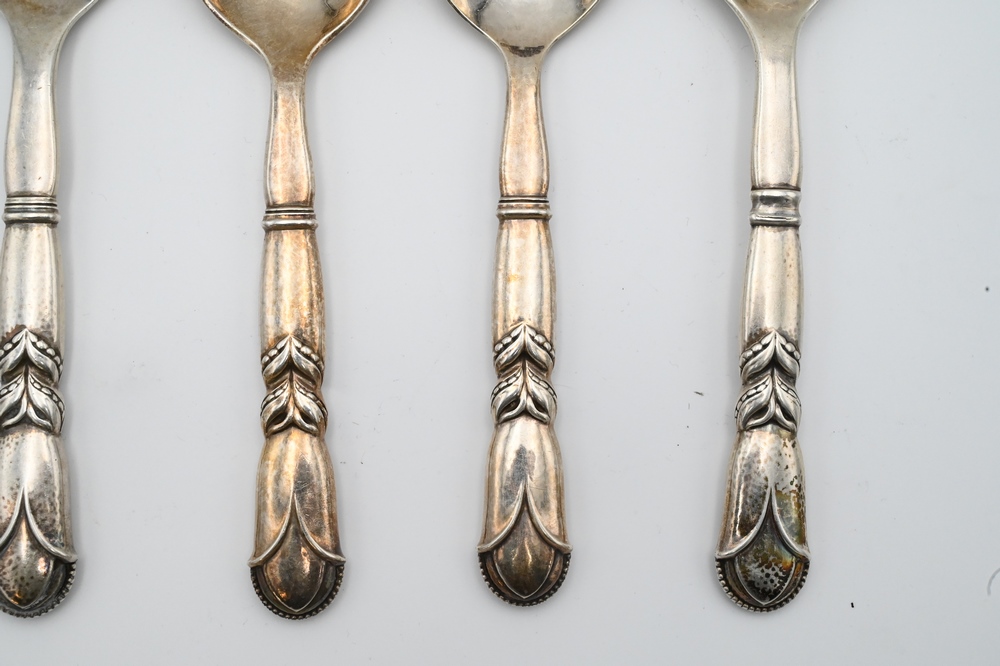 Lot 236: Georg Jensen Four Piece Sterling Silver Lot, to include two salad sets, marked Georg Jensen, Denmark, longest 9 3/4 inches, 13.1 t.oz.