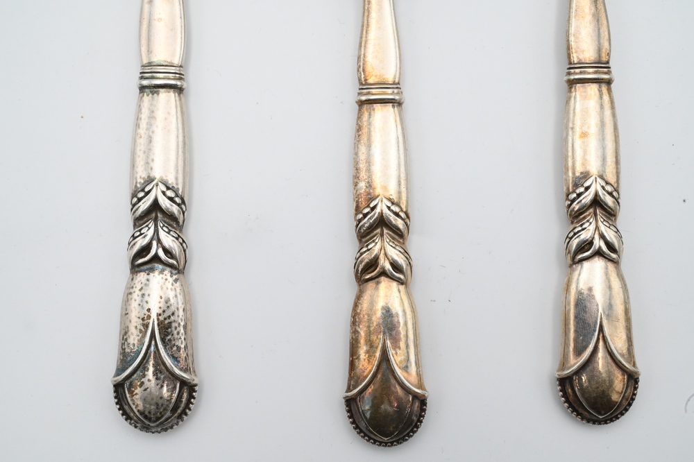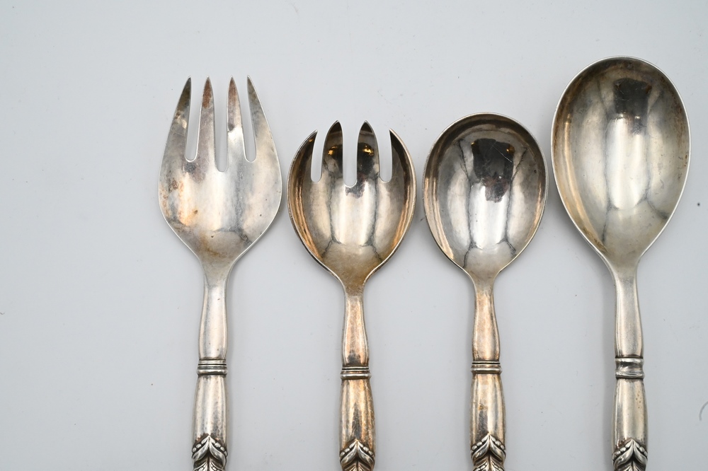 Georg Jensen Four Piece Sterling Silver Lot, to include two salad sets, marked Georg Jensen, Denmark, longest 9 3/4 inches, 13.1 t.oz.
